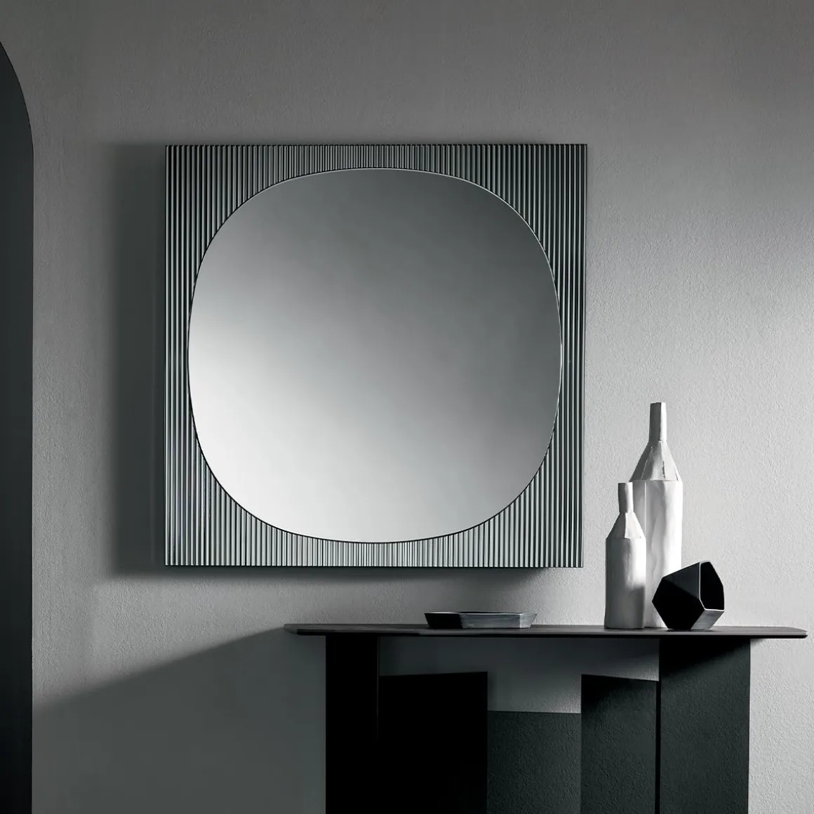 Miroir mural avec cadre réalisé en joignant un verre à effet de roseaux en relief et un miroir. Disponible en normal, or, bronze ou miroir fumé, n’hésitez pas à nous contacter pour plus d’information par mail à [email protected]