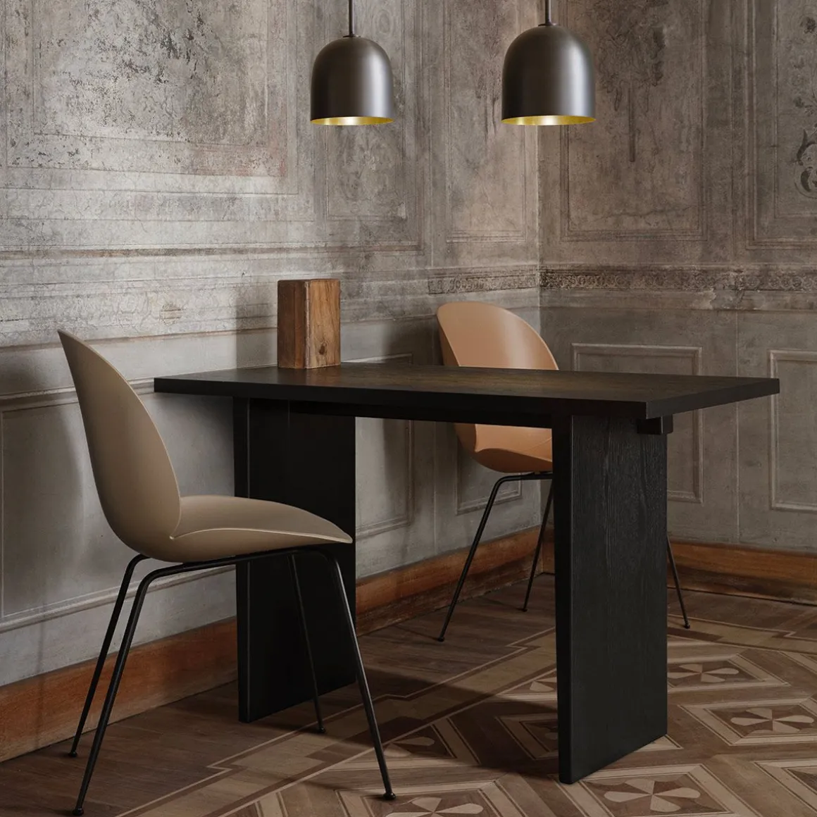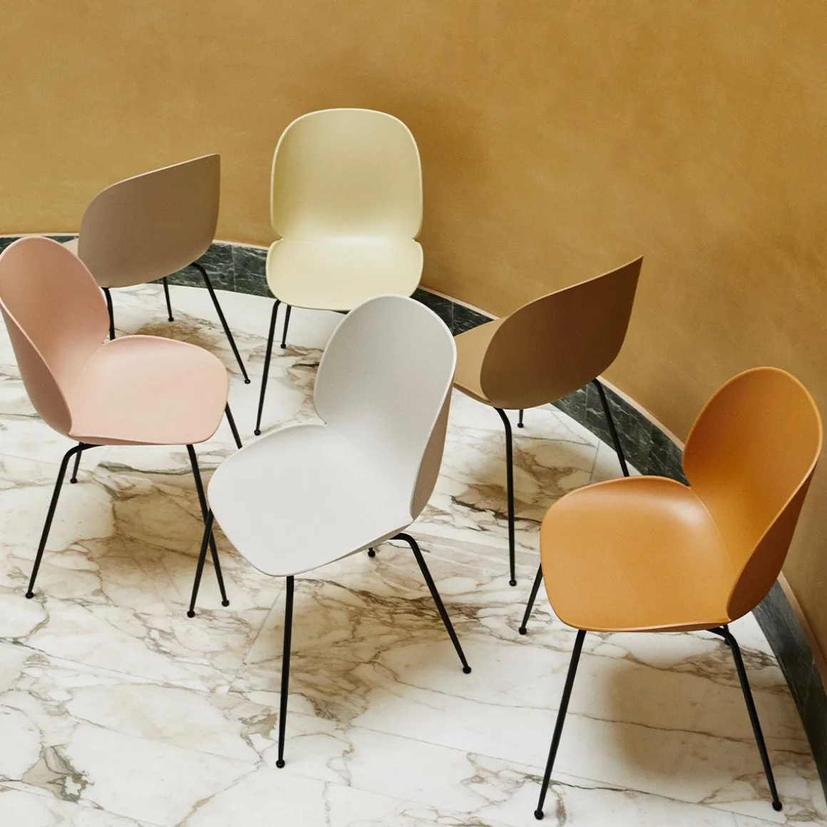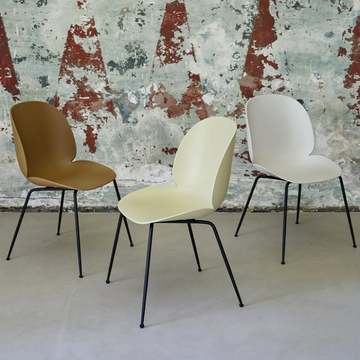 Beetle Dining Chair de Gubi par GamFratesi. La coque durable de la chaise Beetle est une forme continue et incurvée, rappelant les contours forts et gracieux de l’insecte qui l’a inspirée. La coque et les pieds protégés contre les UV signifient qu’elle peut être utilisée aussi bien à l’extérieur qu’à l’intérieur. Malgré sa robustesse, elle est conçue pour fléchir doucement, offrant un confort même après une position assise prolongée, tandis que sa légèreté la rend exceptionnellement portable. la chaise Beetle en plastique certifiée BIFMA pour l’extérieur est parfaite pour toutes les occasions, que ce soit à la maison, au travail ou dans les environnements d’accueil.Désormais disponible avec une coque et des pieds protégés contre les UV dans une finition texturée en satin.