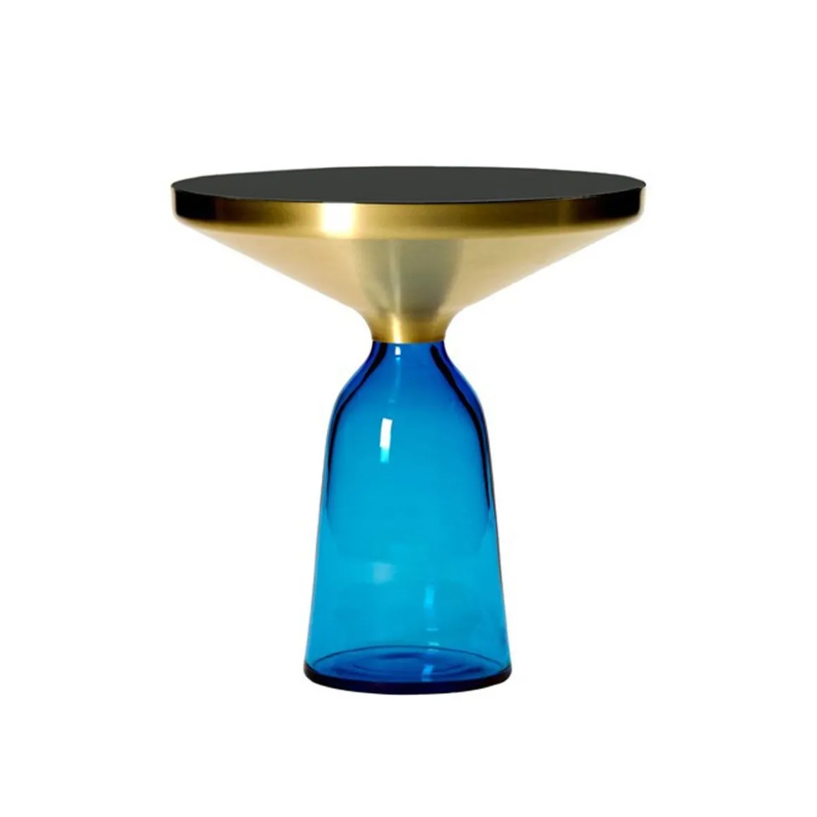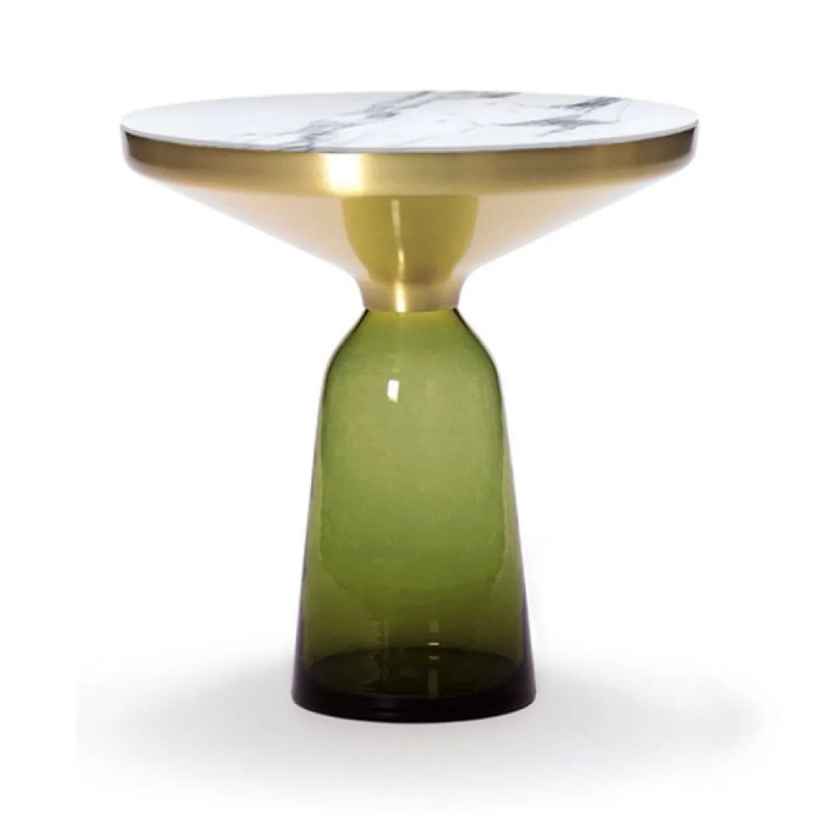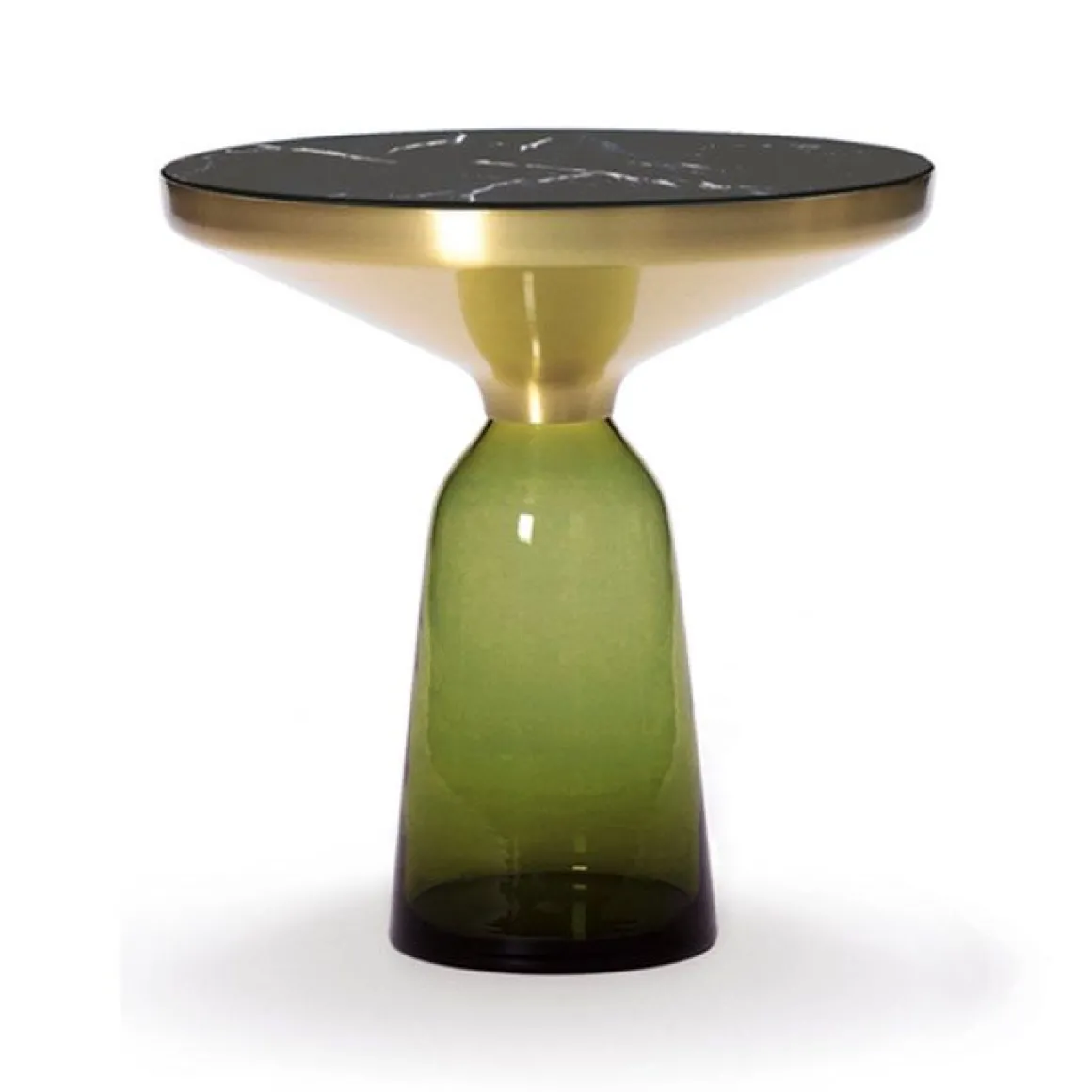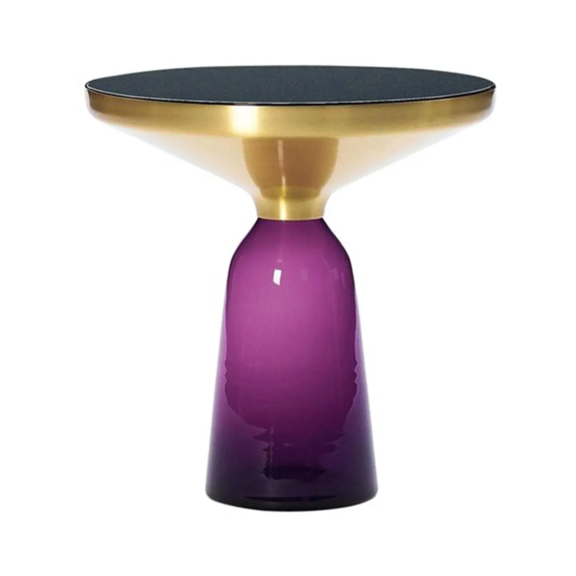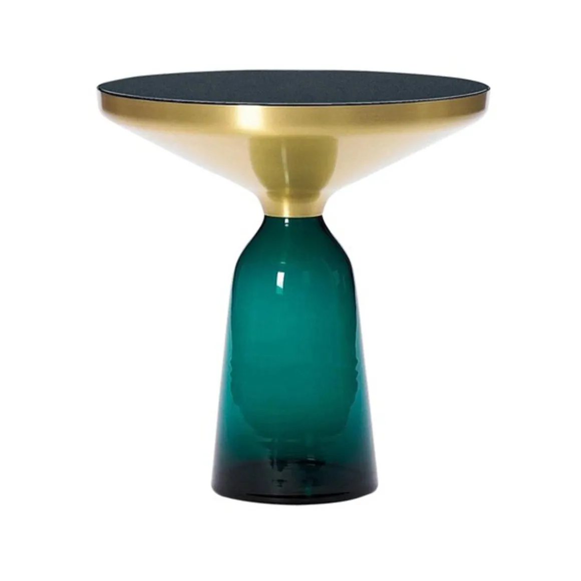 Le pied en verre traditionnellement soufflé dans un moule en bois et le corps métallique embouti créent un contraste fascinant tout en réalisant une union harmonieuse des formes qui rappelle l‘élégance d‘une cloche à la volée. Leurs réflexions attrayantes et le contraste de leurs matériaux font des Bell Table des éléments d‘intérieur au caractère affirmé.