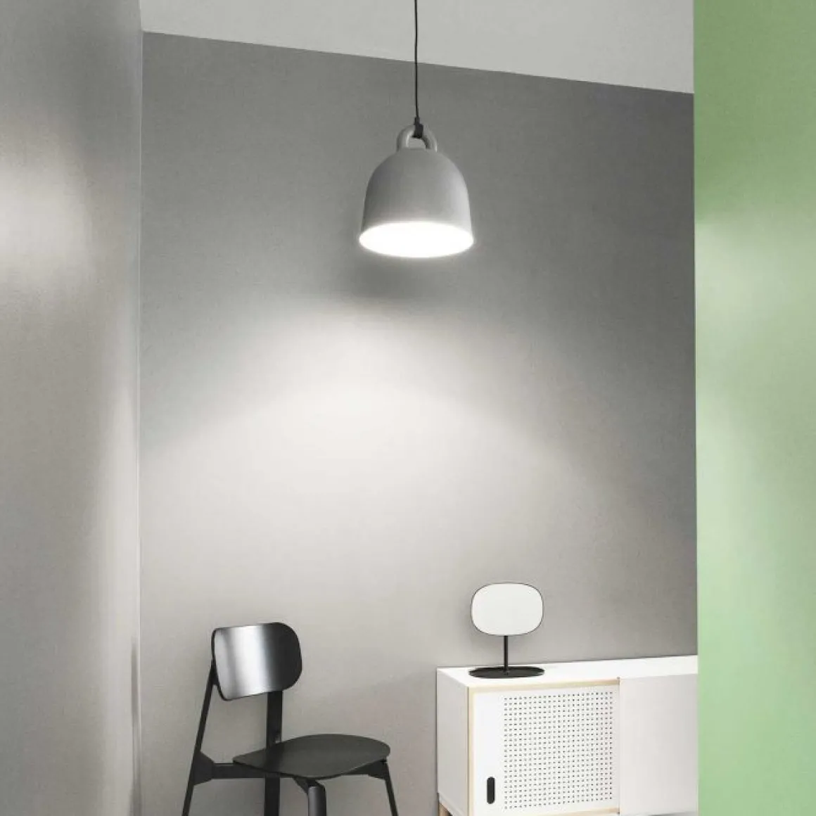 La suspension Bell est issue d’un travail sur la matière avec une force expressive. L’abat-jour en aluminium avec diffuseur en plexiglas se distingue par son aspect mat et son apparence irrégulière. La forme brute, les lignes massives sont renforcées par l’usage d’un matériau à caractère industriel. Avec son look en forme de cloche, cette suspension apporte un effet design et convivial à votre intérieur. Bell compose une superbe ambiance lumineuse tamisée. Cette suspension s’intègrera avec élégance dans les intérieurs contemporains ou plus classiques. Présentée en composition au-dessus d’une table, elle crée un superbe effet décoratif.