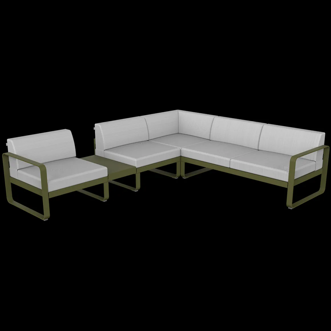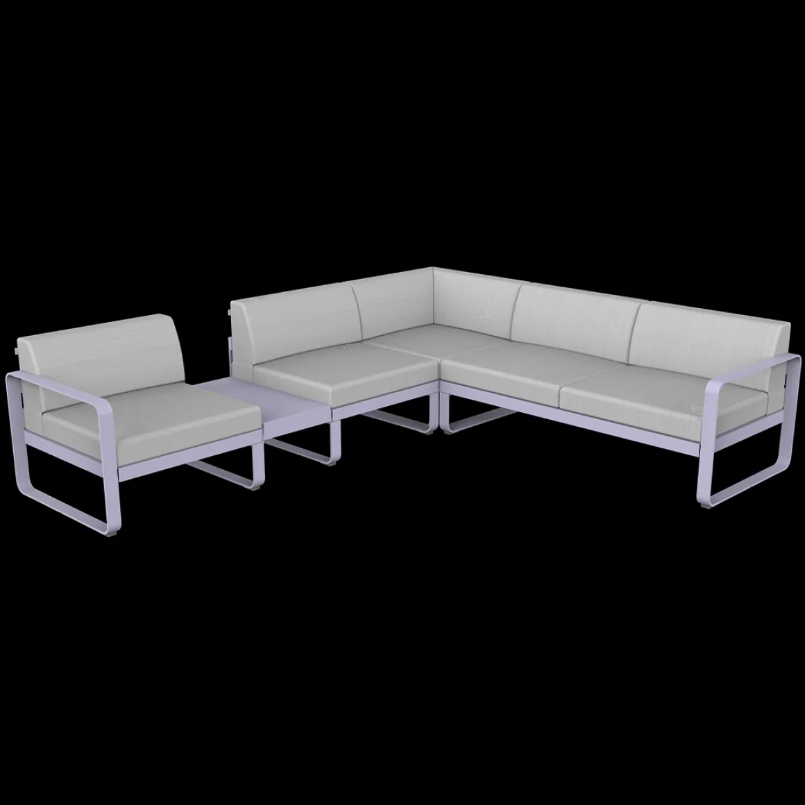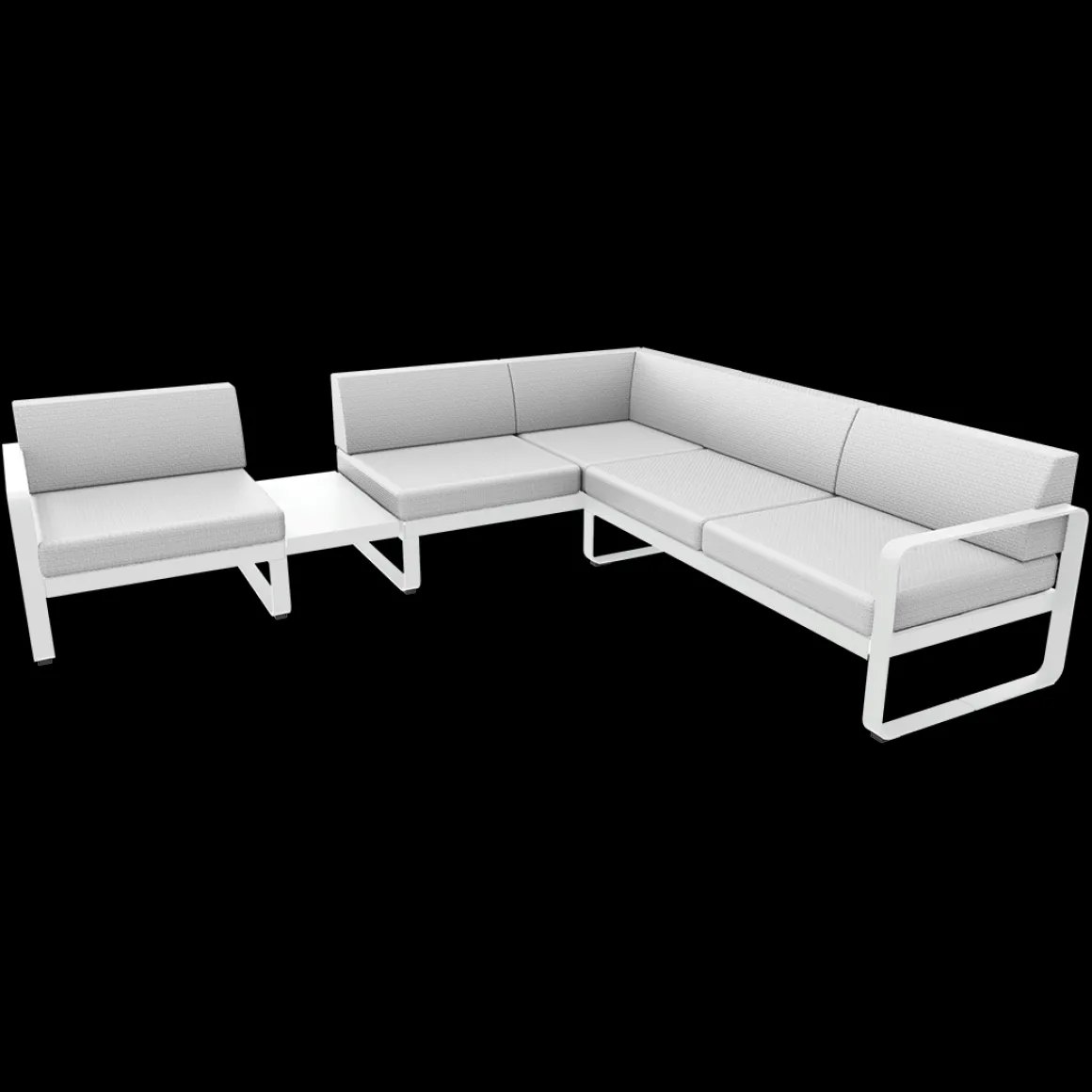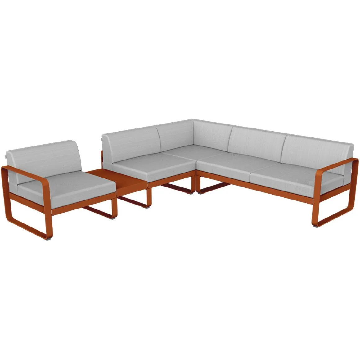Vous rêvez d’un spacieux canapé, afin d’accueillir de nombreux convives. Et, pour les épater, vous désirez un canapé design… Conçu par un duo connu dans cet univers – le studio Pagnon et Pelhaître -, le canapé Bellevie associe ces deux qualités ! Avec ses 5 généreuses places – voire plus, en se serrant un peu – et ses lignes douces, c’est LE canapé que vous cherchiez… Existe-t-il une configuration plus agréable, pour bien se voir et mener des discussions animées, qu’un canapé formant un angle ? Cet aménagement, testé et approuvé par Fermob, est celui qui vous est proposé dans la composition 3A, qui associe 1 module gauche 1 place, 1 module d’angle 2 places et 1 module droit 2 places. Sans oublier, une ingénieuse tablette de jonction faisant office de table d’appoint, qui permet de poser l’apéro entre les convives ; ou bien une lampe pour prolonger la soirée… Ce canapé avec zone de dépose est d’une solidité à toute épreuve : sa tablette en acier est vissée sur sa structure aluminium. Et toutes deux sont recouvertes de peinture polyester pour faire face aux UV comme aux intempéries. Eux aussi résistants aux UV et intempéries, les coussins de votre canapé Bellevie sont également traités anti-taches et anti-moisissures, et d’ailleurs déhoussables, au cas où ?… Ils sont aussi très doux au toucher, grâce à leur tissu Sunbrella®. Doux ET costauds : l’abrasion et les déchirures ne les guettent pas ! Et enfin, moelleux et fermes tout à la fois ! Le canapé Bellevie offre ainsi un exceptionnel confort d’assise grâce à l’assemblage de mousses haute résilience – mousses à base de polyuréthane choisies par Fermob pour leur capacité à reprendre leur forme initiale après déformation, et cela même après une grande durée d’utilisation ! Faites-vous plaisir avec ce grand canapé d’angle pour un superbe salon d’extérieur, convivial et accueillant. Selon comment est disposée votre terrasse, peut-être est-ce la composition 3B, version inversée de la 3A, qui serait plus adaptée ? A vous de voir !
