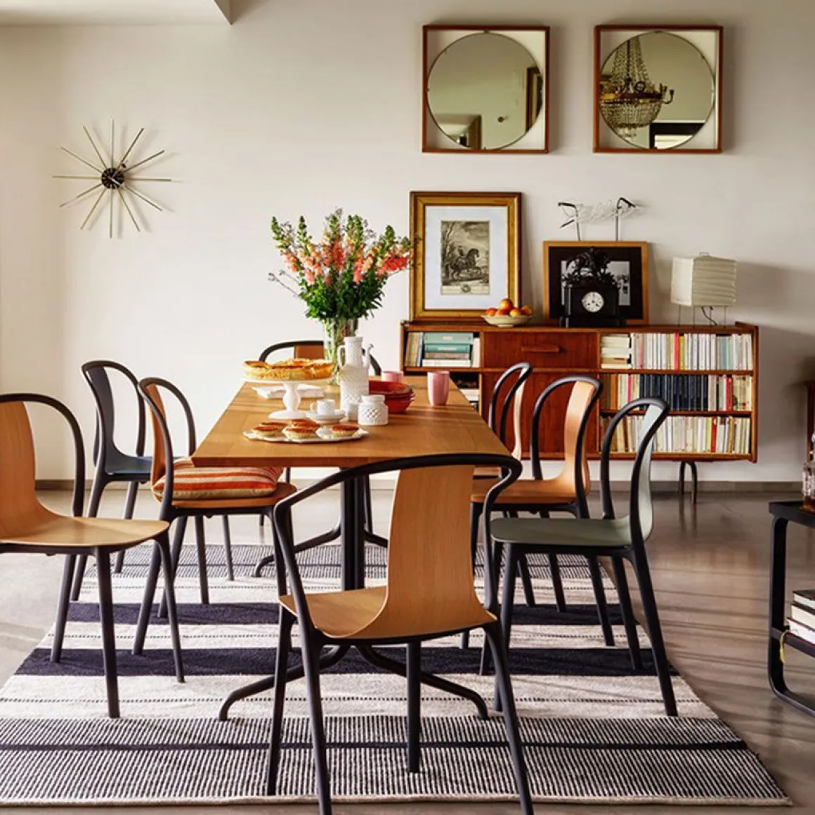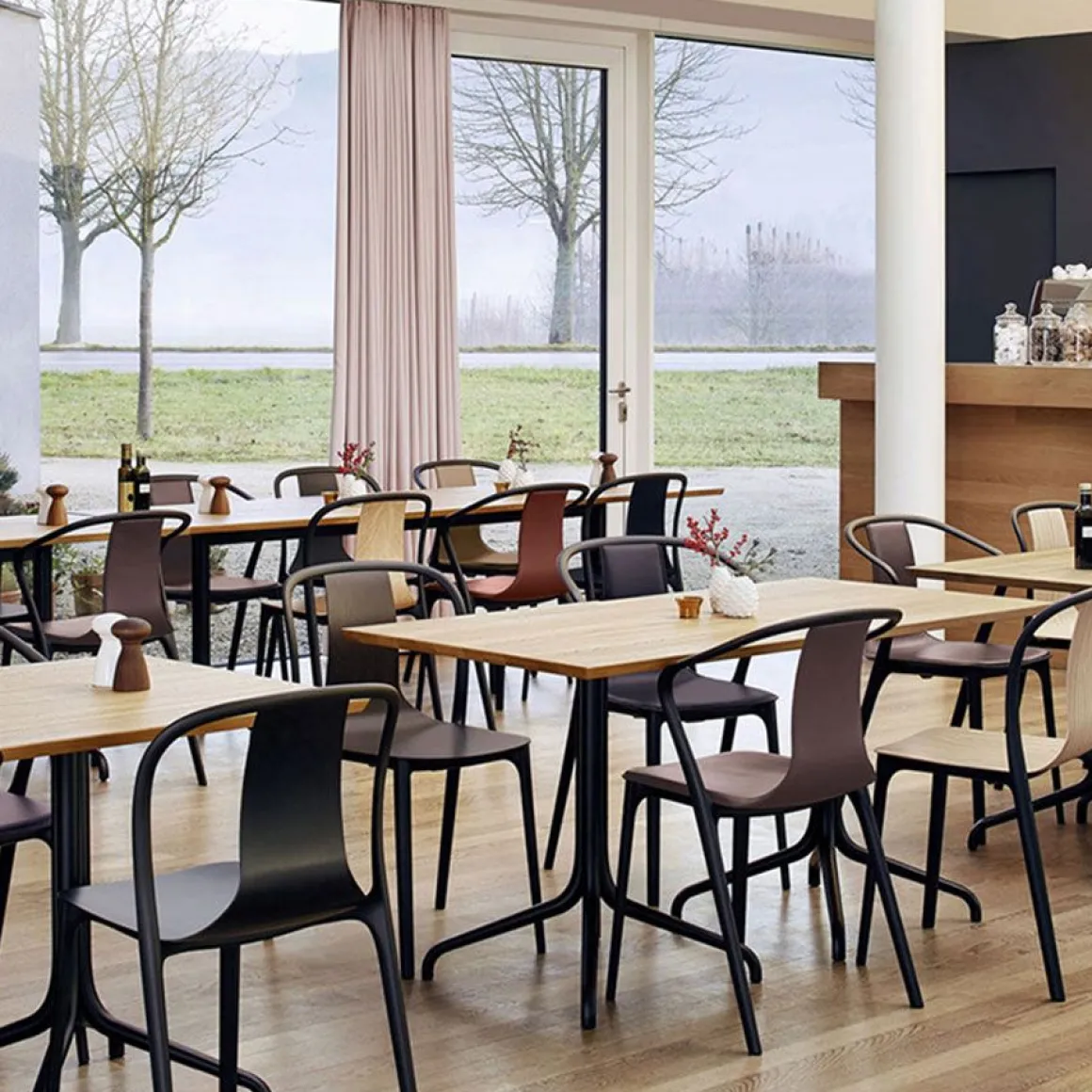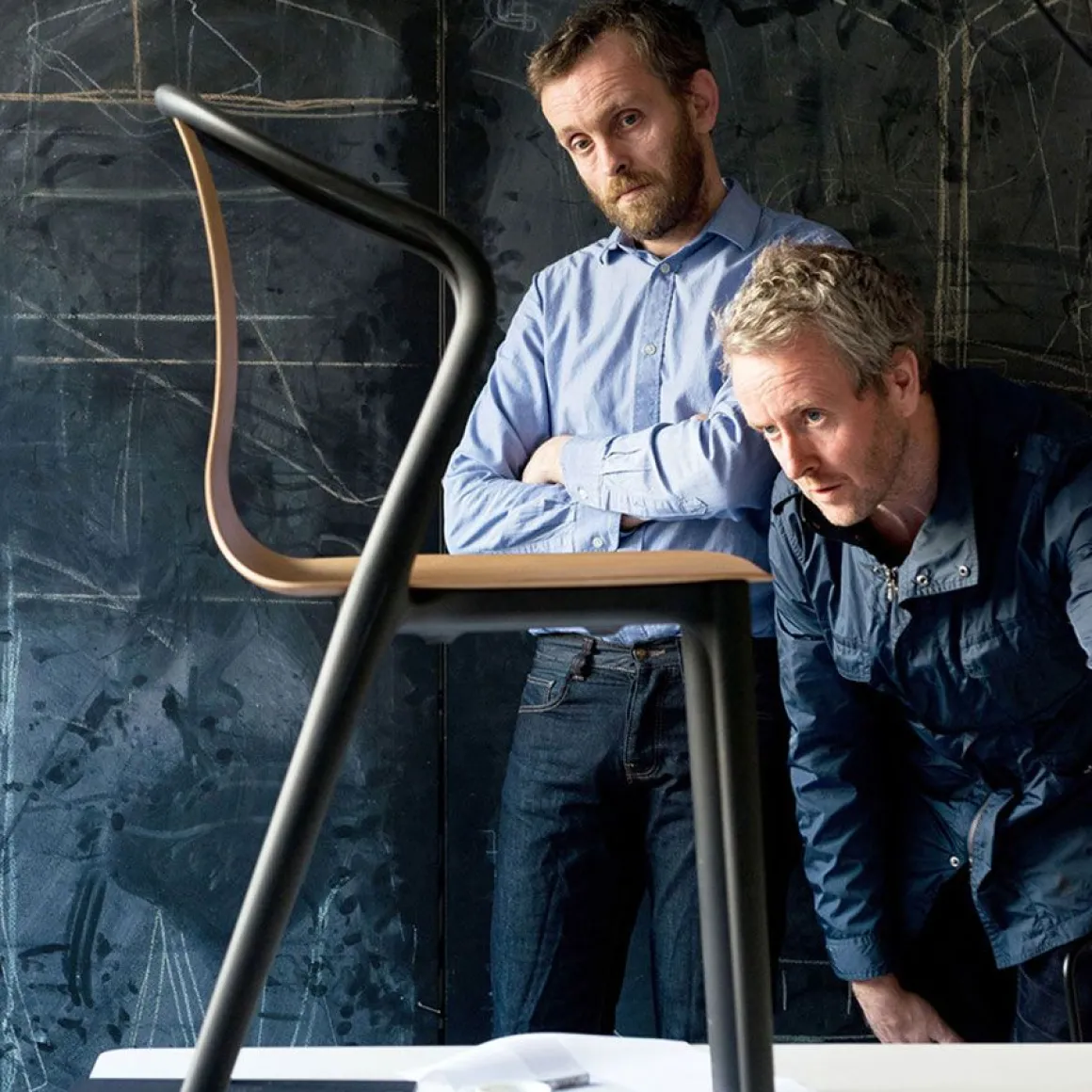 Belleville est le quartier parisien dynamique où se trouve le studio des designers Ronan et Erwan Bouroullec. Le mobilier de bistrot français classique et l’ambiance vivante de leur quartier ont été la source d‘inspiration pour la Belleville Chair. Avec sa forme familière, le siège présente d‘emblée une certaine évidence, même dans un contexte contemporain, tout en étant habitée par un côté mystérieux, un aspect quelque peu déroutant. En effet, elle ne laisse apercevoir ses matériaux, sa construction et son procédé de fabrication qu’au second regard. Telle une calligraphie, un cadre noir élancé dessine les pieds et le dossier du siège et accueille une coque fine qui va en s’effilant de l‘assise large vers le dossier étroit. Les fauteuils Belleville forment avec les Belleville Tables un ensemble homogène et pourtant varié, une famille hybride dont le langage formel et les matériaux sont harmonieusement coordonnés. Les sièges et les tables peuvent ainsi être parfaitement associés, en petit ou en grand nombre, pour aménager des bistrots animés, des galeries à la décoration plus sévère ou des appartements aux styles les plus divers.