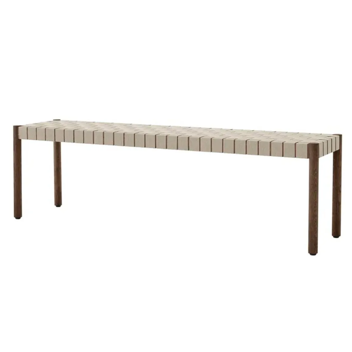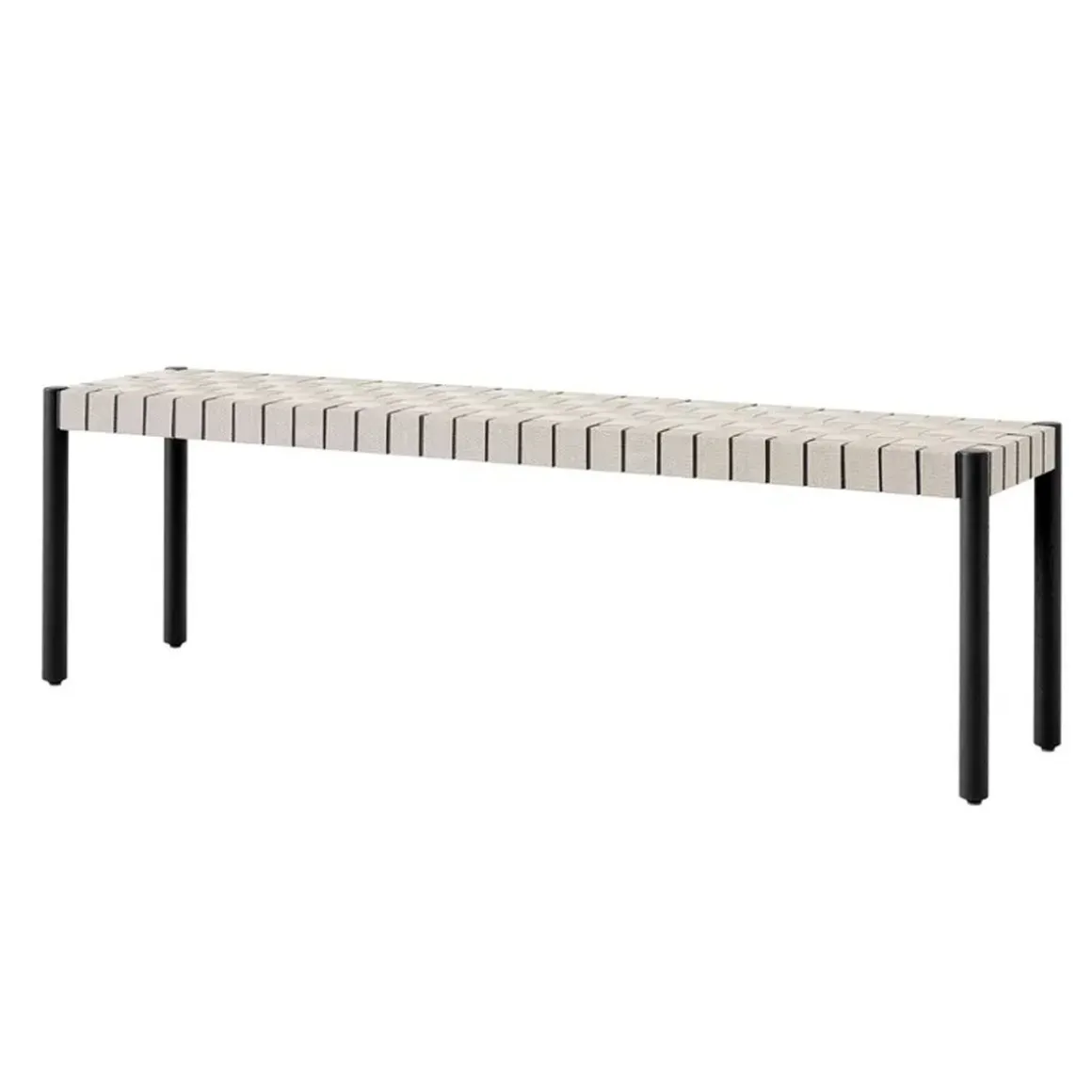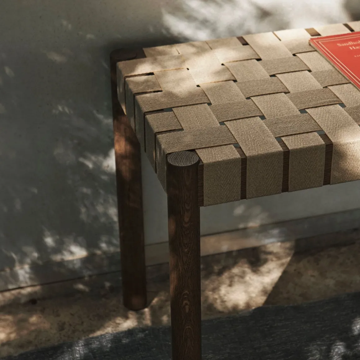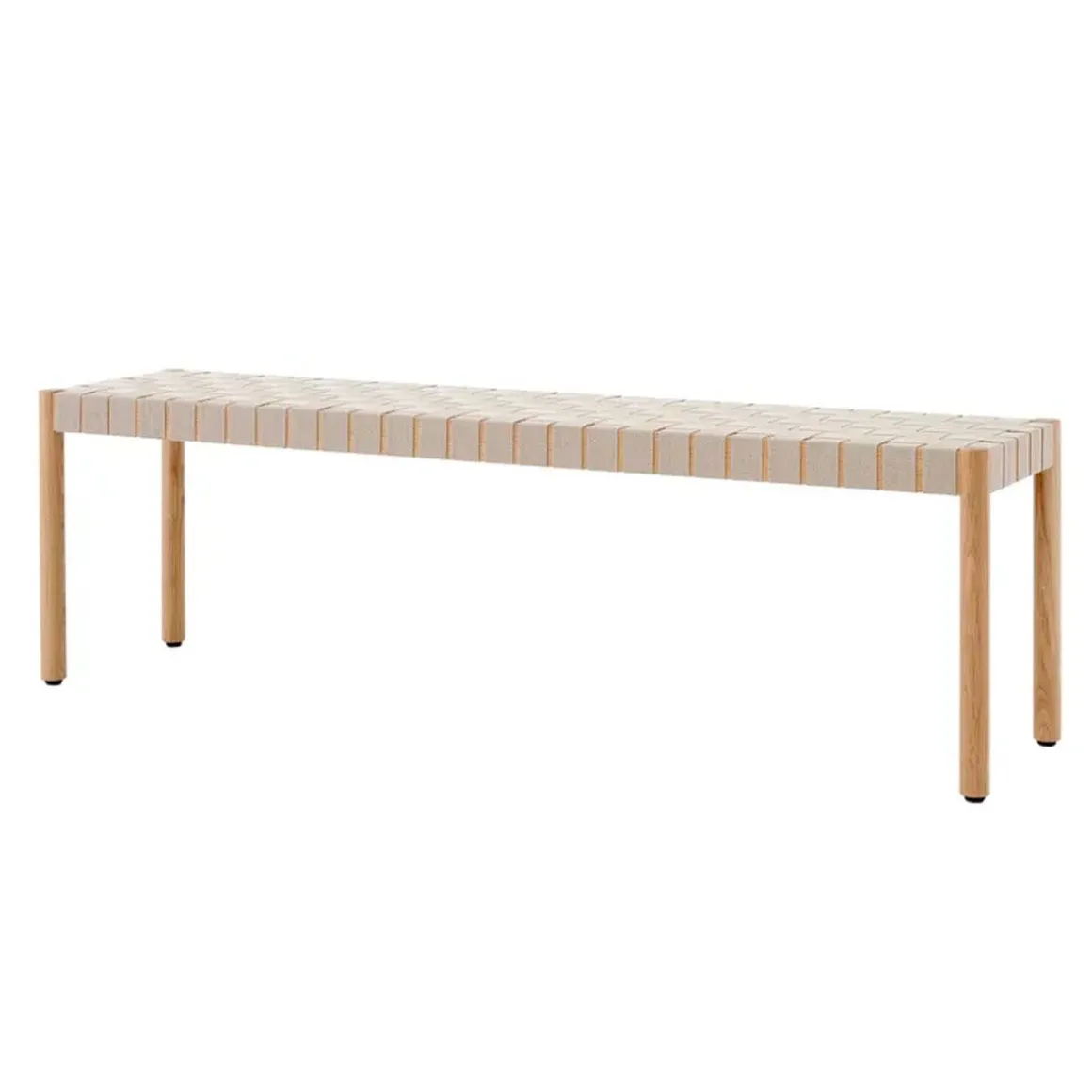 Betty Tk5 de &Tradition par Thau & Kallio. Nommé d’après le théâtre Betty Nansen de Copenhague, ce banc est fabriqué à partir de sangles apparentes fabriquées à la main à partir de fibres de lin naturelles.