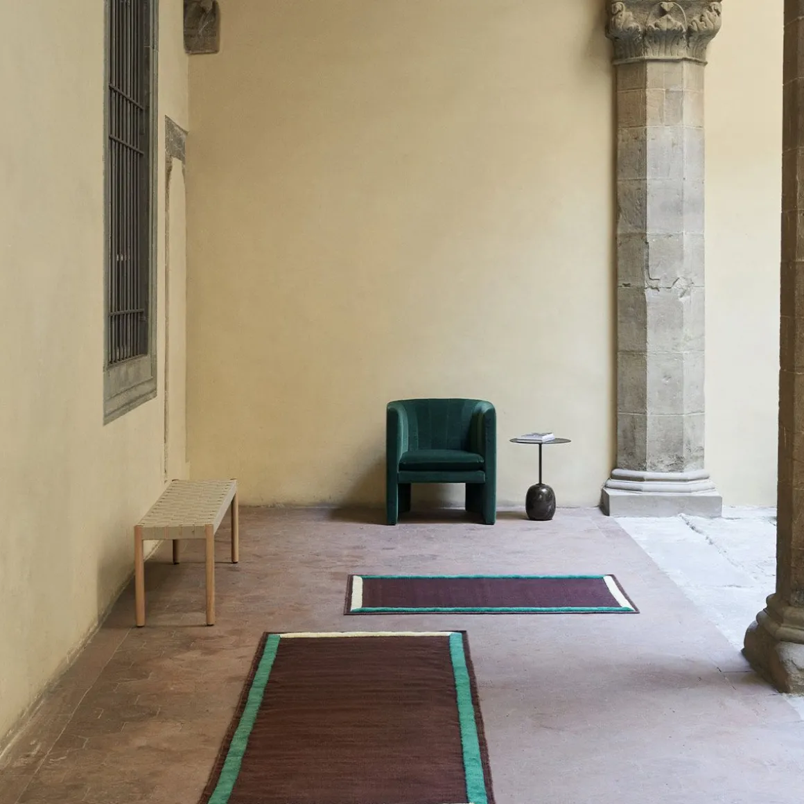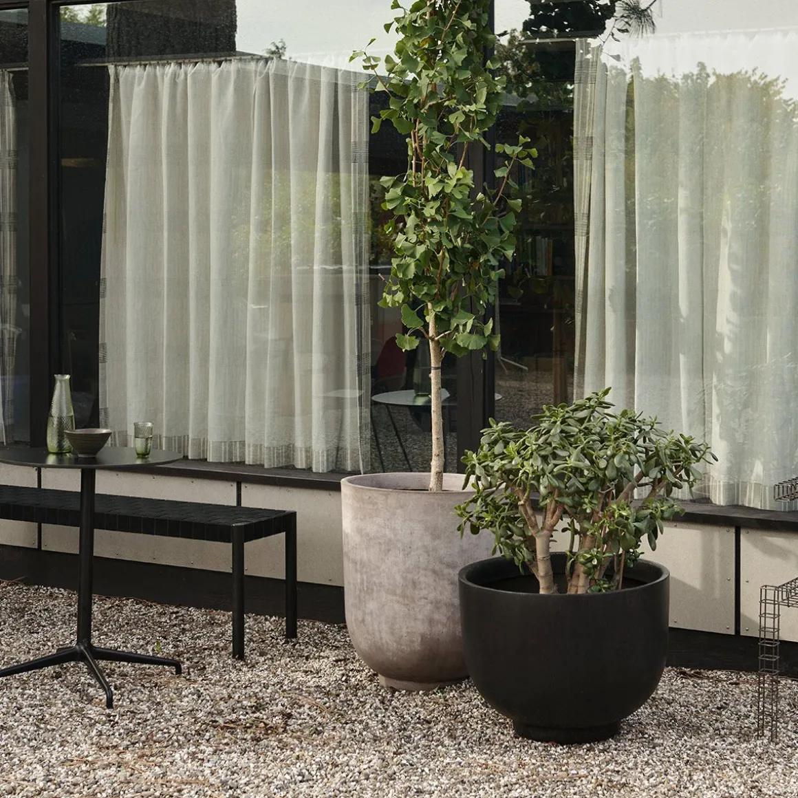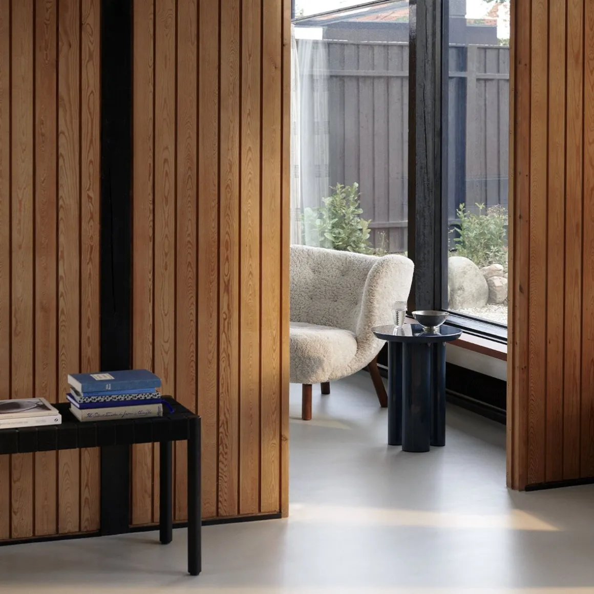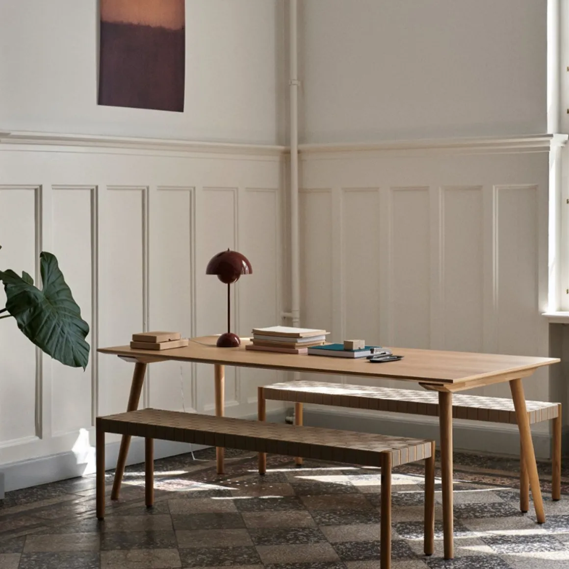 Betty Tk5 de &Tradition par Thau & Kallio. Nommé d’après le théâtre Betty Nansen de Copenhague, ce banc est fabriqué à partir de sangles apparentes fabriquées à la main à partir de fibres de lin naturelles.