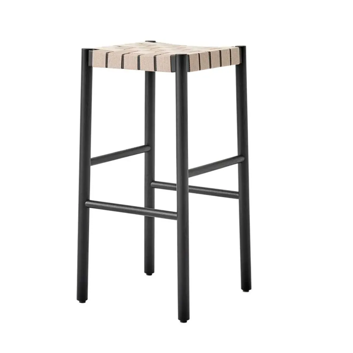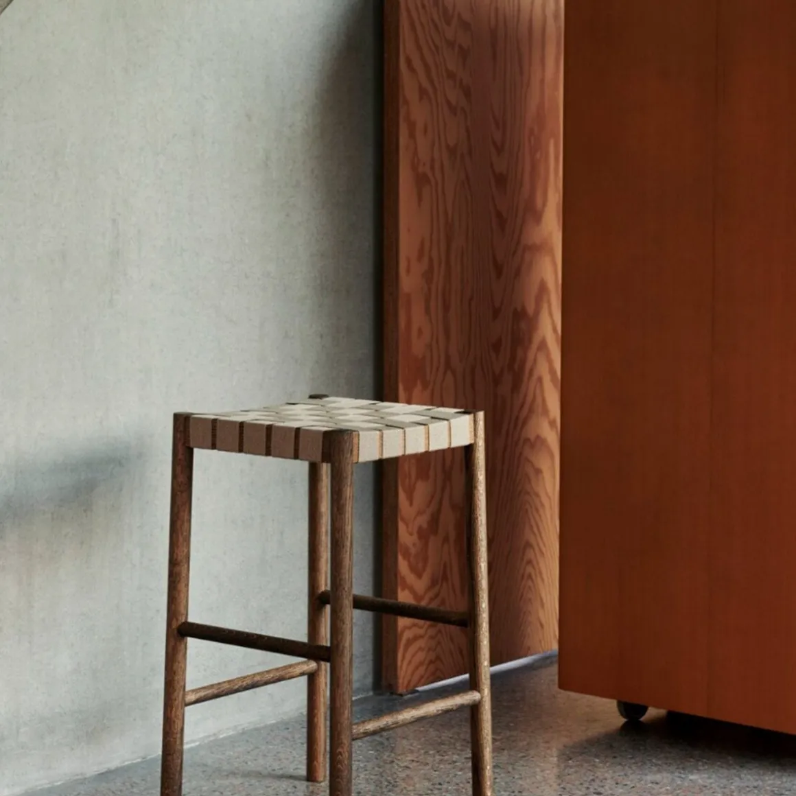 Betty Tk8 de &Tradition par Thau & Kallio. Nommé d’après le théâtre Betty Nansen de Copenhague, la structure robuste de ce tabouret est fabriquée en chêne ou en frêne laqué. Le siège palmé – dont les sangles sont fabriquées à partir de fibres de lin naturelles et tissées à la main – offre une base douce et rembourrée.