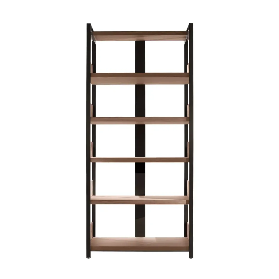 Eracle conçue par Antonio Citterio pour Maxalto est une bibliothèque avec structure et étagères en bois massif. Base et plateau supérieur en profils d’acier peints en nickel bronzé.