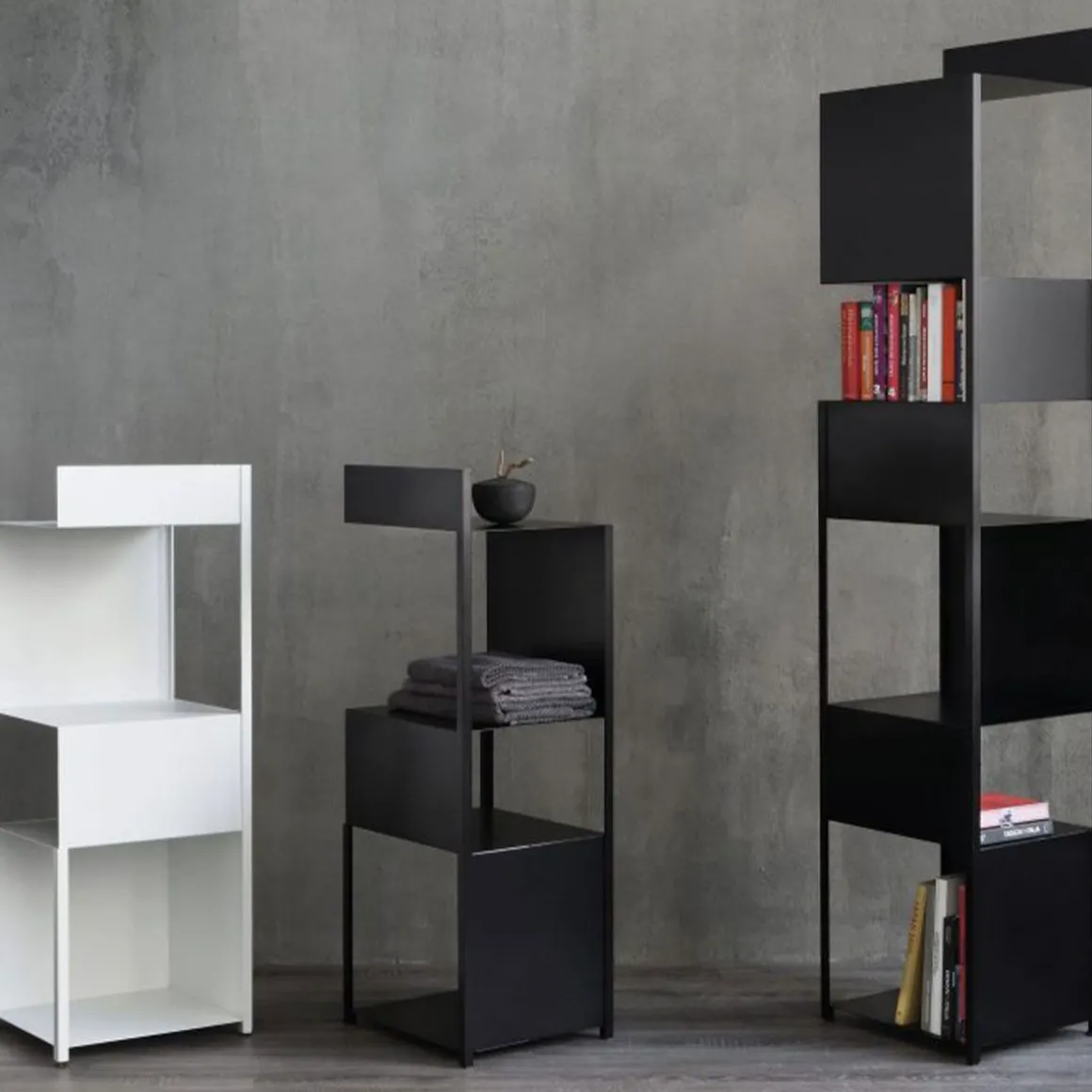 Très graphique, l’étagère en métal Tito se compose de plusieurs cases superposées de dimensions variées. Un superbe assemblage asymétrique, une succession d’espaces étroits et rythmés… L’étagère Tito présentera vos livres, CD et objets préférés de façon très graphique. Compacte, cette colonne de rangement est idéale dans les espaces réduits : salle de bains, entrée, cuisine… Ce meuble correspond complètement à la philosophie de la marque ZEUS : créer des choses empreintes de simplicité et d’authenticité, à la fois fonctionnelles et économiques. Une quête de l’essentiel obtenue par une grande maîtrise des matériaux et un savoir-faire incomparable dans le travail du métal.