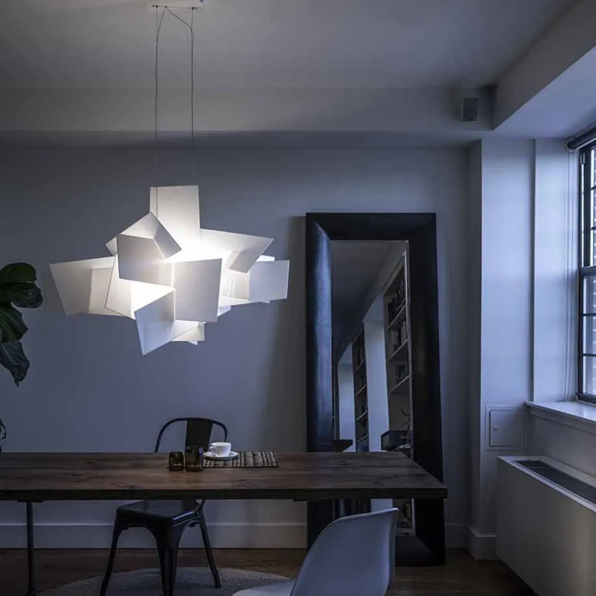 Big Bang LED est une suspension créée par Enrico Franzolini pour Foscarini. Cette suspension prend la forme d’une rosace. Les jeux de lumière apporteront une touche design et tendance à votre intérieur. Les panneaux sont imbriqués les uns dans les autres avec un soucis du détail. Équipée de la technologie LED, cette suspension design vous assure un éclairage d’une qualité irréprochable qui vous garantit la même intensité, la même diffusion et la même température que la lumière de la version traditionnelle. Cet aspect déstructuré fait de Big Bang une suspension très contemporaine et design.