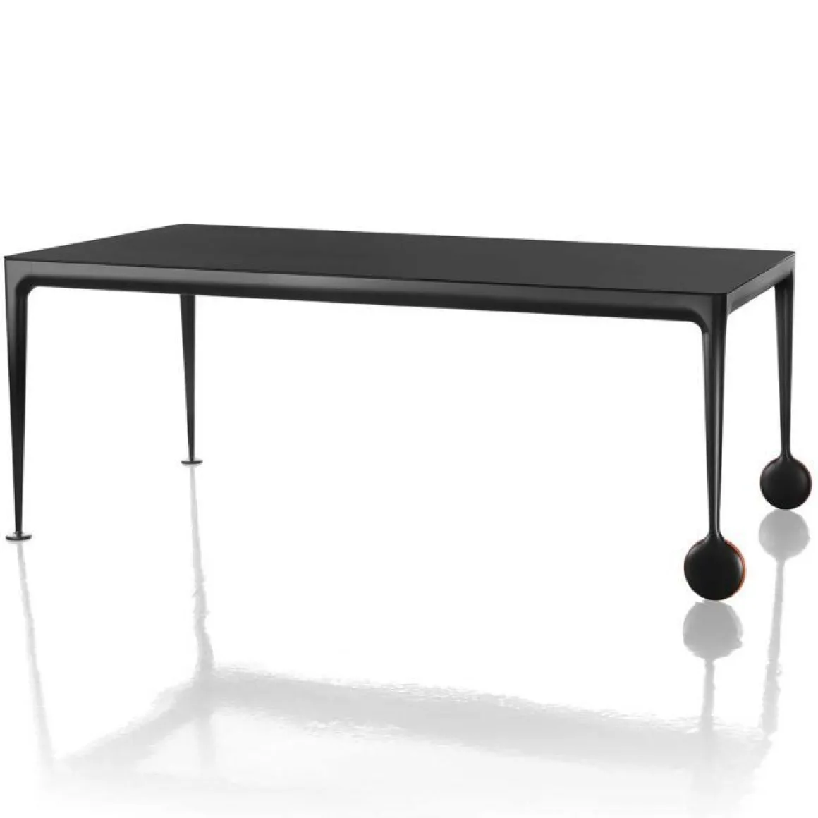 La table extensible Big Will est le nouveau chapitre d’une histoire passionnante: la rencontre entre la philosophie et la technologie Magis, avec ses formes sympathiques et ses réalisations rigoureuses, et l’esprit créatif de Philippe Starck, « star du design » au renom indiscutable. Caractérisée par la forte personnalité des roulettes – situées sur la partie extensible de la table, – et par la structure en fonte d’aluminium, poli ou verni blanc ou noir, Big Will est proposée avec plateau en verre trempé brillant ou dépoli et rallonge en MDF verni brillant ou opaque. Fermée, elle mesure 200 x 100 cm et, et grâce à deux rallonges de 50 cm chacune, elle peut atteindre la longueur totale de 3 mètres : tout cela avec un effort minime et sans devoir soulever la table du côté extensible, mais simplement en la faisant coulisser sur le sol grâce aux deux roulettes et à un mécanisme pour le coulissement et le blocage de la table développé tout spécialement et breveté. Une table importante et élégante, fruit de plusieurs années d’études et de recherches pour atteindre ce « quelque chose en plus » auquel Magis aspire depuis toujours, comme le nom même du produit le révèle.