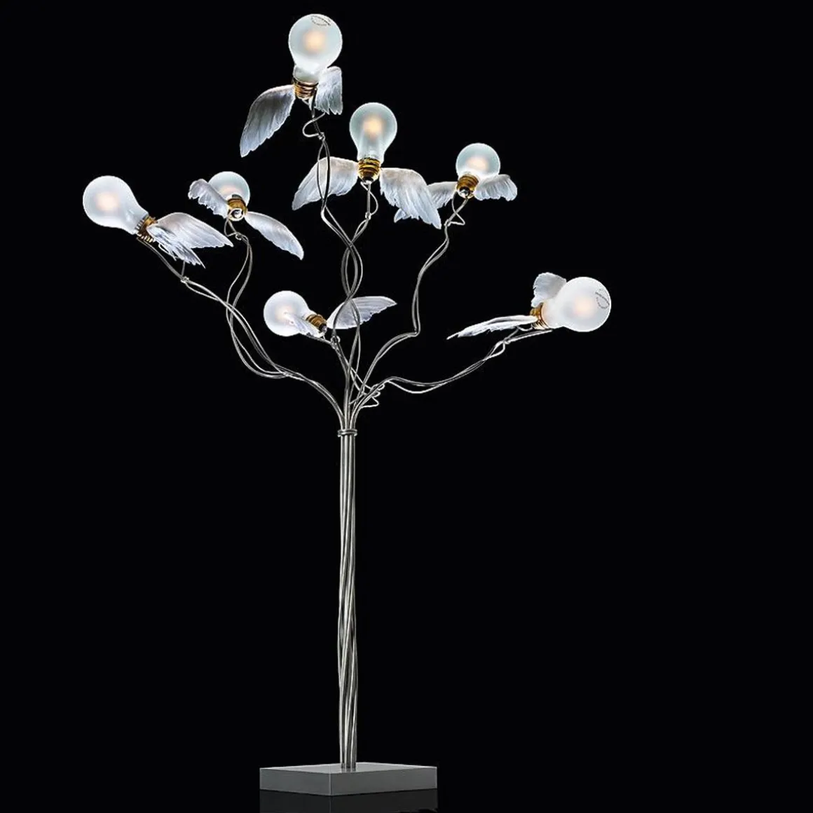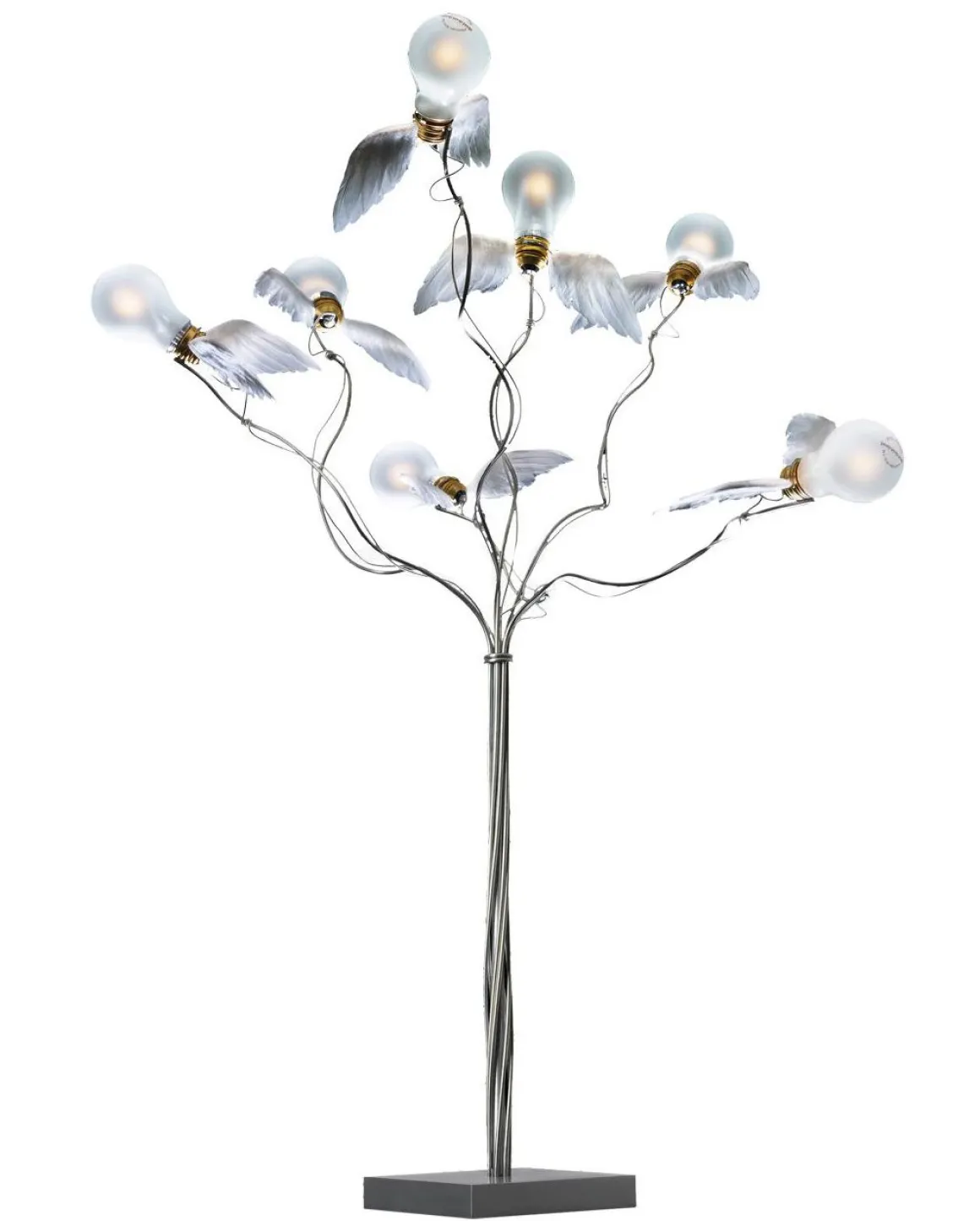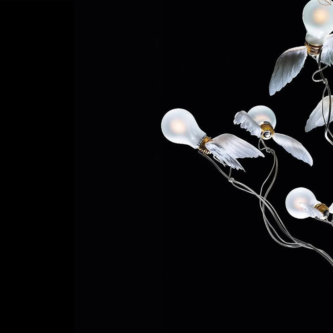 Birdie’s busch de Ingo Maurer. Birdie’s Busch est une magnifique lampe de table au design superbement poétique. Ces petits oiseaux de lumières sont tout simplement magiques grâce à ces véritables plumes d’oie et l’éclat de ces ampoules. Le corps élégant et torsadé de Birdie’s Busch rappelle une branche d’un arbre où ces oiseaux de lumières pourraient voltiger et se poser. Pleine de grâce et de poésie, la lampe Birdie’s Busch ne pourra vous laisser indifférent.