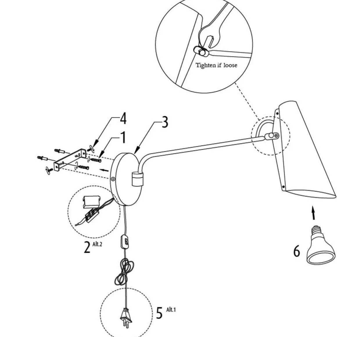 Deux possibilités de fixation : L’applique est livrée avec un cable vous permettant de brancher cette lampe sur une prise classique si vous n’avez pas de sortie electrique murale.
