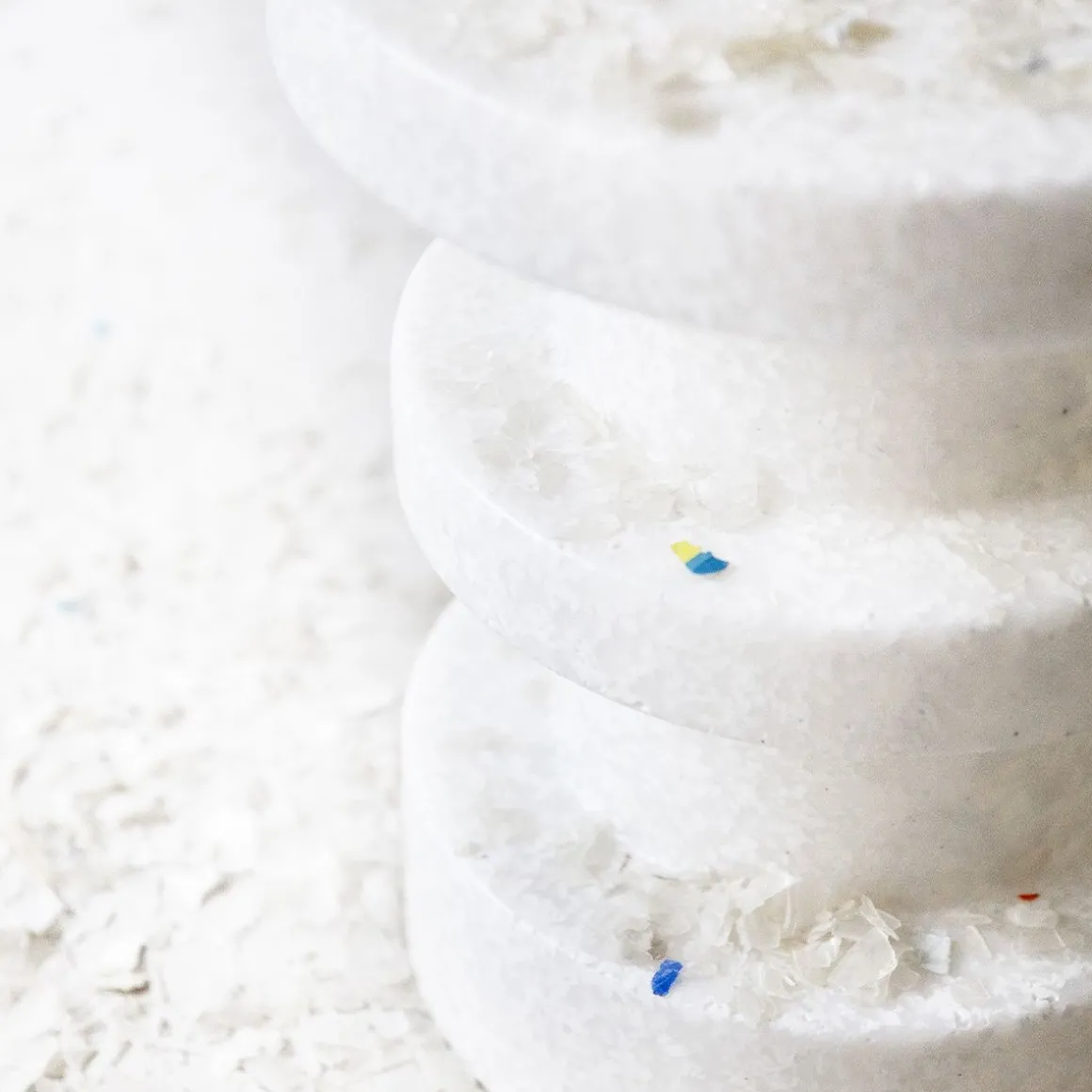Matériaux : (LDPE) 95 % de déchets industriels en polyéthylène basse densité (selon la couleur du Bit Tabouret, ce nombre varie entre 85 et 95 %), PE vierge 5 %.