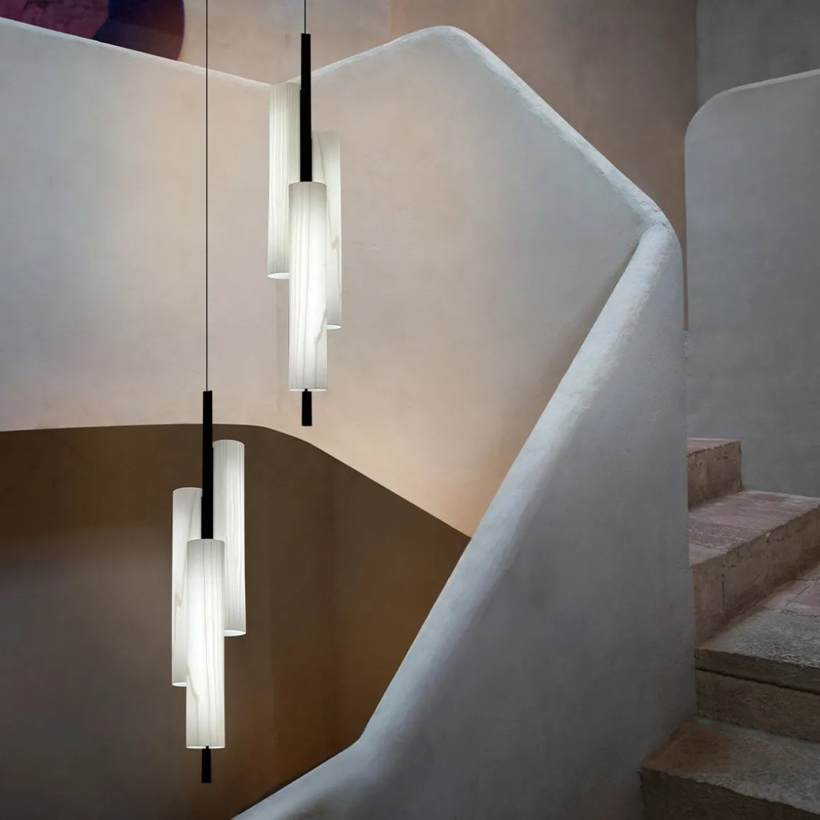 Black Note Triplet LED, la lumière rythmique. Conçue par Ramón Esteve, Black Note est une lampe aux nuances perpendiculaires qui montent et descendent en harmonie. Son arrangement rythmique est inspiré par les touches noires d’un piano, dont les notes aiguës et plates ajoutent émotion et passion à une mélodie. Le cadre métallique de Black Note, fini dans des tons noirs et anthracites, fonctionne harmonieusement avec ses teintes de placage de bois lumineuses et chaudes. Ramón Esteve a créé trois compositions Black Note: Black Note Keys (horizontal), Black Note Triplets (suspension et plancher) et Duplets Black Note (mur). Ces compositions différentes, avec leurs formes rythmiques, offrent une symphonie de lumière, de texture et de motif.