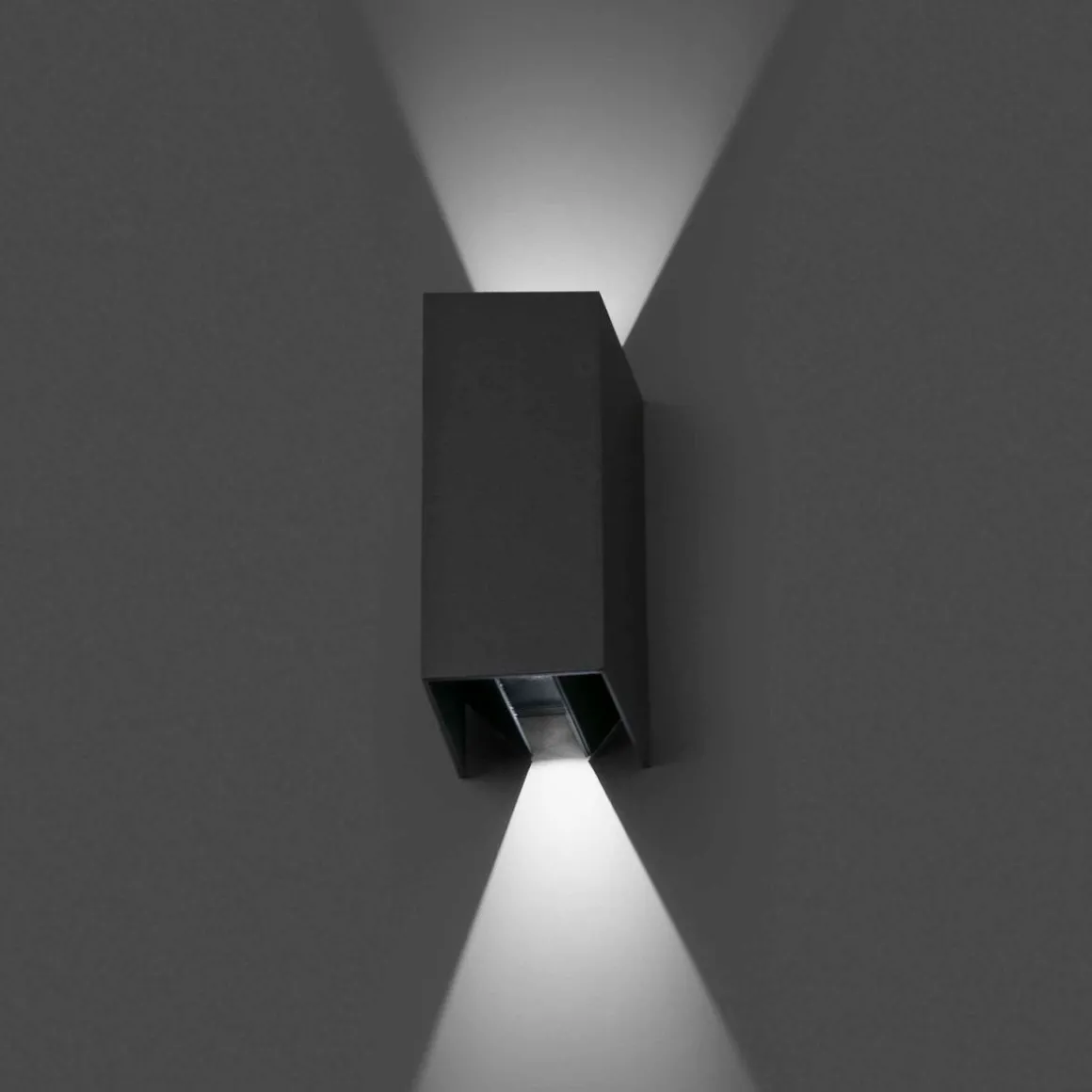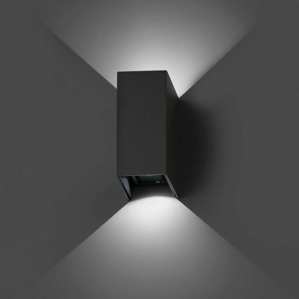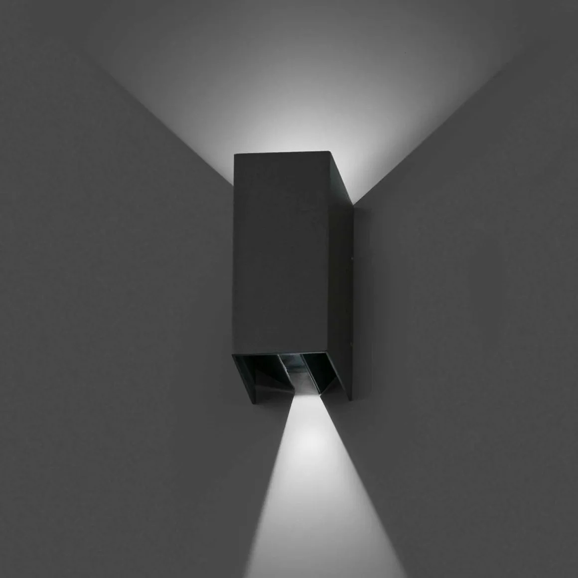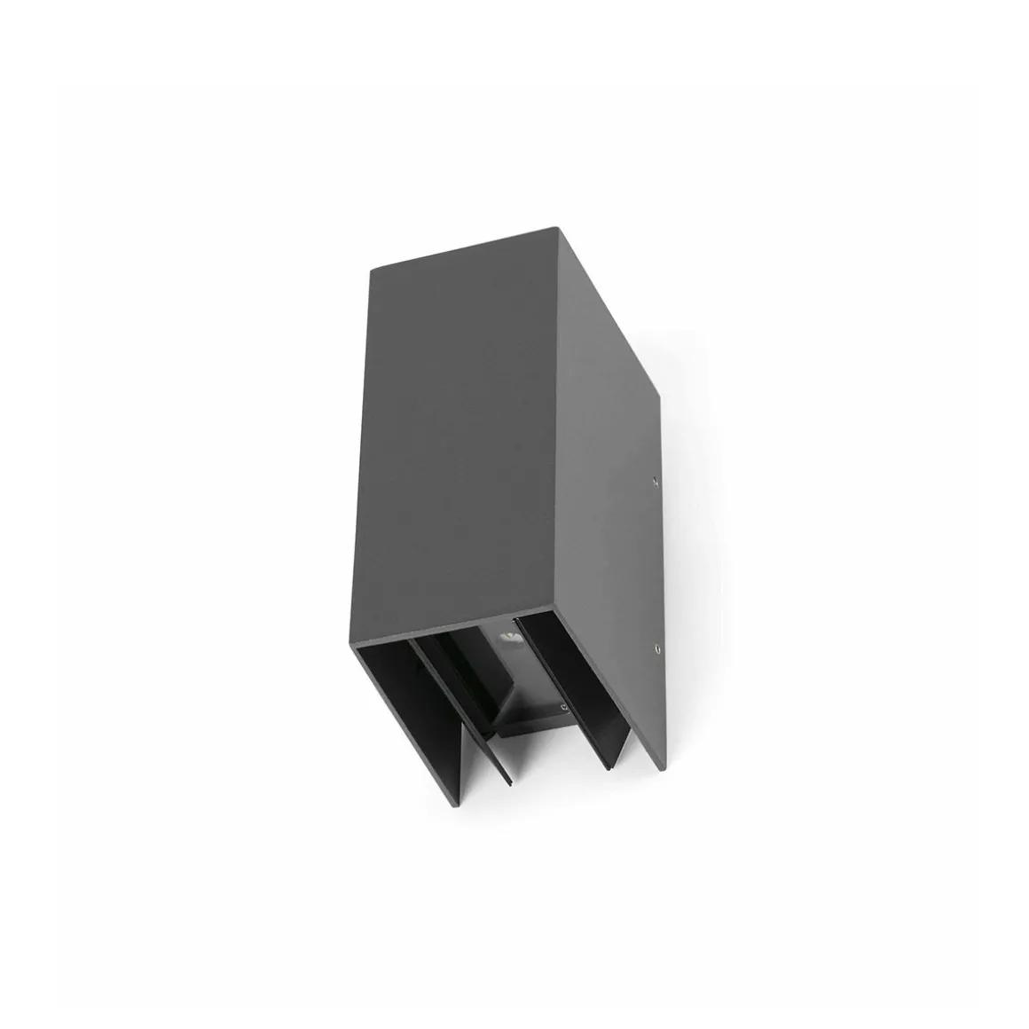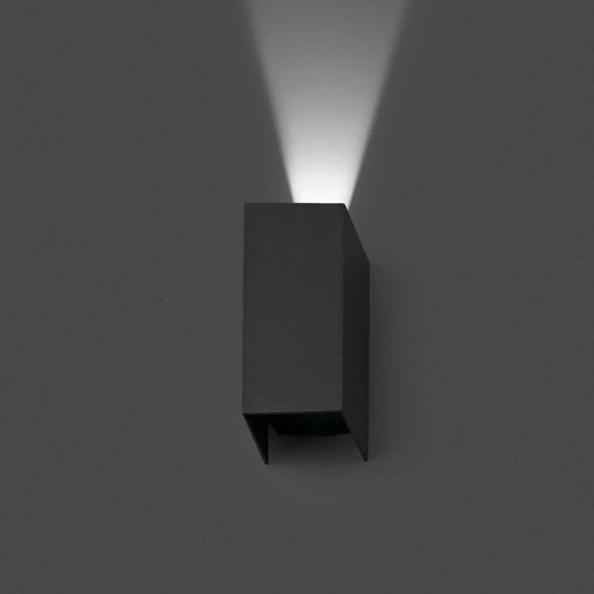 Applique pour éclairage extérieur en aluminium injecté et en verre transparent. Cette applique LED possède des ailettes directionnelles qui permettent de contrôler le faisceau de lumière pour obtenir un éclairage fonctionnel et également décoratif.