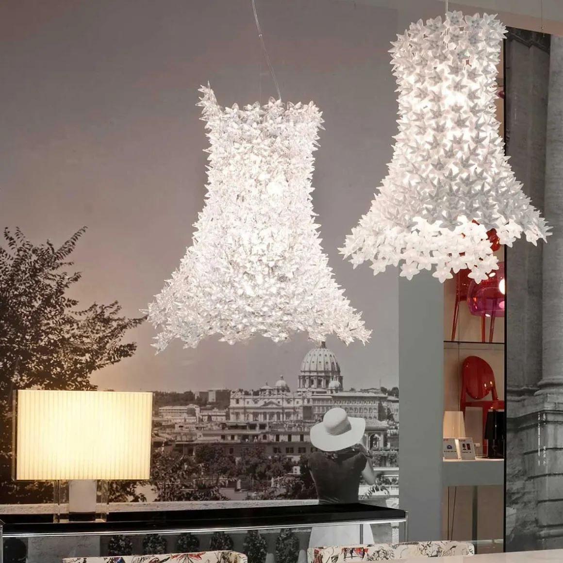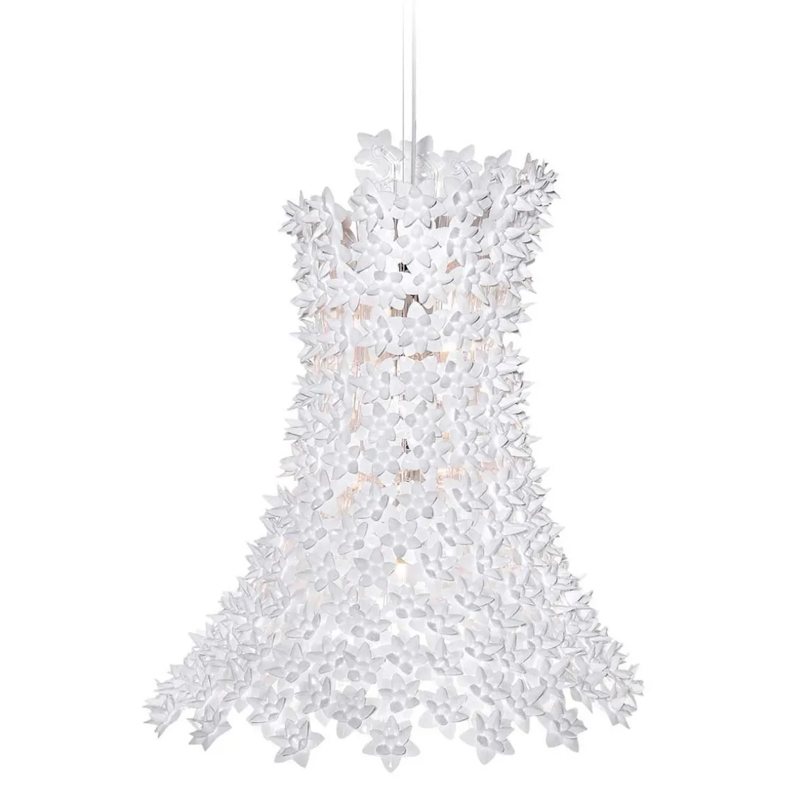 Une lampe précieuse comme un verre de Murano, effrontée comme un opéra rock : Bloom éclot en vue scintillante et somptueuse cascade de fleurs à effet cristal. Bloom de Kartell est formée d’un squelette tubulaire en polycarbonate entièrement recouvert d’une structure composée de petites fleurs à double corolle en polycarbonate transparent. Le résultat est une lampe produite industriellement mais avec les formes et la complexité stylistique d’une pièce unique, artisanale. Une série d’ampoules positionnées sur la structure interne diffusent, à travers ds pétales, le faisceau lumineux qui se réfléchit sur les surfaces miroitantes de ces derniers en libérant mille reflets. Disponible dans les raffinés tons du cristal, du blanc mat, et dans un provocant mélange rose et noir, Bloom, dans son originale forme « bambou », représente un nouveau mode de concevoir le lampadaire traditionnel, avec l’ajout d’une touche spéciale. Une oeuvre d’art qui, à elle seule, suffit à meubler et à remplir une salle en créant une athmosphère « rayonnante et resplendissante ».