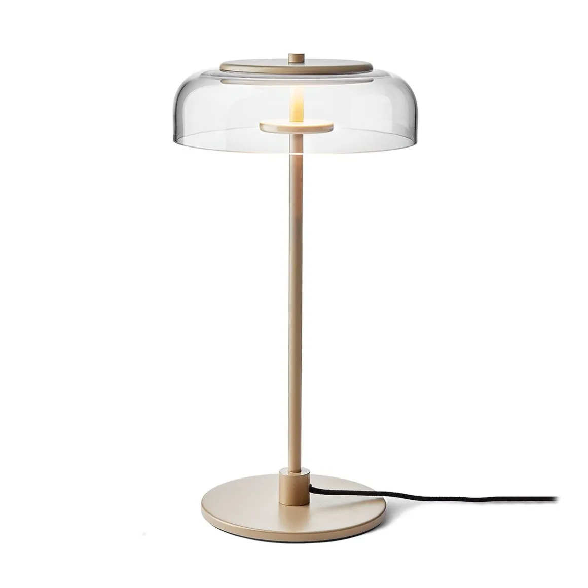 La collection Blossi est fabriquée avec la toute dernière technologie LED. Un disque LED spécialement développé est placé, de sorte que la lumière se reflète dans l’abat-jour en verre soufflé à la bouche et le métal au fini doré qui diffuse une lumière indirecte douce et sophistiquée. Câble avec variateur. Blossi table a été nominé pour un Dansh Design Award en 2018.