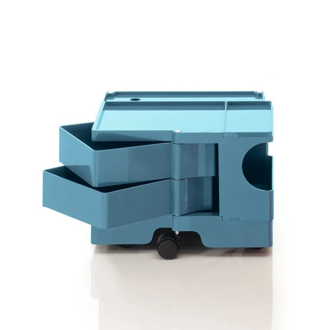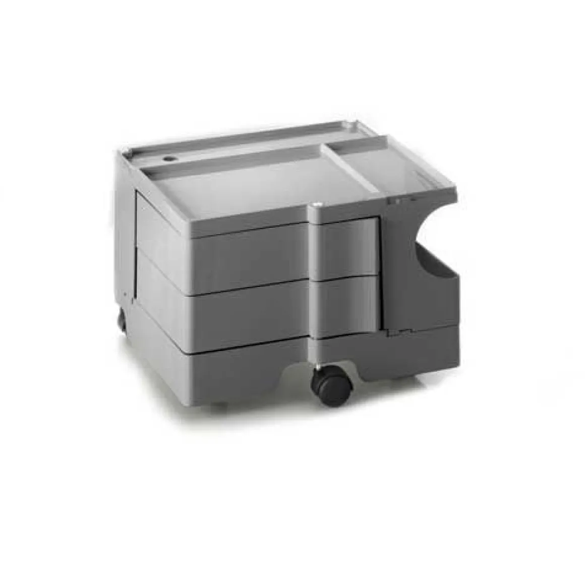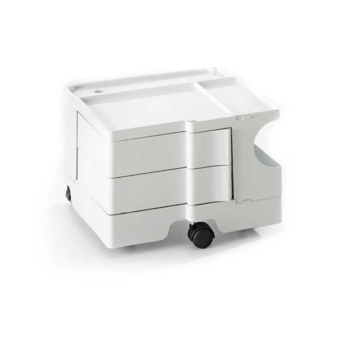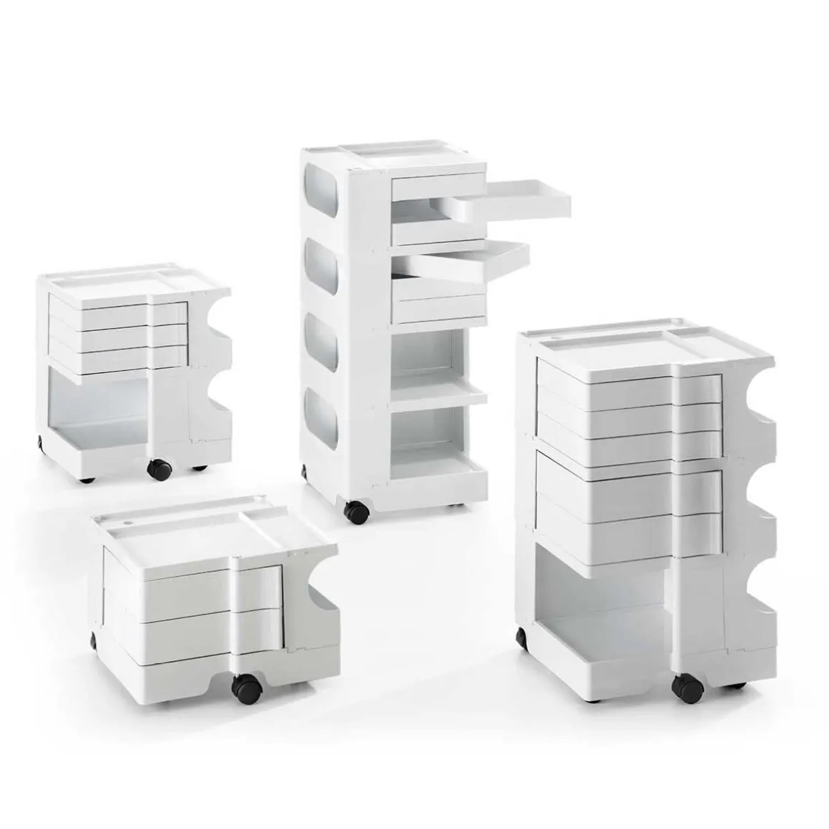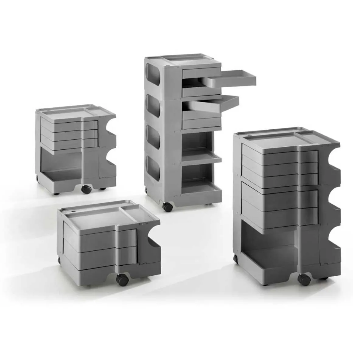 Boby est bien plus qu’un simple conteneur : c’est l’unité de stockage sur roulettes qui a fait l’histoire du design. Conçu par Joe Colombo et lancé en 1970, il a reçu le premier prix au SMAU en 1971 et fait partie de la collection permanente du MoMA et de la Triennale de Milan. La fonctionnalité et le détail sont ses points forts qui, associés à un goût indéniablement pop, continuent à en faire le chariot de rangement le plus populaire dans les secteurs de la créativité, du médical et de la maison. Conçu avec des tiroirs et des compartiments en plastique ABS moulé par injection qui garantissent des solutions simples et modulables verticalement, Boby offre une capacité de rangement polyvalente et personnalisée, tandis que ses roulettes en polypropylène garantissent une mobilité totale.