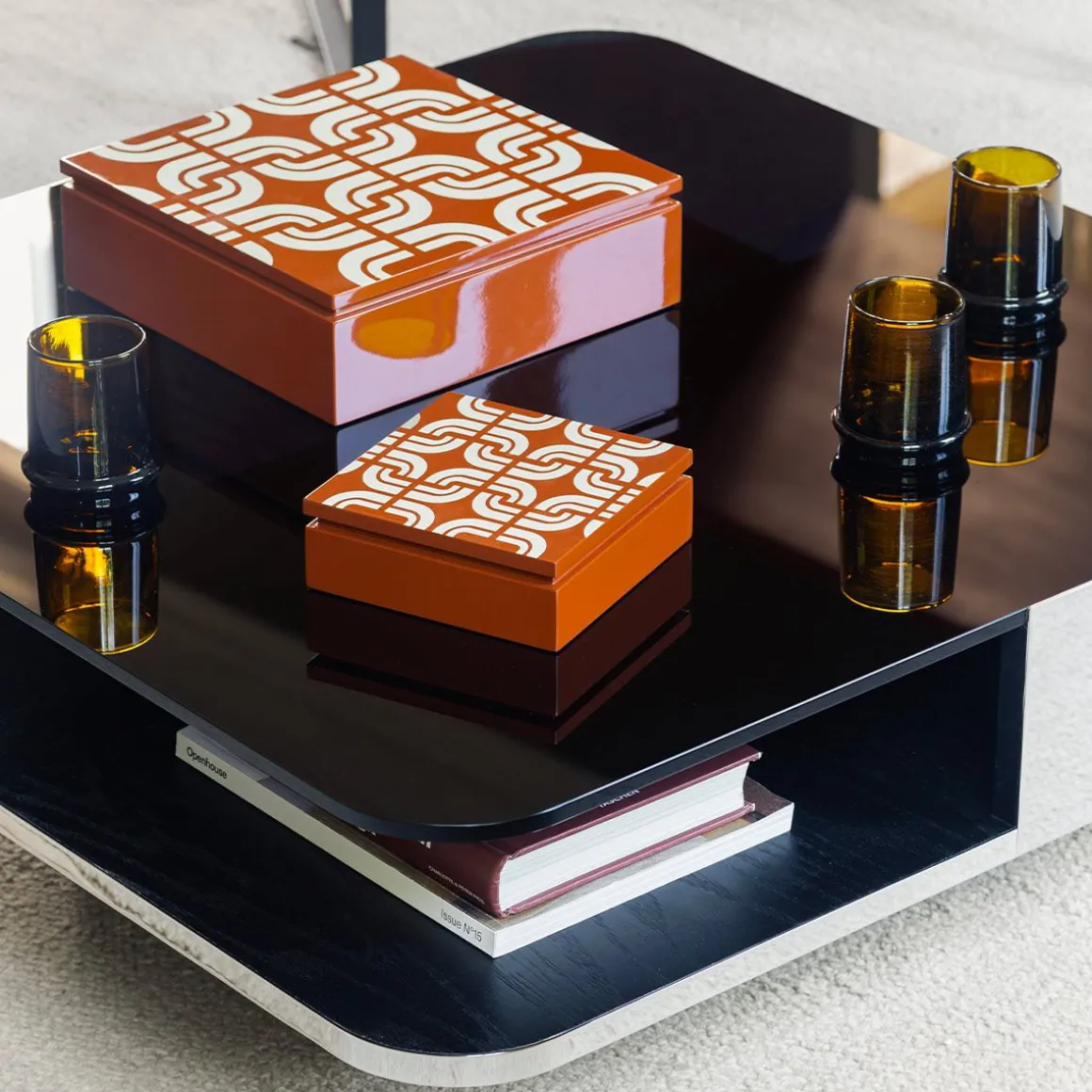 Boites Pigalle de Red Edition. Des boites carrées à disposer ensemble ou séparément, small ou large, elles permettent toutes les compositions. Elles sont fabriquées dans le respect de la tradition par des artisans de la laque. Les boîtes Pigalle servent tous vos projets de rangement avec élégance.