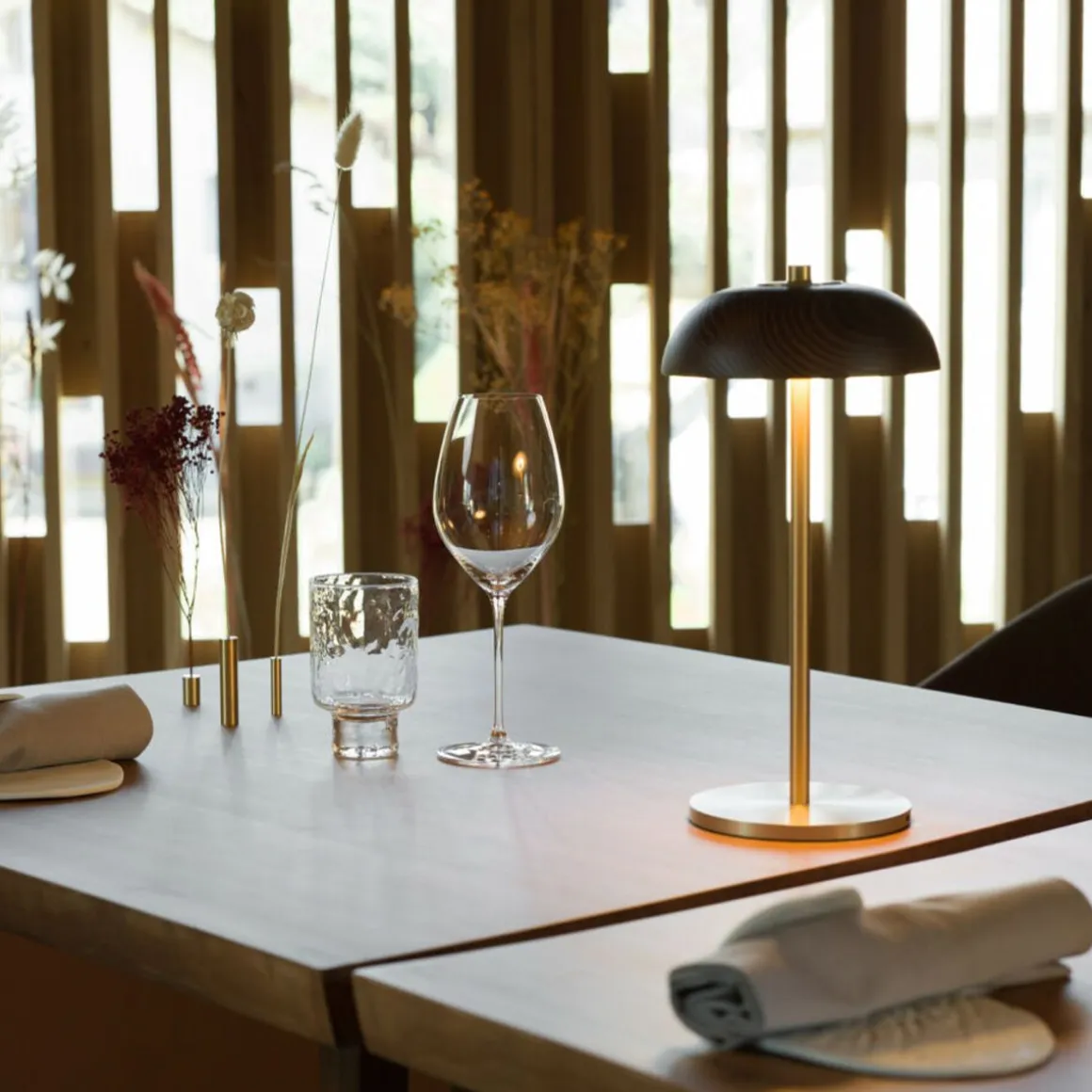 Allant la sensualité du bois massif et les lignes épurées du métal, la Bolacha, dessinée par la designer portugaise Monica Hedderich et repensé par Hisle, se caractérise par un abat-jour tout en rondeur et une finiiton anodisée. Cette lampe de table rechargeable incorpore la technologie LED HISLE, avec un interrupteur tactile à son sommet permettant de varier son intensité lumineuse.
