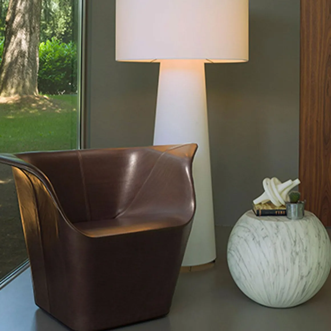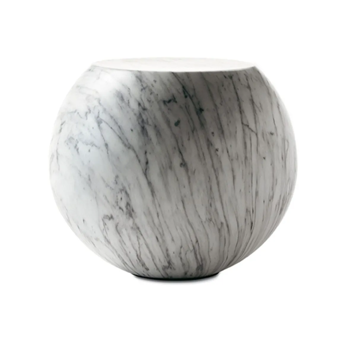 La table basse Bong est une création imaginée en 2004 par Giulio Cappellini. Petite table sphérique avec plateau rond, fabriquée en fibre de verre et résine, disponible peinte en ton mat dans une sélection de couleurs, ou avec une finition pierre de lave.