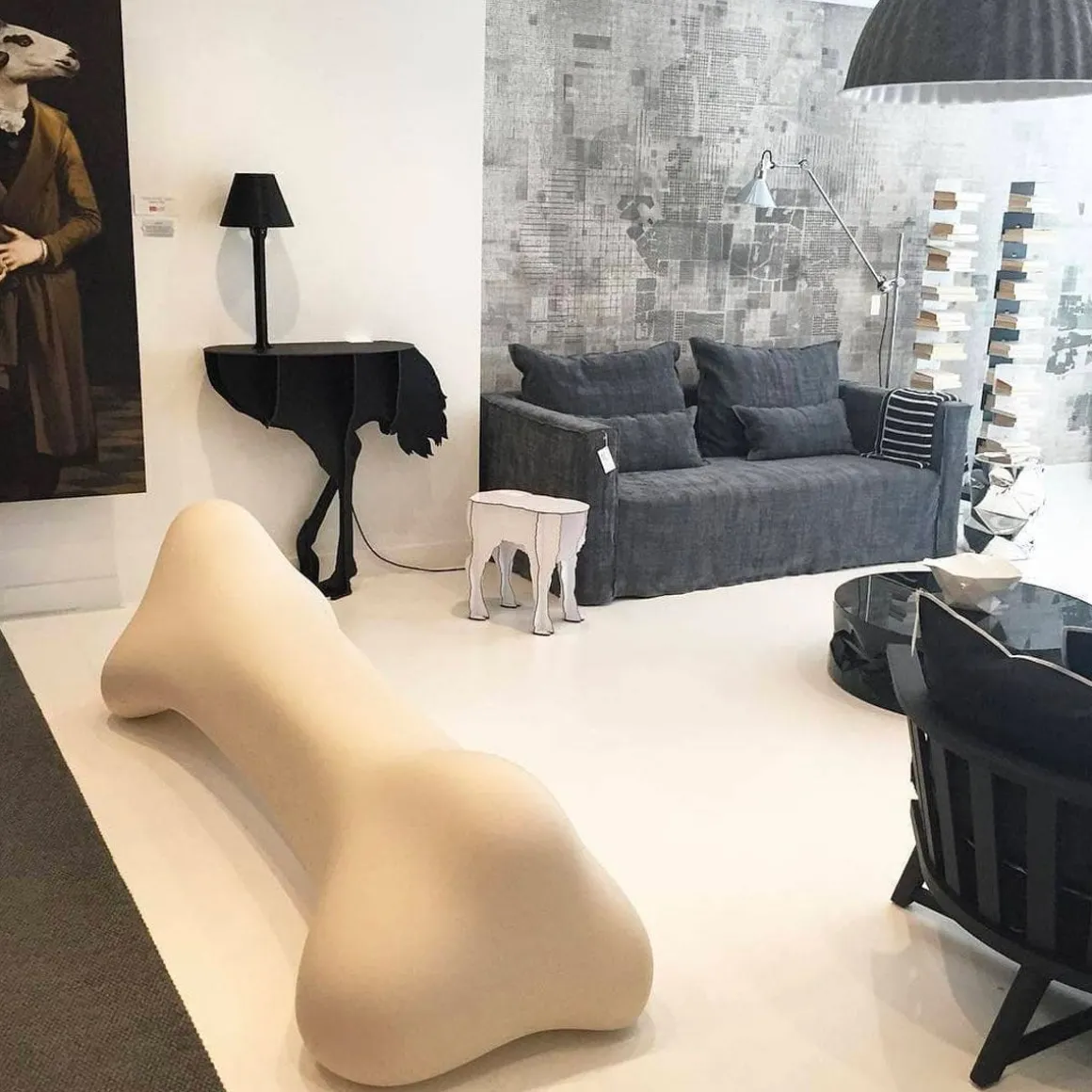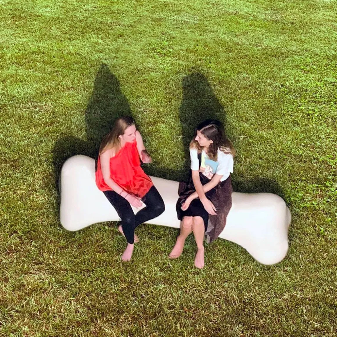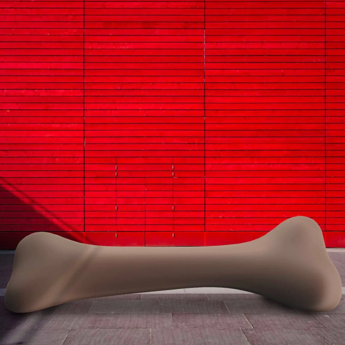 Bonos de Qeeboo par Daï Sugasawa. Daï Sugasawa a créé Qeeboo Bonos, une immense reproduction d’un gros et drôle os de 2 mètres de long devant lequel petits et grands peuvent s’asseoir avec plaisir. Pour tous les aficionados de la « Nuit au Musée » !