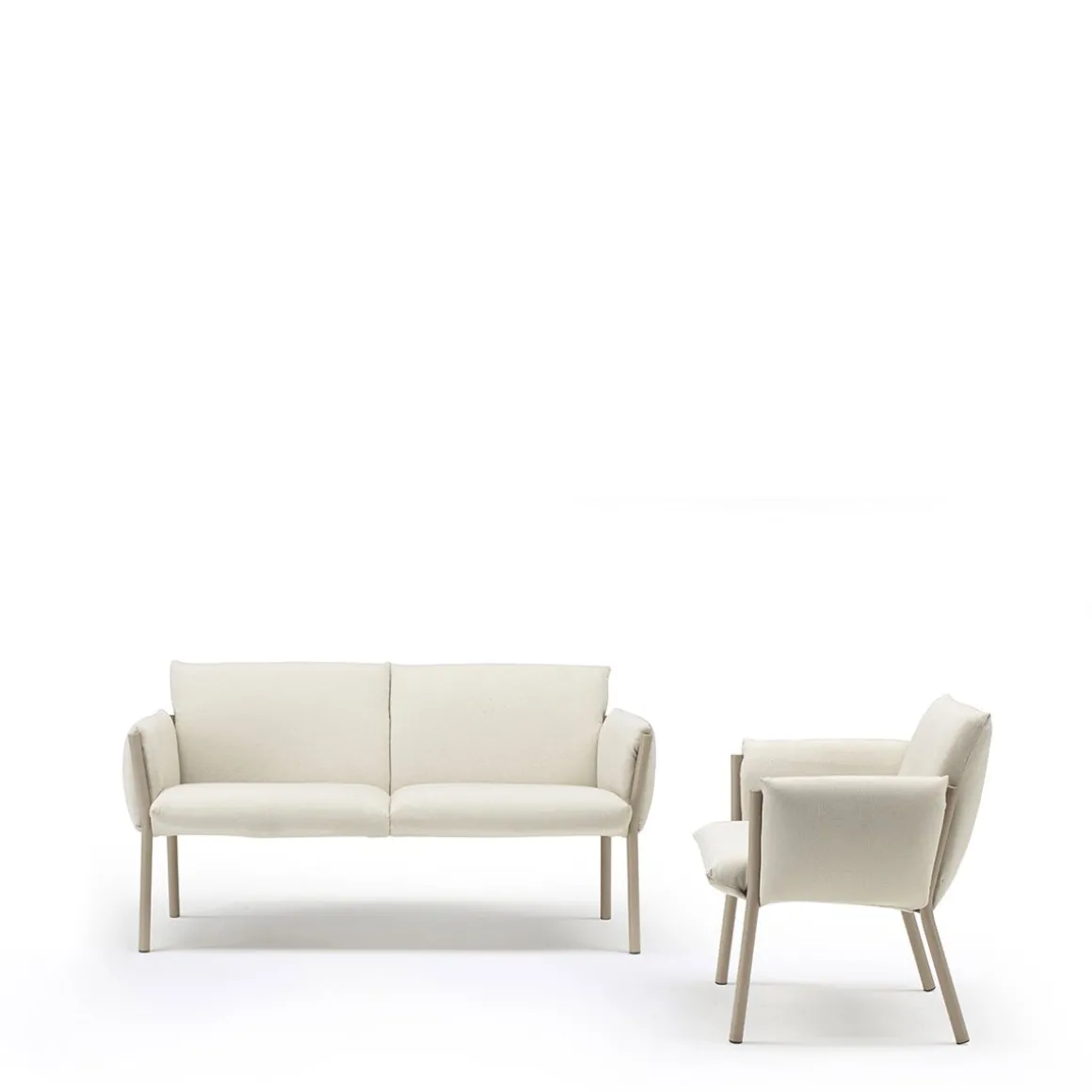 La famille de sièges d’extérieur Brezza s’agrandit avec deux nouvelles pièces, une chaise longue et un canapé deux places. Tous deux héritent de l’approche de production de leur prédécesseur : les coussins souples sont fixés au cadre sans colle, boutons, fermetures éclair ou velcro, facilitant ainsi le démontage et le remplacement, conformément au principe de circularité de la conception.