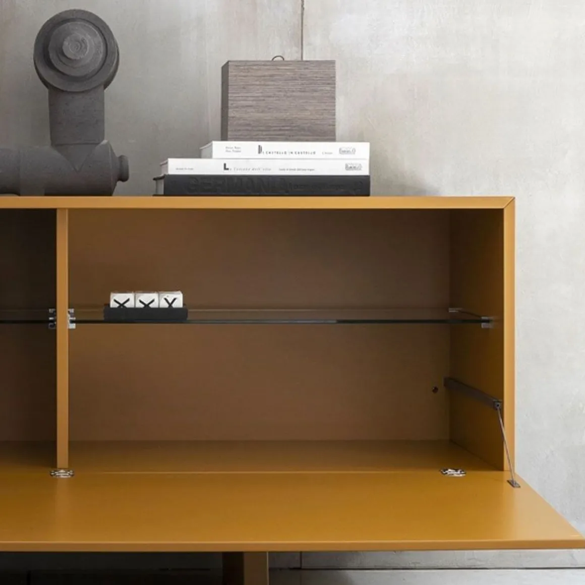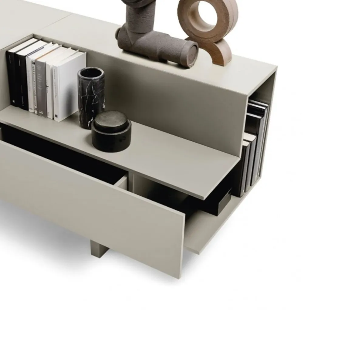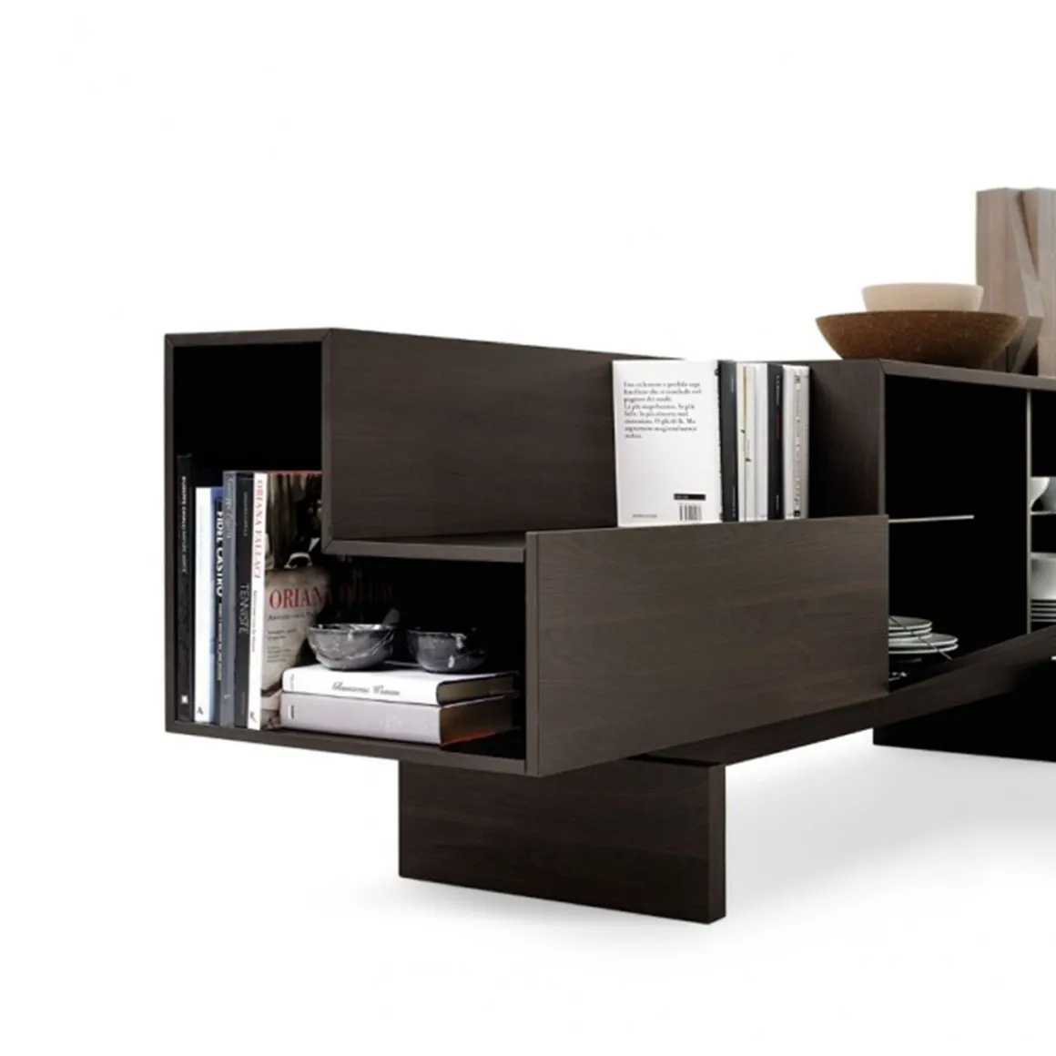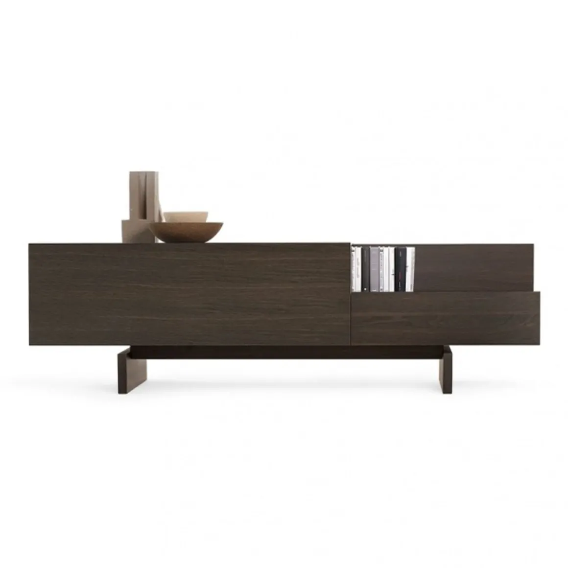 Ella est un buffet avec structure en mdf laqué dans toutes les couleurs selon l’échantillon ou plaqué en bois de chêne noir traité thermiquement. Conteneur au design linéaire grâce à des éléments simples et purs placés côte à côte et superposés, de vides et de solides qui prennent un caractère architectural dans n’importe quelle pièce de la maison.