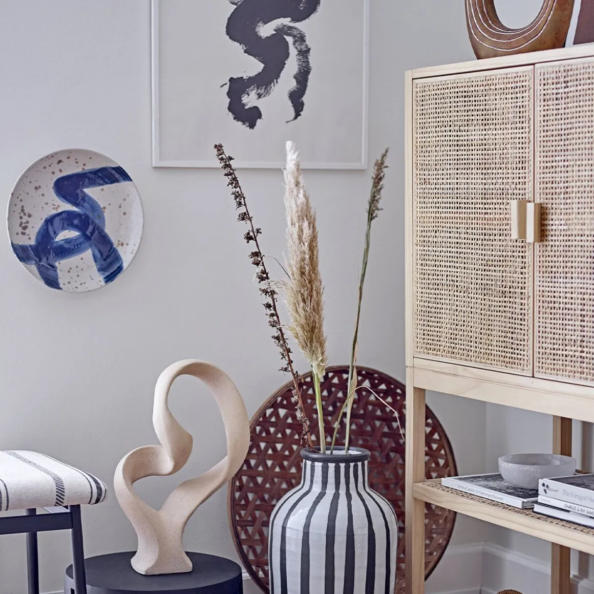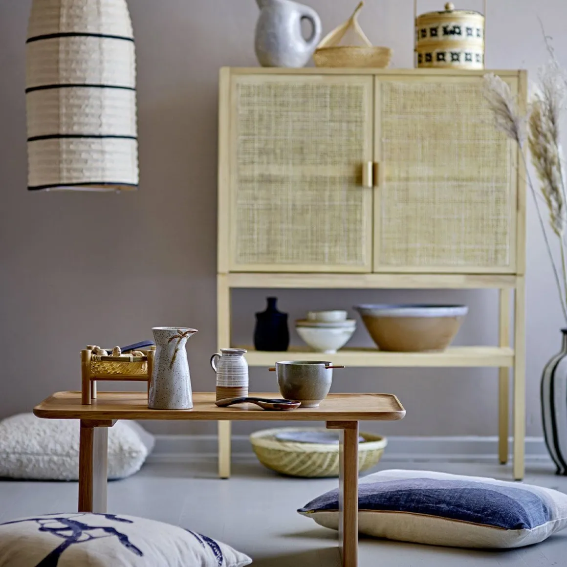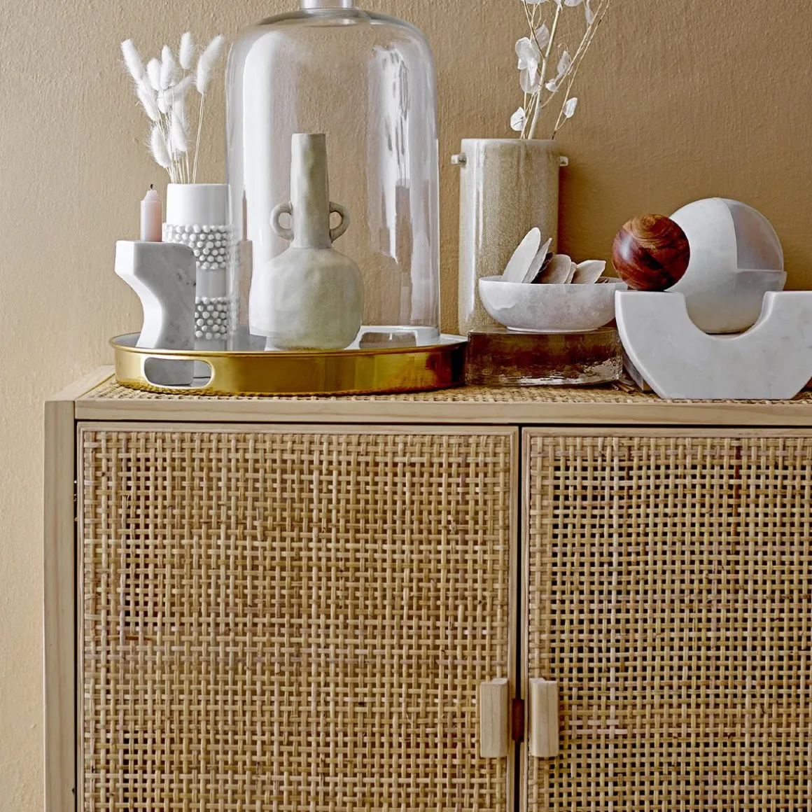 La nouvelle ère du cannage… Inspiration fifties et sobriété scandinave pour ce buffet à l’allure rétro qui fait la part belle aux matériaux naturels et chaleureux. Mixant pin naturel et rotin, le buffet Sanna revisite l’utilisation du cannage avec modernité et élégance. La trame de rotin tissé dessine un motif délicat qui joue avec la transparence. Cette matière ajourée forme un filtre qui dissimule en partie le contenu du meuble et apporte une grande légèreté visuelle. Les faces latérales du meuble ainsi que l’étagère inférieure sont également travaillées en cannage de rotin.