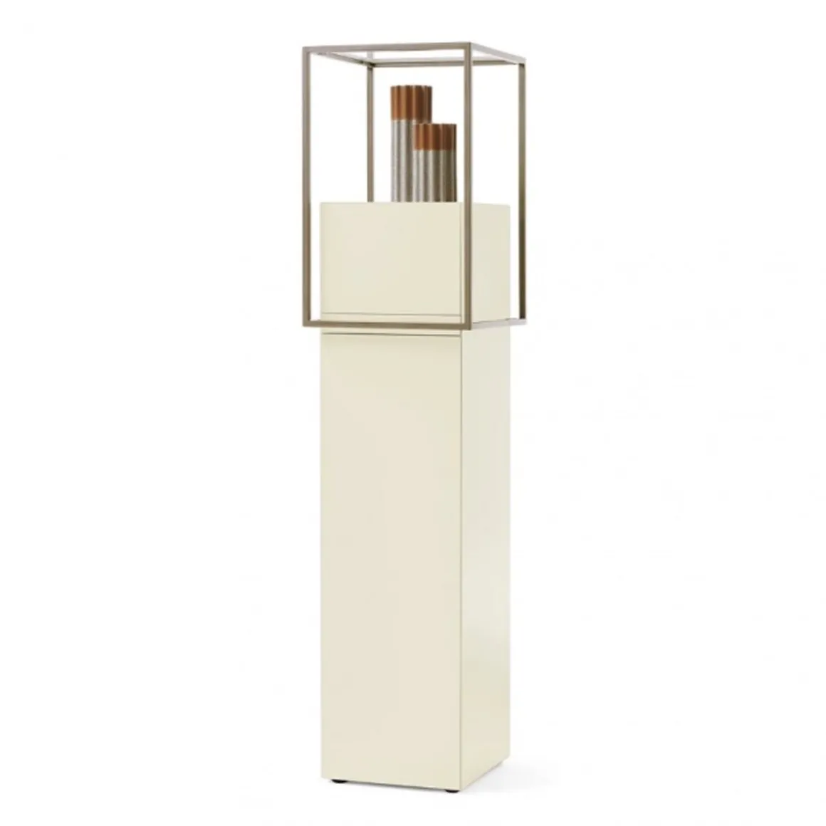 Zoom tower, conçu par Uto Balmontal pour Mogg, est un conteneur avec une structure en MDF et un cadre métallique, complet avec 3 étagères intérieures en verre et 2 portes. Élégant et contemporain, ce buffet s’adapte à tout environnement à forte identité.