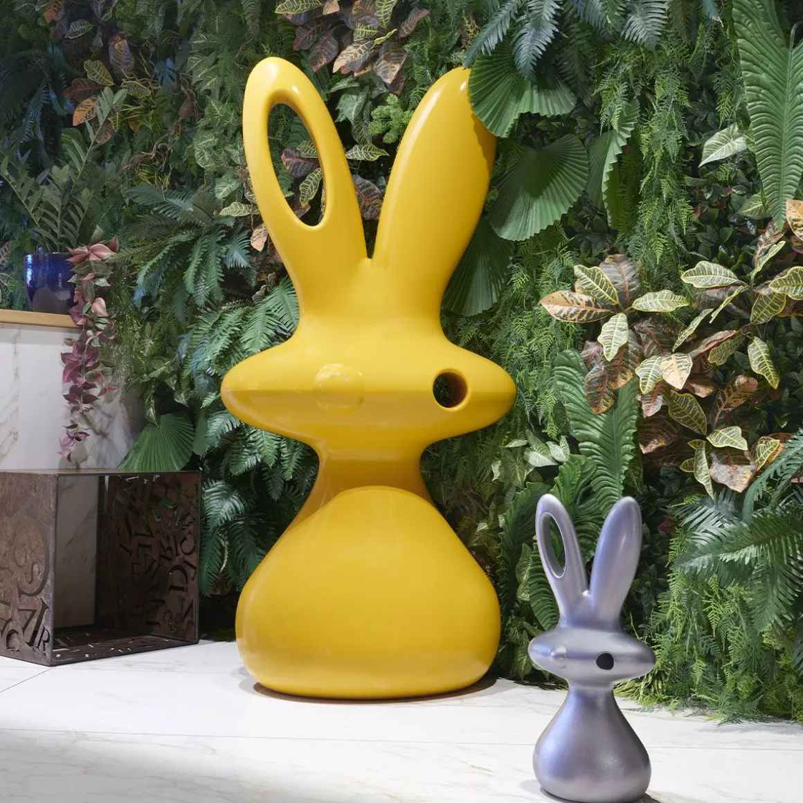 Du flair créatif du grand artiste japonais Aki Kuroda, et de la collaboration avec la galerie Yoyo Maeght, voici les sculptures Bunny et Cosmo Bunny. Le projet est né en 2008 d’une rencontre entre l’artiste japonais et Giò Colonna Romano, fondateur de SLIDE, dans le cadre du projet SLIDE Art, où l’union entre l’art et le design a atteint son apogée en termes de créativité et de recherche . L’œuvre, en nombre limité, devient objet de design cette année, coïncidant avec l’avènement de l’année chinoise du Lapin : la petite version, Bunny, et la grande version, Cosmo Bunny, sont la parfaite synthèse entre sculpture artistique , en raison de leur forme unique et production industrielle, créées en polyéthylène par rotomoulage. Grandes oreilles et yeux sauvages, la silhouette unique de Bunny et Cosmo Bunny remplit les pièces de par son adorable charisme.