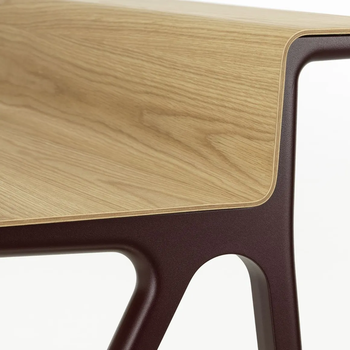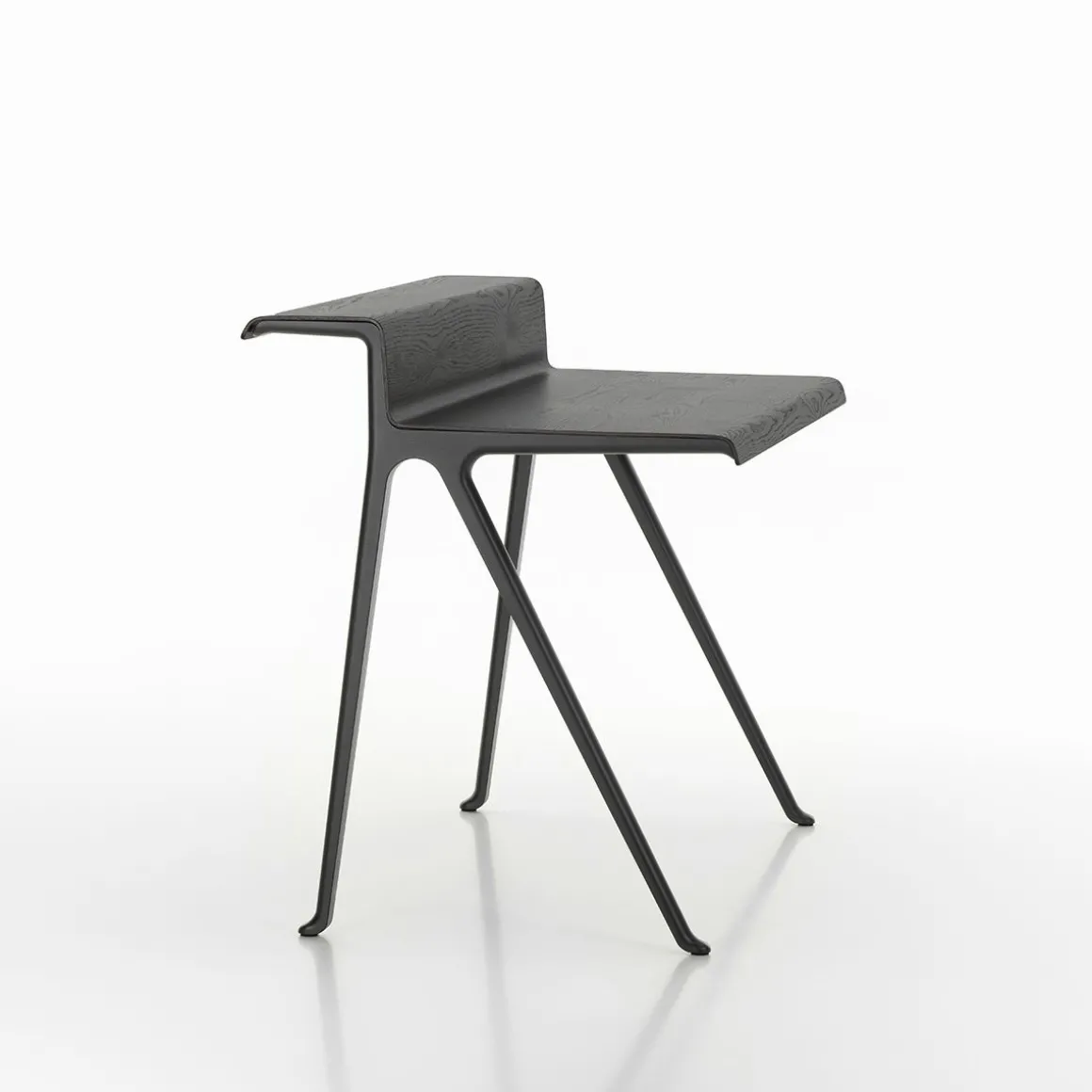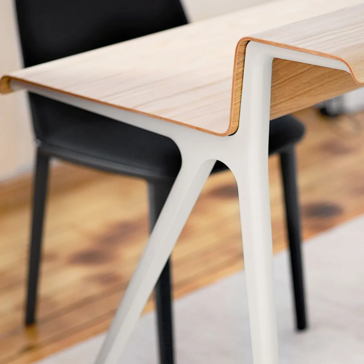 Outre ses projets de design industriel, Ronan Bouroullec est également artiste. Il réalise des dessins complexes dans lesquels il répète des séquences de lignes, à la main, avec un pinceau japonais. Les contours de Courier peuvent être interprétés comme l’expression de cette verve artistique, mais témoignent également du flair de Ronan Bouroullec pour la forme et la composition ainsi que son expertise technique : le bureau combine sans effort deux matériaux de haut qualité, le bois et l’aluminium, pour créer un ensemble distinctif mais discret. Courier rejoint ainsi le Home Desk de George Nelson, le Compas Direction de Jean Prouvé et l‘EDU de Charles et Ray Eames dans une collection d‘objets à l‘esthétique séduisante, qui sont à la fois bureau et sculpture. Vue de côté, la silhouette du bureau rappelle les contours d‘une lettre à empattement – d‘où le nom Courier, qui est l‘une des polices de caractères à empatte- ment les plus connues.