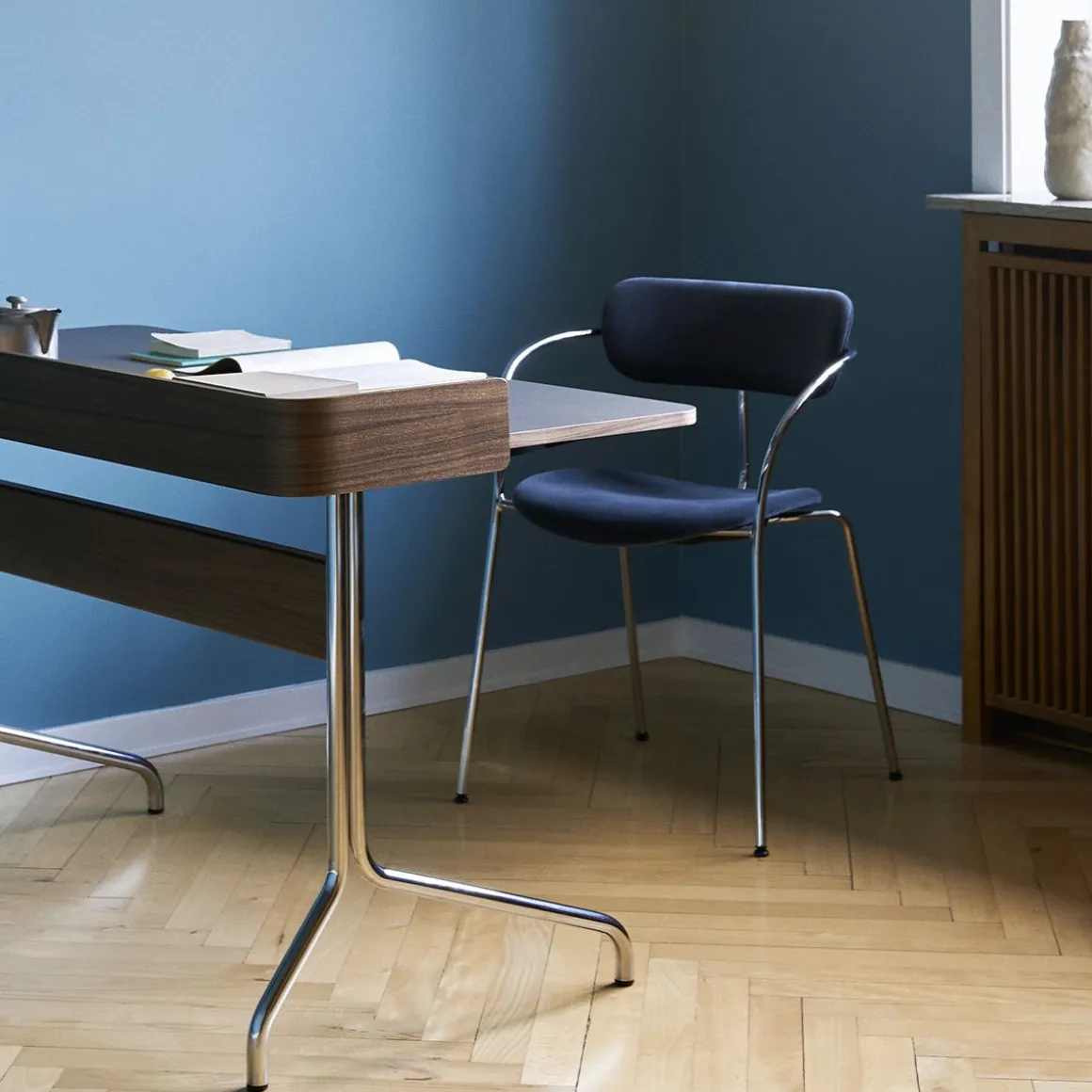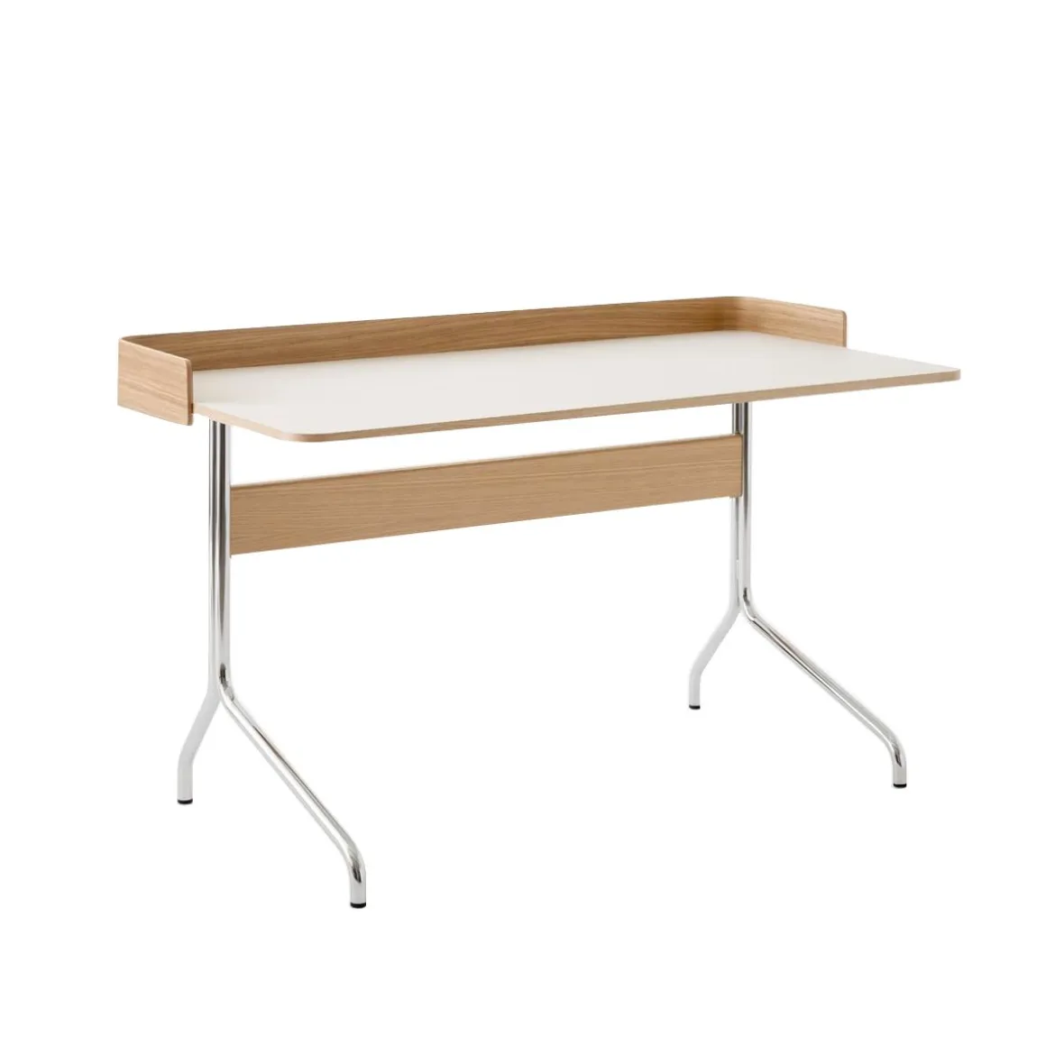 Lorsqu’Anderssen & Voll a créé sa série de chaises Pavilion, le duo primé s’est inspiré de l’emblématique Langelinie Pavilion. Maintenant, cette esthétique légère et lyrique a été traduite en un bureau compact destiné à convenir à la fois aux espaces de bureau et à la maison. Conçu au début de la pandémie, le bureau Pavilion a pris en compte les exigences du travail à domicile avec une version dotée d’un panneau arrière.