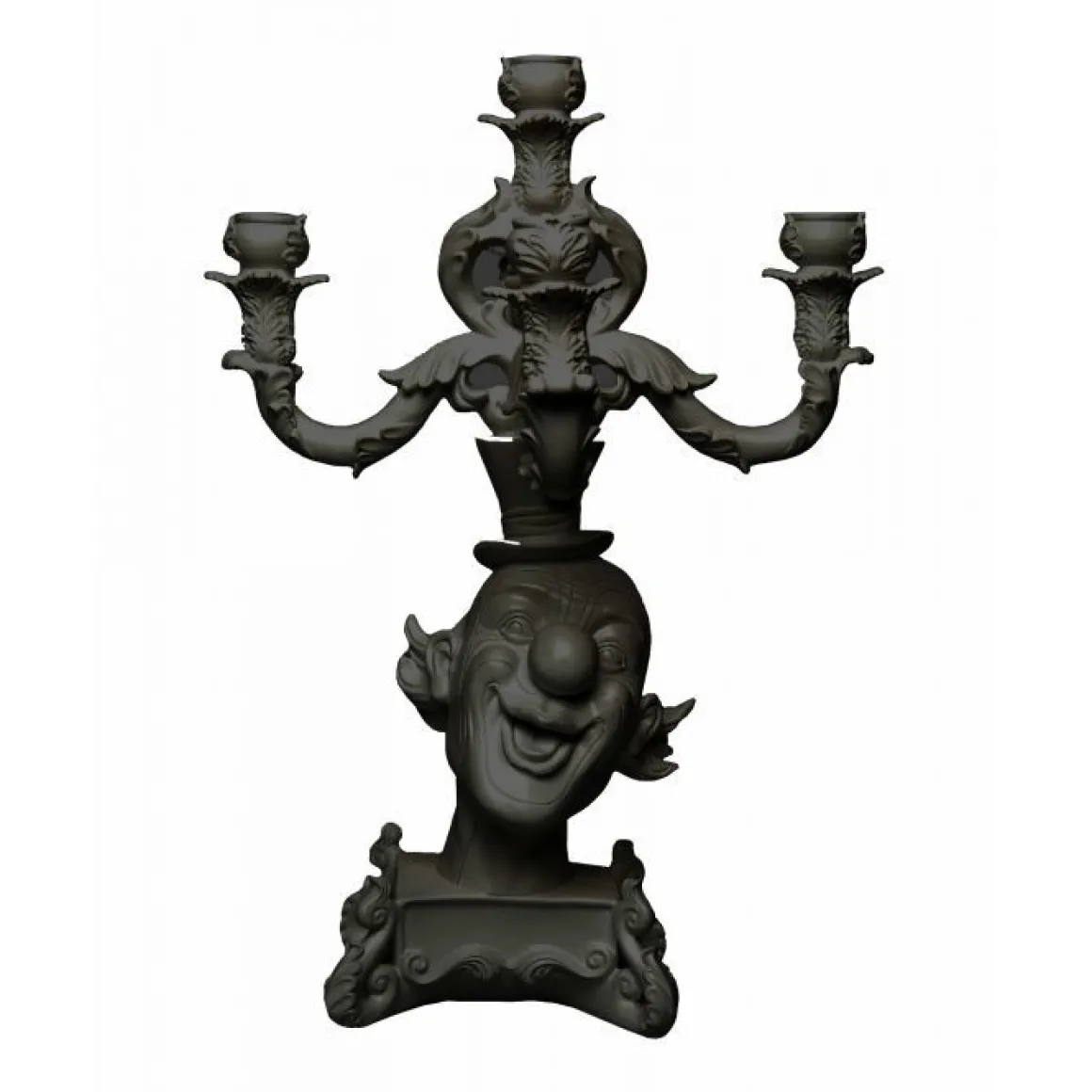 Ce chandelier à 5 branches de Seletti est baroque et surréaliste. La résine a remplacé le laiton, le marbre ou la porcelaine ; les volutes et feuillages en reliefs sont aux antipodes du minimalisme actuel. Les motifs qui composent le corps du chandelier sont loin des standards traditionnels du XVIIIe siècle. Une création contemporaine atypique !