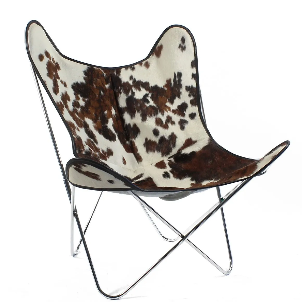 A l’intérieur, le fauteuil AA Butterfly cuir « peau de vache » séduit par la pureté et le modernisme de son design, ainsi que par son caractère totalement intemporel. Se souciant aussi bien de la forme que de la fonction, il offre en outre un confort total et procure un sentiment inégalé de bien-être et de relaxation. La version peau de vache trouvera ses quartiers aussi bien dans un univers résolument design que dans un chalet de montagne ou un intérieur cosy. Robuste, mais extrêmement souple, elle allie classe et confort, et ne pourra que vous séduire.