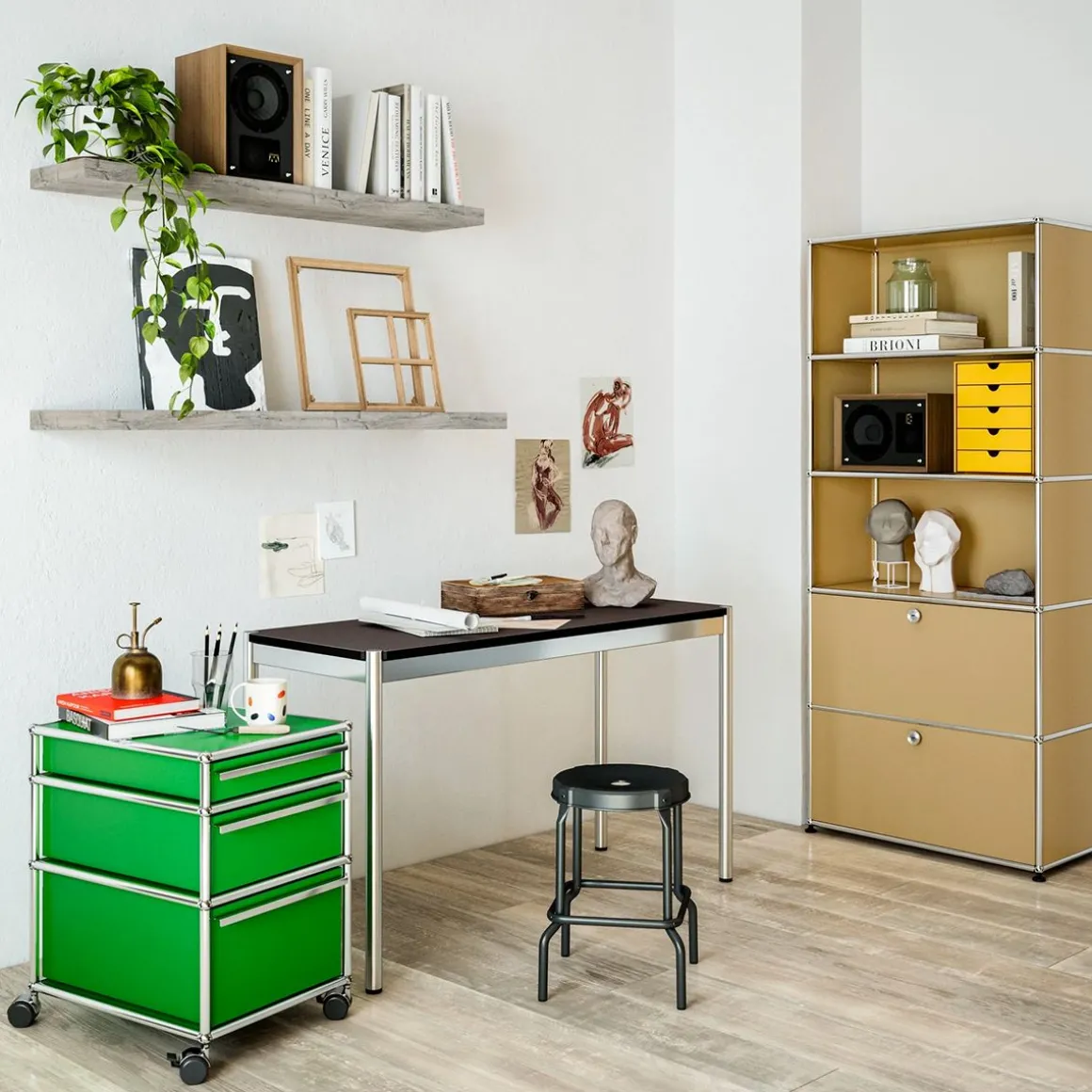 Créés par un architecte et un industriel visionnaires, les meubles USM sont fabriqués en Suisse depuis plus de 50 ans et reconnus dans le monde entier. Leur qualité de fabrication et leurs lignes intemporelles en font un classique incontournable du design, qui trouve sa place aussi bien dans les bureaux que dans les plus beaux intérieurs, classiques ou modernes. Leur conception modulaire permet de les faire évoluer au fil du temps selon les besoins et les envies.