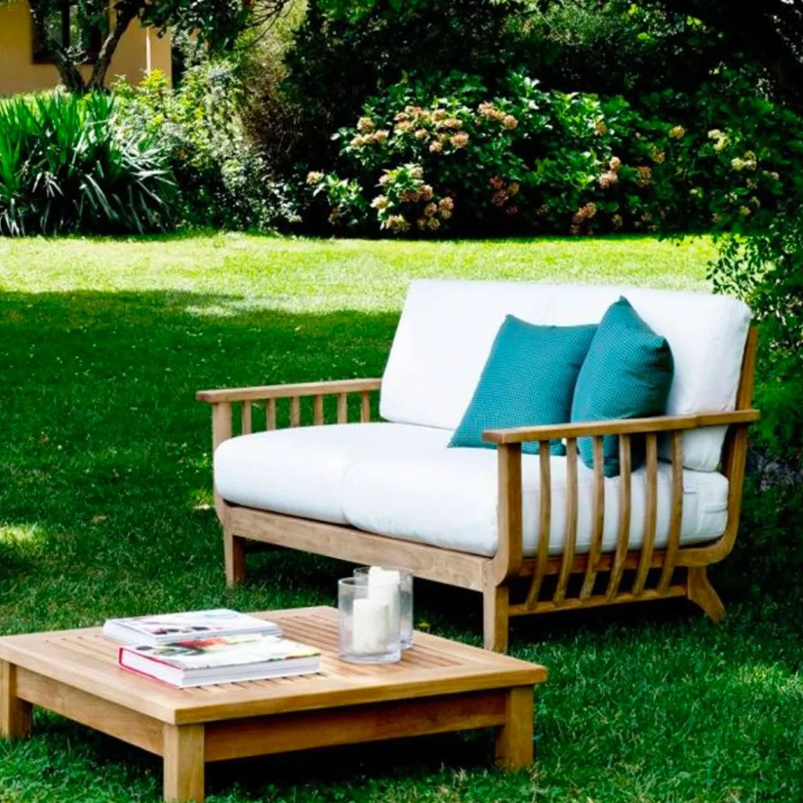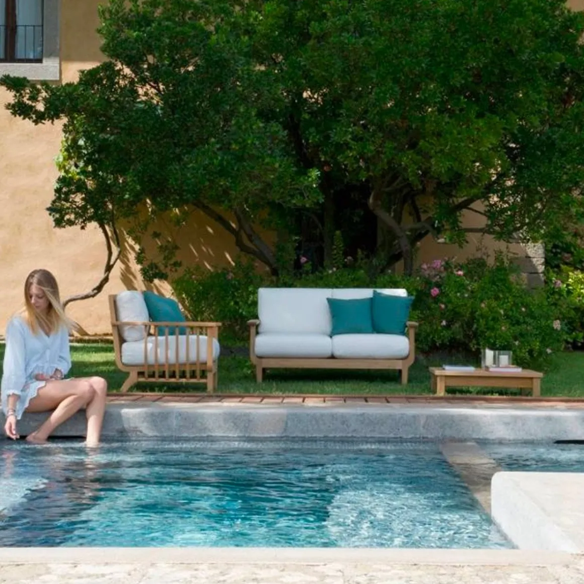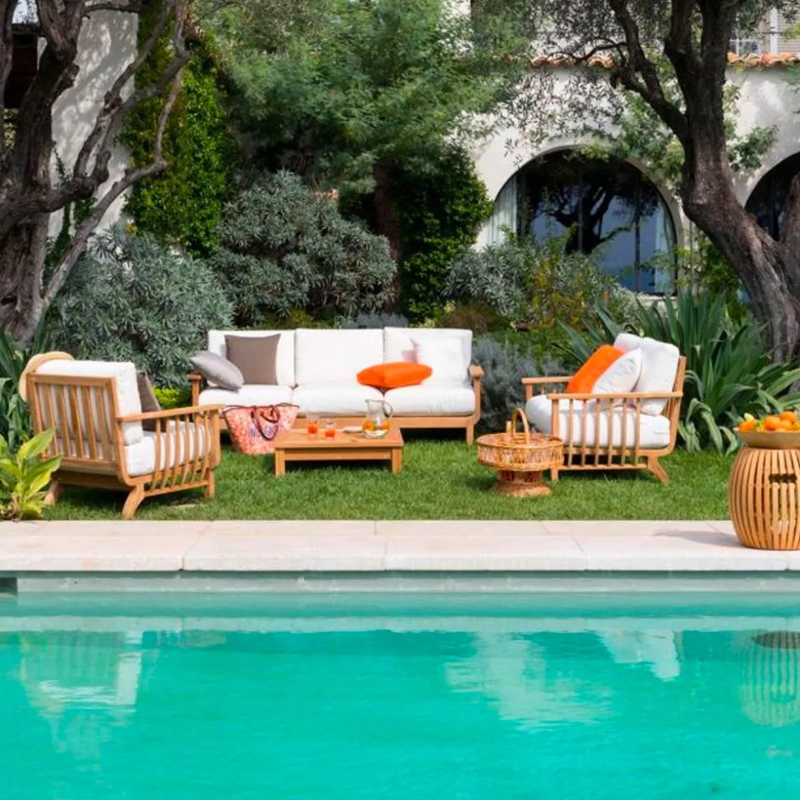 La collection en teck Chelsea se distingue par ses volumes contenus, le soin des détails, son élégance naturelle et l’originalité du design. Un design d’inspiration orientale imprègne le salon Chelsea dont la hauteur d’assise est rehaussée par d’épais coussins déhoussables en tissu 100% acrylique de couleur blanc.