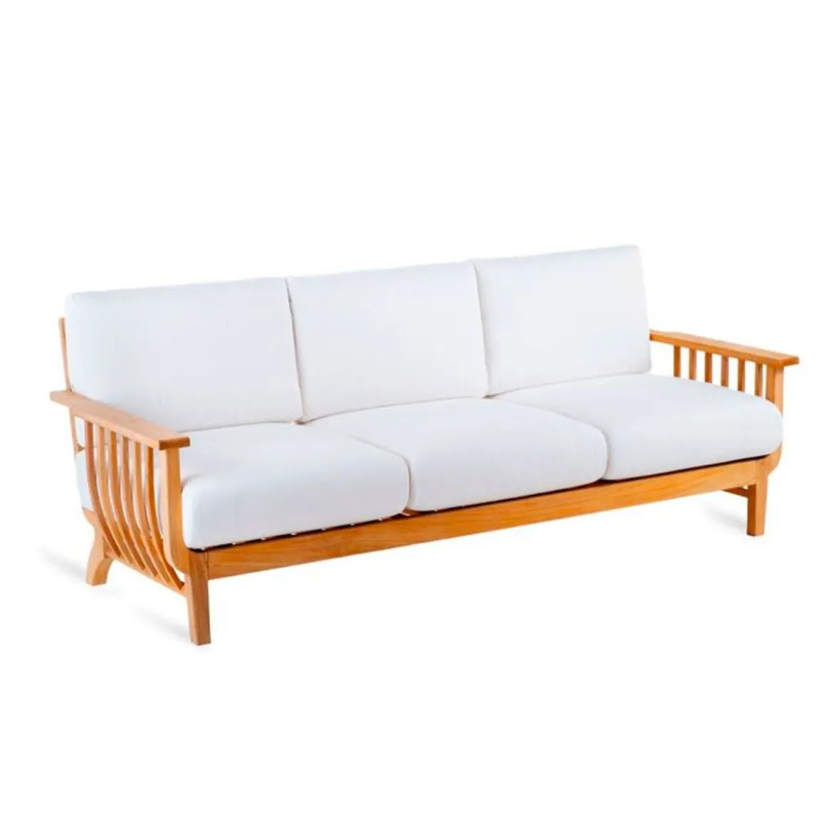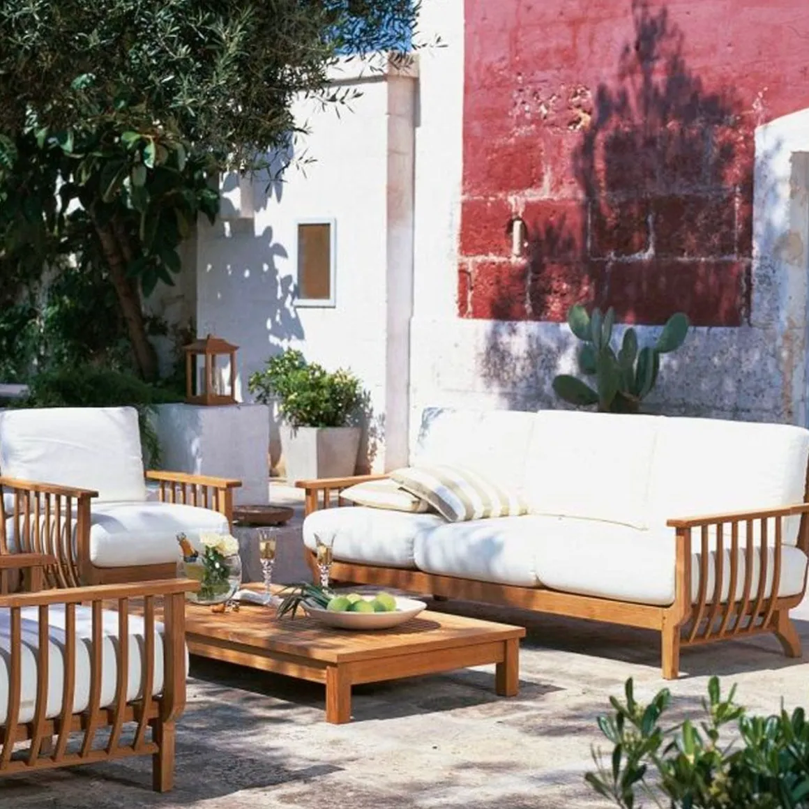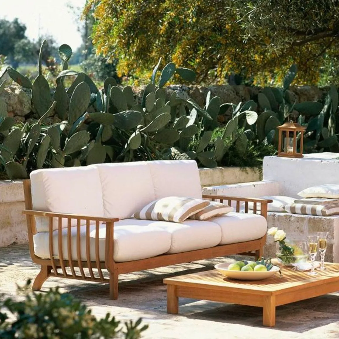 La collection en teck Chelsea se distingue par ses volumes contenus, le soin des détails, son élégance naturelle et l’originalité du design. Un design d’inspiration orientale imprègne le salon Chelsea dont la hauteur d’assise est rehaussée par d’épais coussins déhoussables en tissu 100% acrylique de couleur blanc.