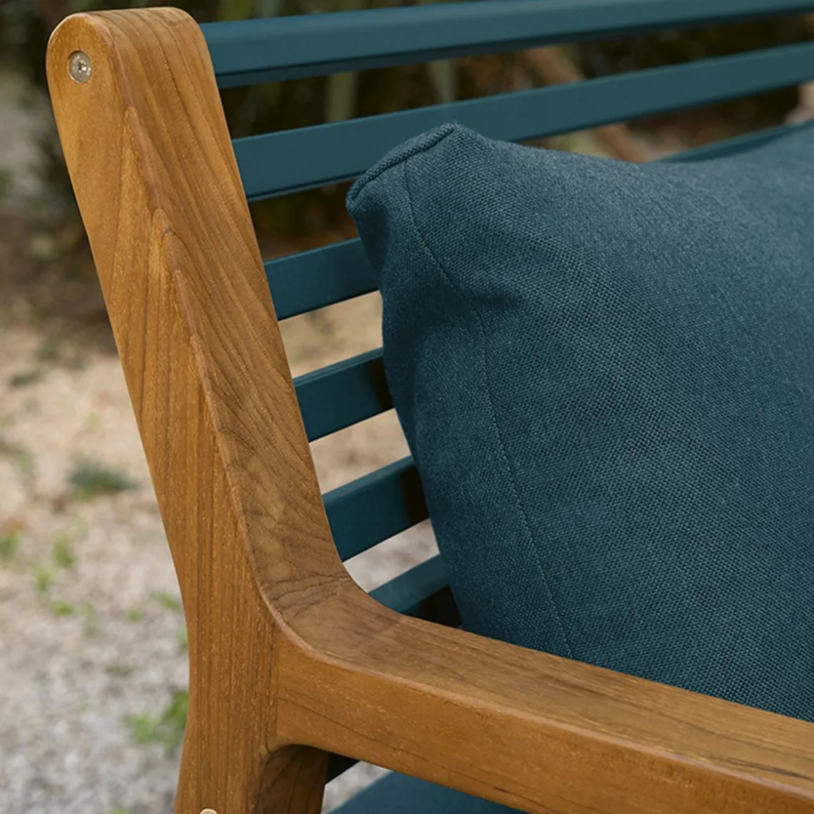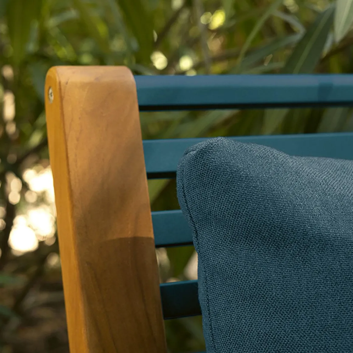 Matériaux : tissus outdoor acrylique teint masse et teck