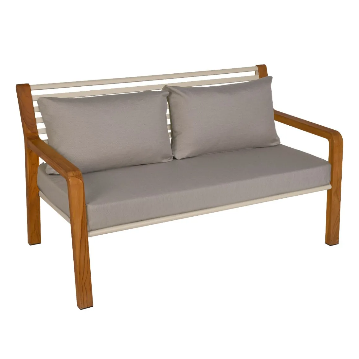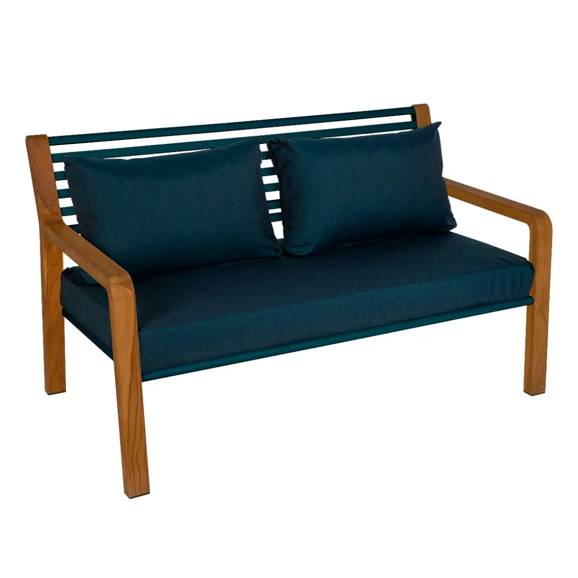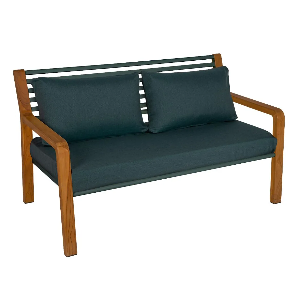 Le canapé 2 places Somerset vous évoque des souvenirs de vos séjours outre-Manche ? Rien d’étonnant ! Inspiré des bancs anglais, Fermob a eu l’effronterie de revisiter ce grand classique qui va pimper votre intérieur et/ou vos extérieurs. Placez-le dans votre séjour, dans votre jardin ou sur votre terrasse, à l’ombre d’un saule pleureur ou d’un parasol et confiez vos secrets à votre moitié ou recueillez ceux de votre meilleur ami. Tous deux confortablement installés, vous ne verrez pas le temps passer… L’audace des lignes du canapé Somerset s’ajoute à celle du mélange bois-métal. Fermob, a choisi le teck pour ses qualités d’imputrescibilité mais a également sourcé son approvisionnement de manière responsable : ni traité, ni huilé, ce teck est issu de forêts gérées durablement. Piètement et accoudoirs sont taillés dans ce bois brut, aux nœuds et irrégularités visibles, ce qui donnent une allure chaleureuse à cette banquette 2 places. Assise et dossier, sont, quant à eux, composés de lattes en aluminium, évocatrices des authentiques bancs British. Le banc en bois et métal vous apportera un confort optimal grâce au degré d’inclinaison du dossier et à la profondeur de l’assise qui ont été étudiés avec le plus grand soin et qui sont agrémentés de coussins déhoussables en tissu outdoor Sunbrella®. Le canapé 2 places Somerset a une forte personnalité : ses coussins assortis en ton sur ton à ceux de la structure lui apporte une touche de peps très contemporaine qui upgradera votre extérieur et pourquoi pas, d’ailleurs, votre intérieur.