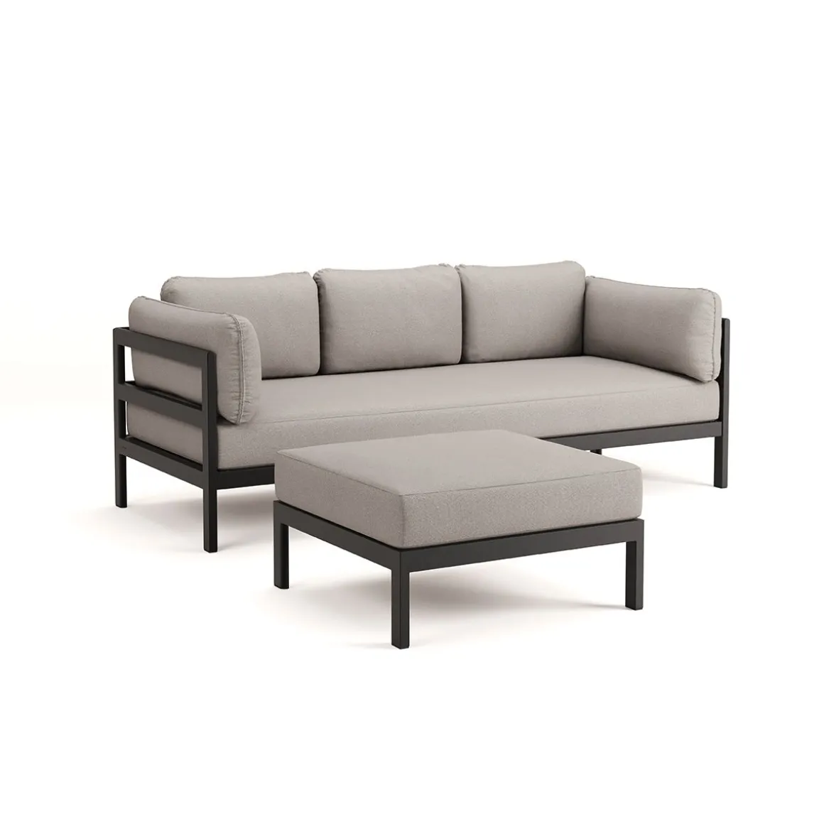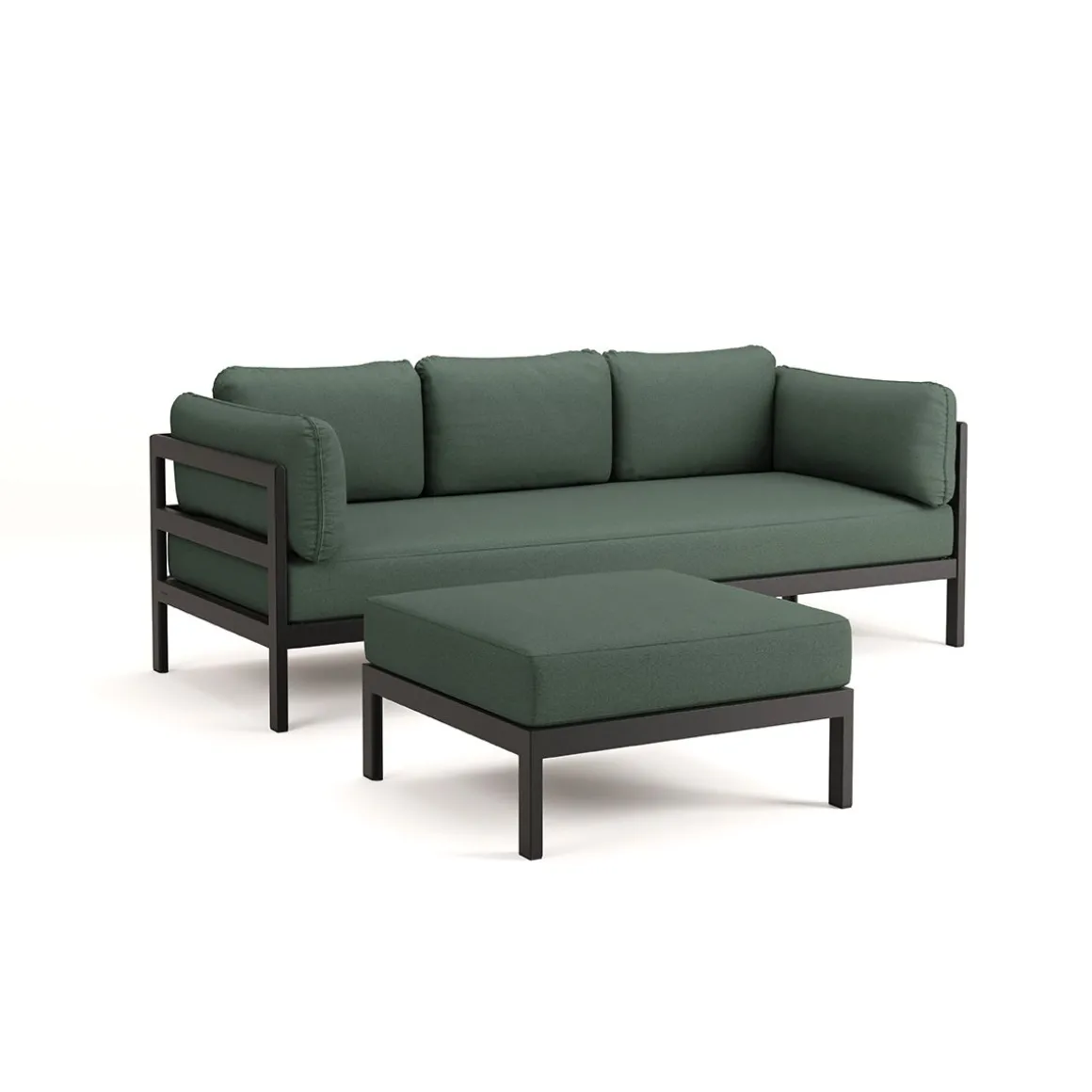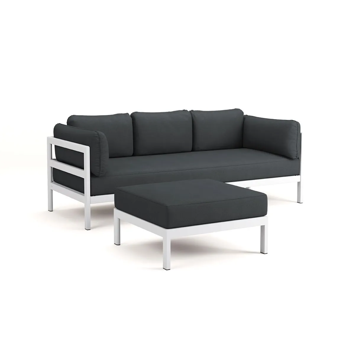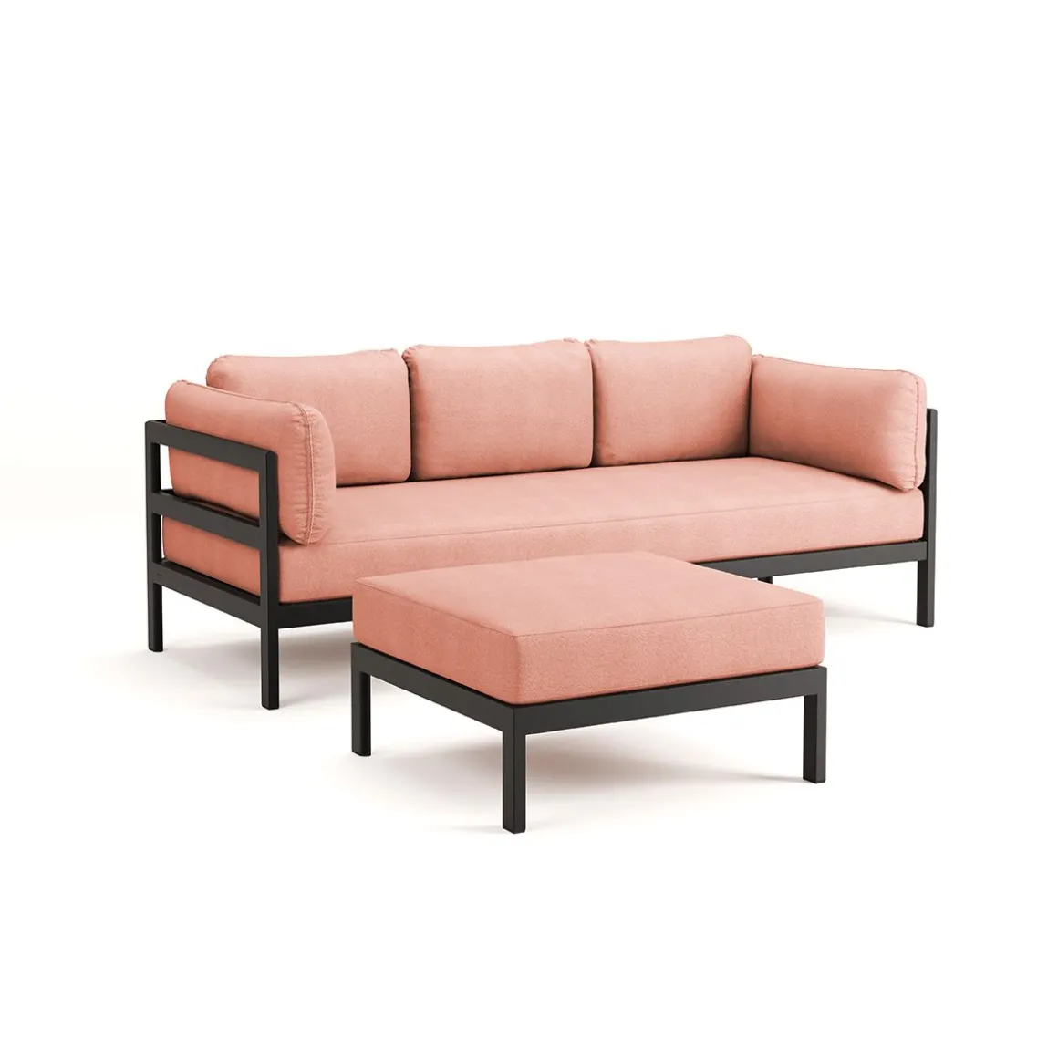 Matériaux : textile en polyester recyclé à partir de bouteilles en plastique, labellisé « OEKO-TEX 100 », coussins granit de flocons en mousse recyclé, structure en acier
