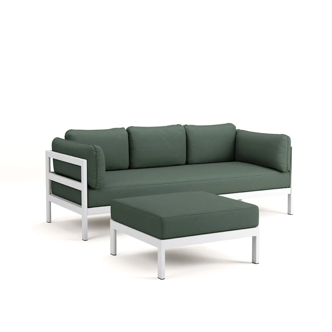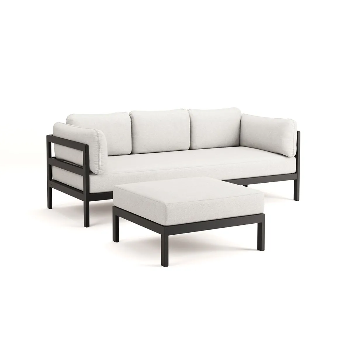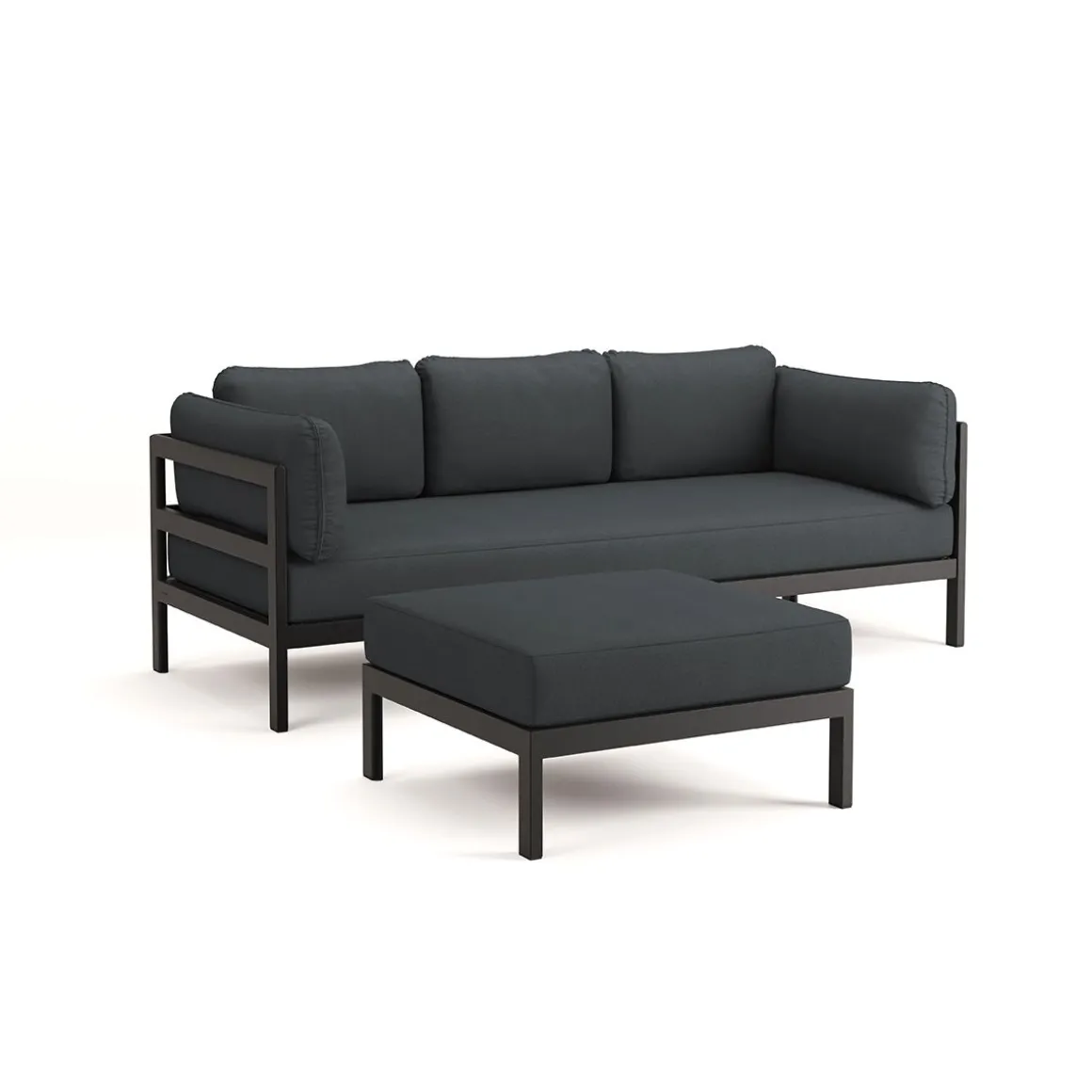 Matériaux : textile en polyester recyclé à partir de bouteilles en plastique, labellisé « OEKO-TEX 100 », coussins granit de flocons en mousse recyclé, structure en acier