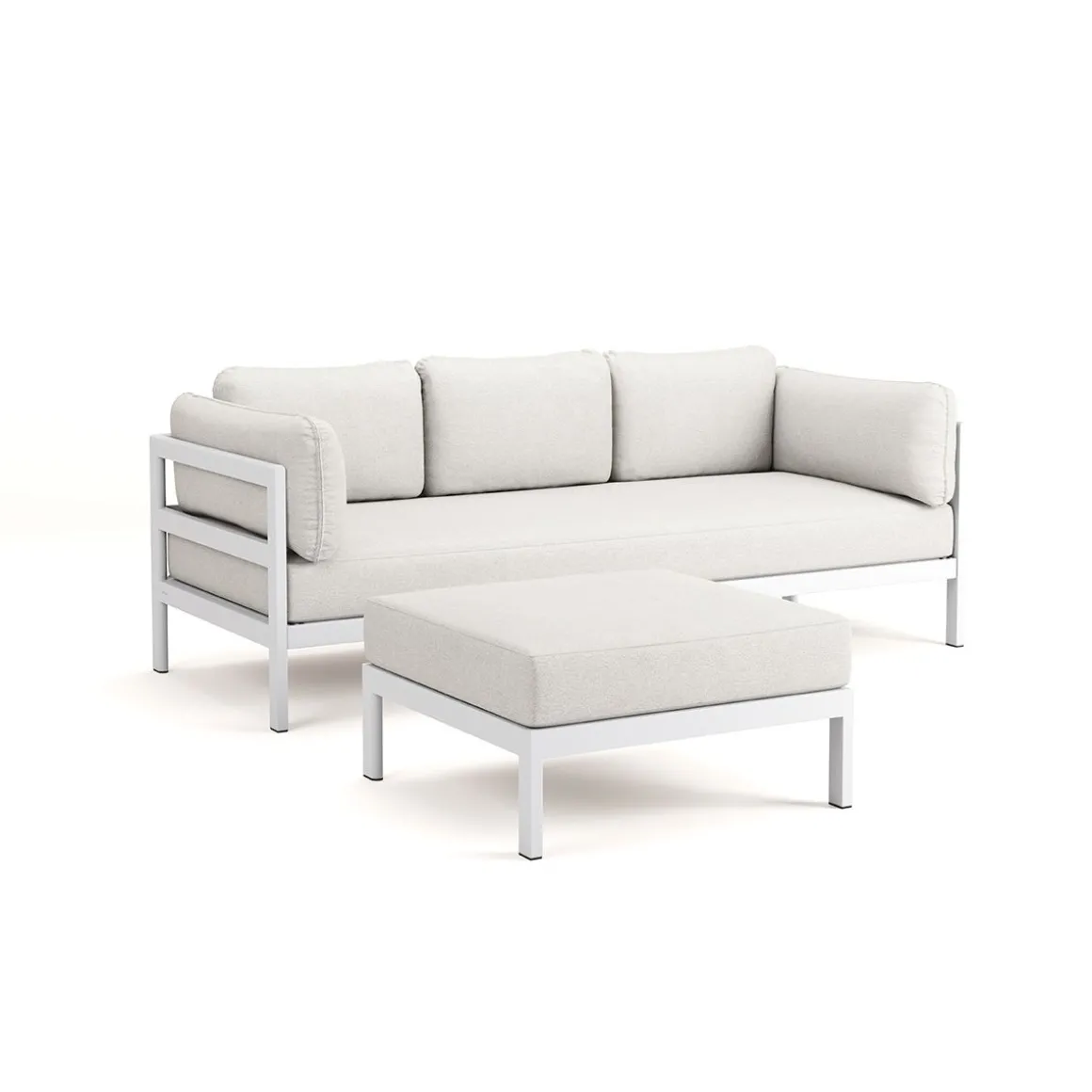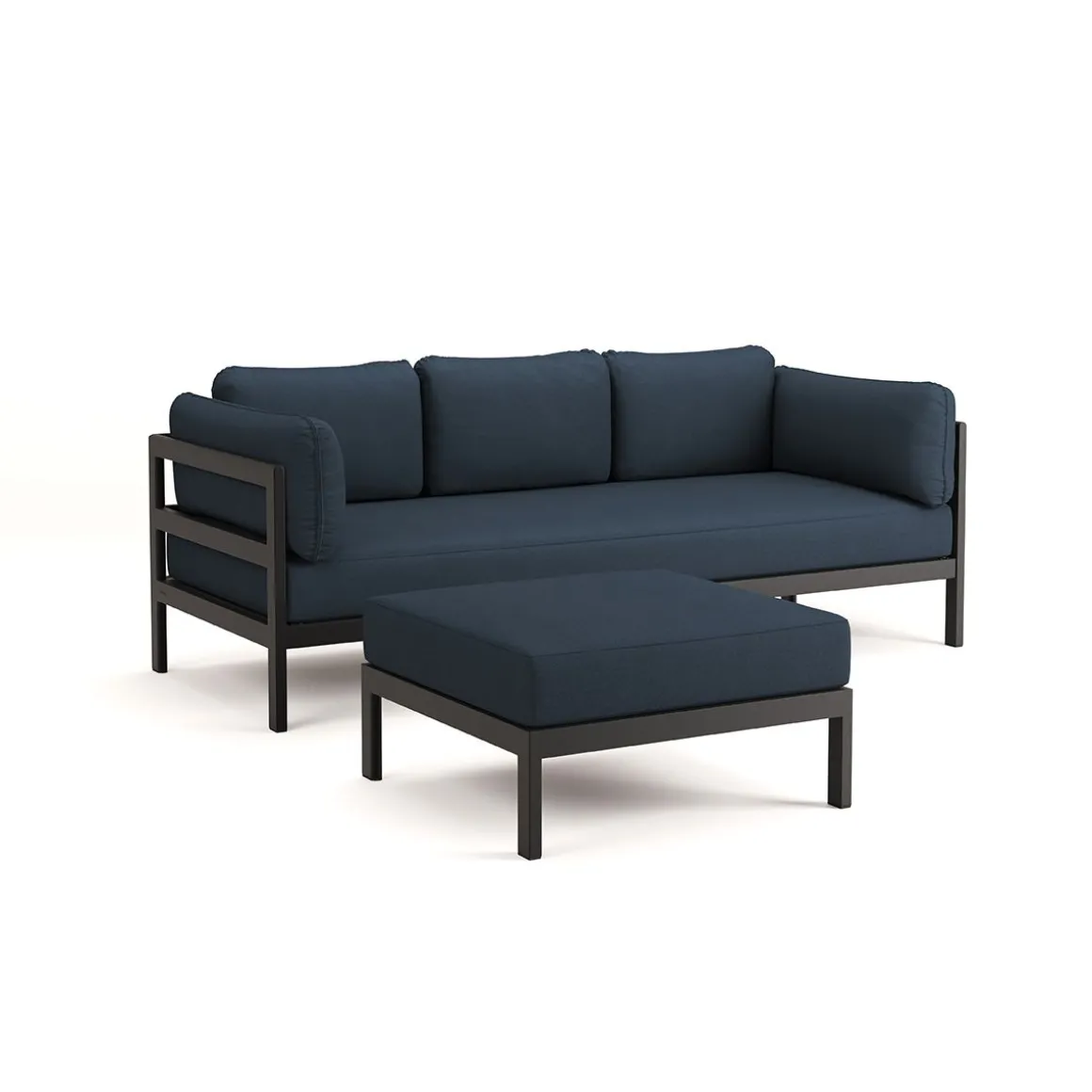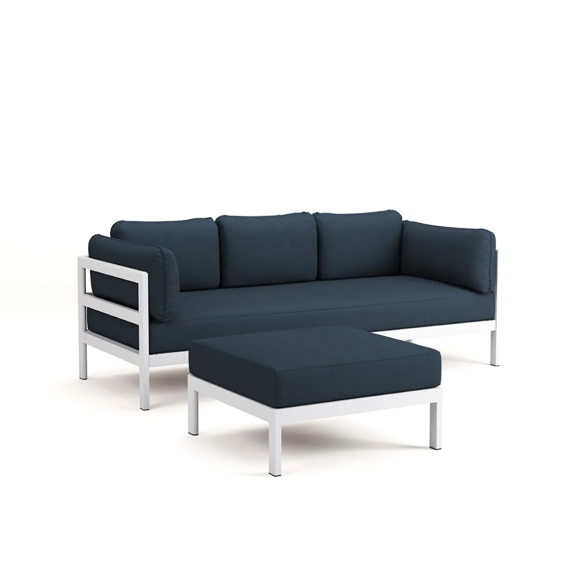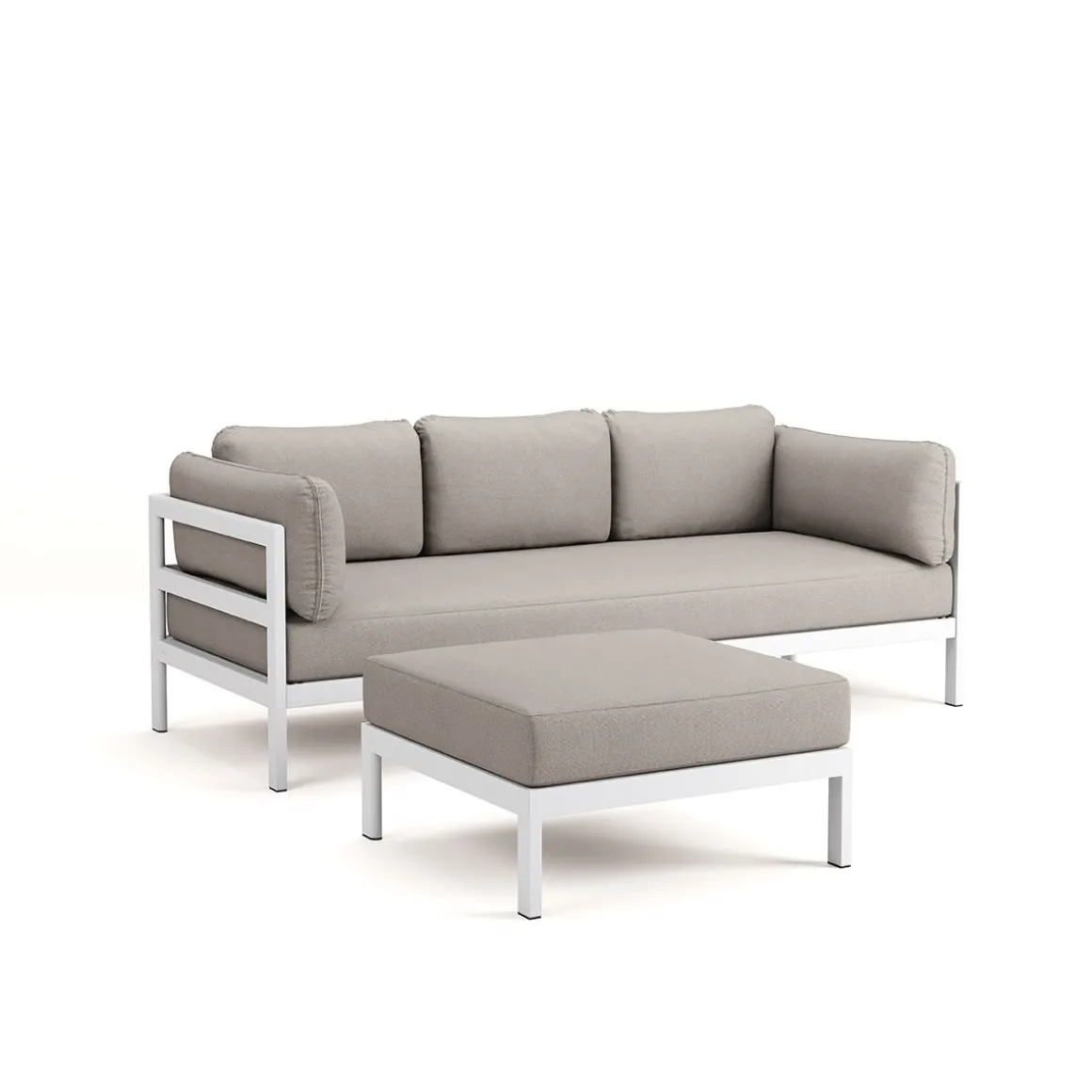 Matériaux : textile en polyester recyclé à partir de bouteilles en plastique, labellisé « OEKO-TEX 100 », coussins granit de flocons en mousse recyclé, structure en acier