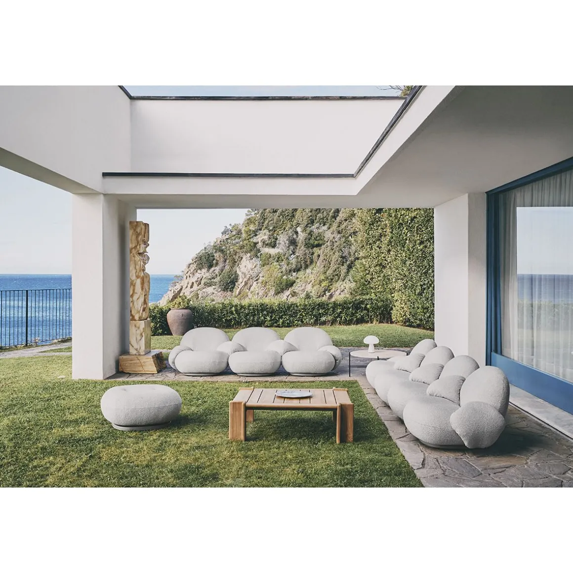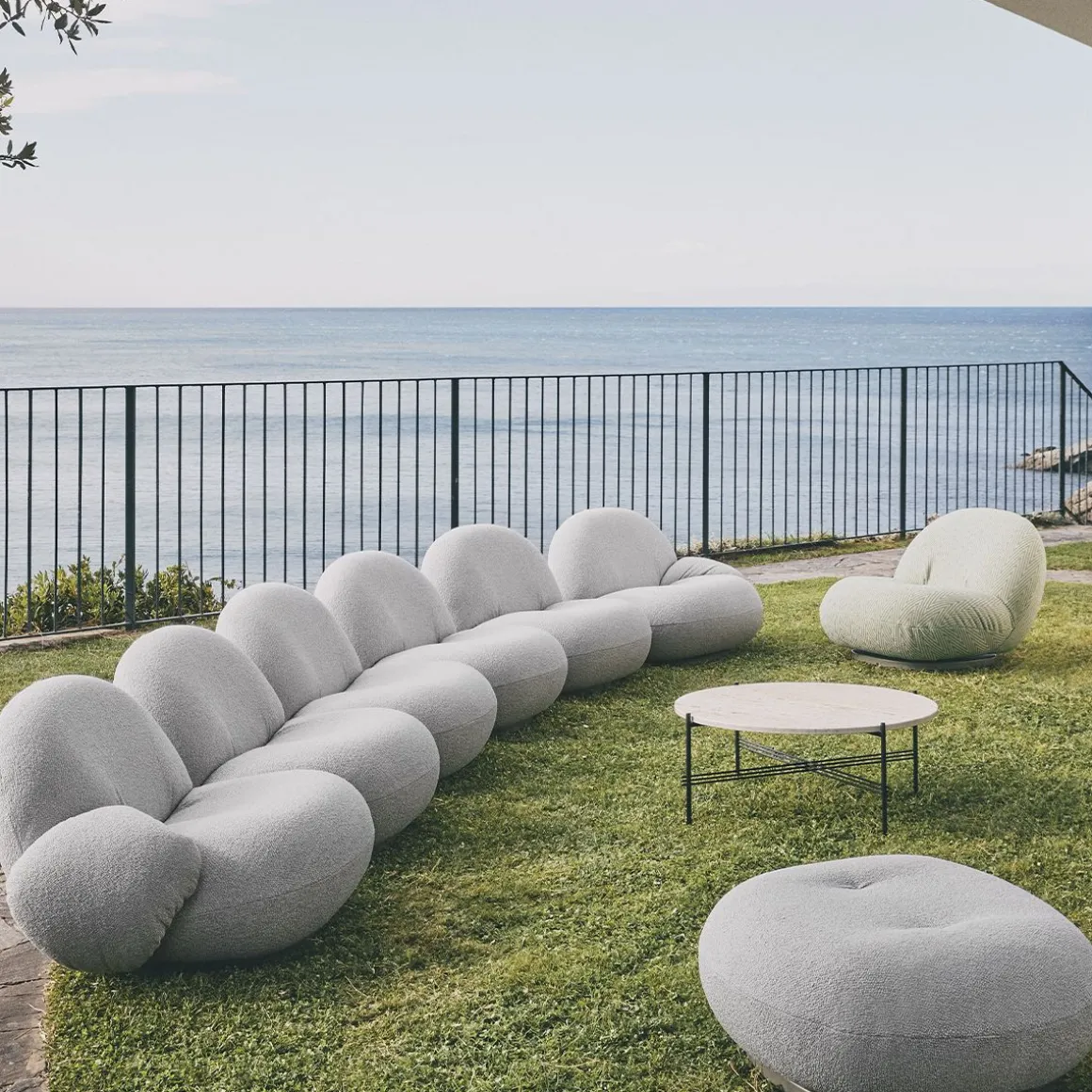Conçue pour la durabilité, la collection Pacha Outdoor comprend une couche intermédiaire de membrane spécialement développée qui est à la fois résistante à l’eau et respirante pour assurer un séchage rapide après une exposition à la pluie tout en conservant le confort indulgent de l’original emblématique. La base pivotante complète est fabriquée à partir d’un matériau résistant à l’humidité pour offrir une protection accrue dans des conditions humides. Une housse de pluie amovible offre une protection supplémentaire contre les éléments. Dès que la pluie se dissipe, vous pouvez à nouveau vous asseoir parmi les nuages.