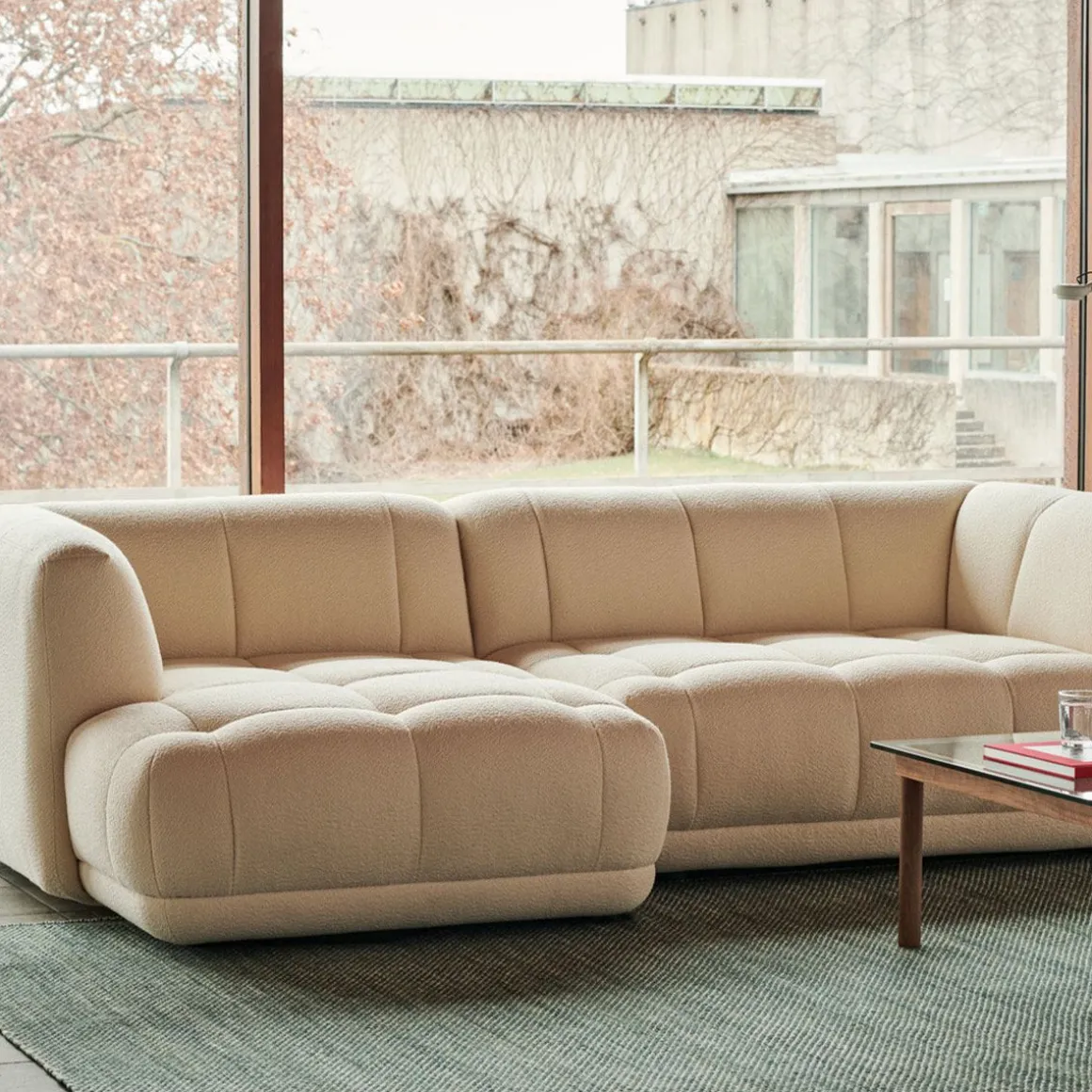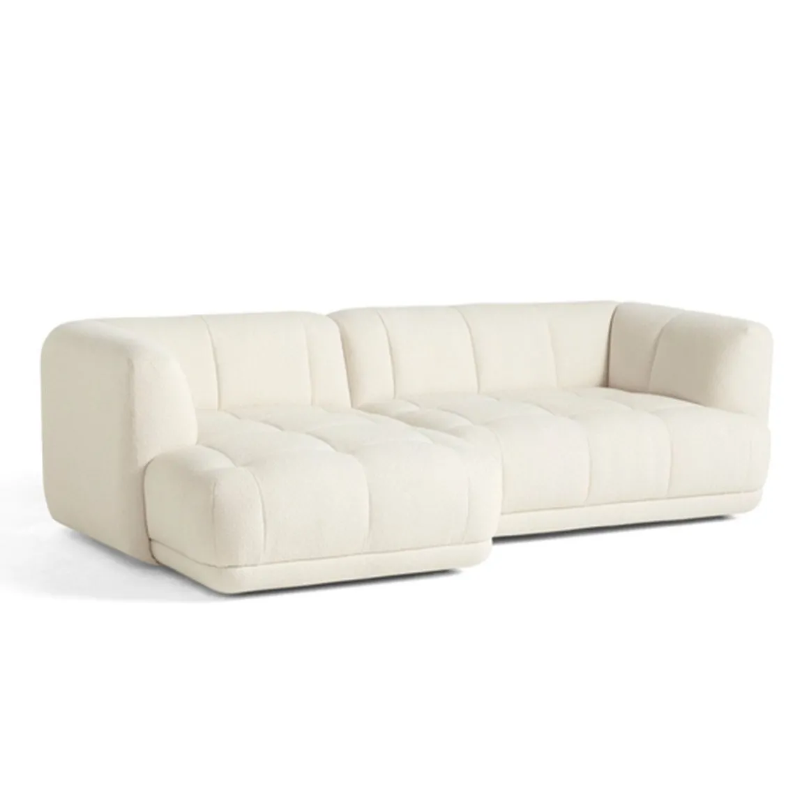 Canapé quilton 19 de Hay. Décrit par les concepteurs comme un « système de canapé paysager matelassé », Quilton sert de plate-forme centrale pour vivre, travailler, socialiser et se détendre.