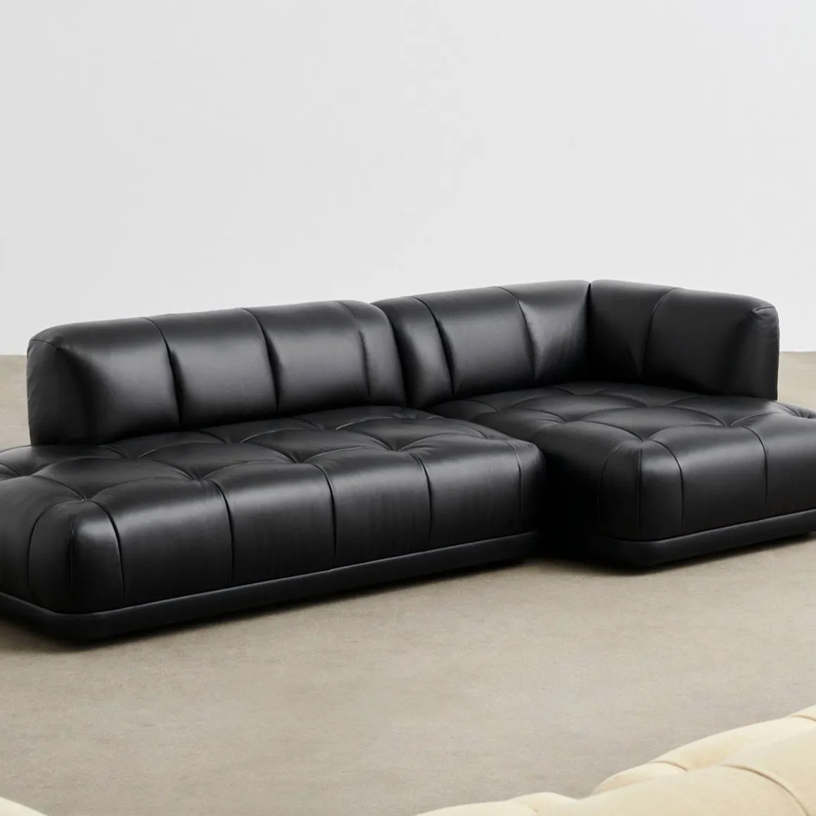 Canapé quilton 21 de Hay. Décrit par les concepteurs comme un « système de canapé paysager matelassé », Quilton sert de plate-forme centrale pour vivre, travailler, socialiser et se détendre.