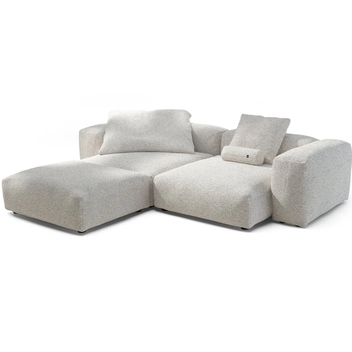 Canapé set 03 de Vetsak. Une forme pensée pour la sérénité. Notre modulaire sofa Vetsak set 03 accueille jusqu’à quatre personnes – et tous les moments de votre journée. Modulable en configuration ouverte ou en L, il invite au calme, à la connexion et au mouvement. Sa forme suit vos envies : rapprochez les modules pour partager un instant, écartez-les pour respirer. Quelle que soit l’organisation, le confort reste constant – apaisé, fluide, sans effort. Les housses interchangeables permettent à votre espace d’évoluer en douceur – une lumière, une nuance, une sensation nouvelle, à chaque envie de changement.