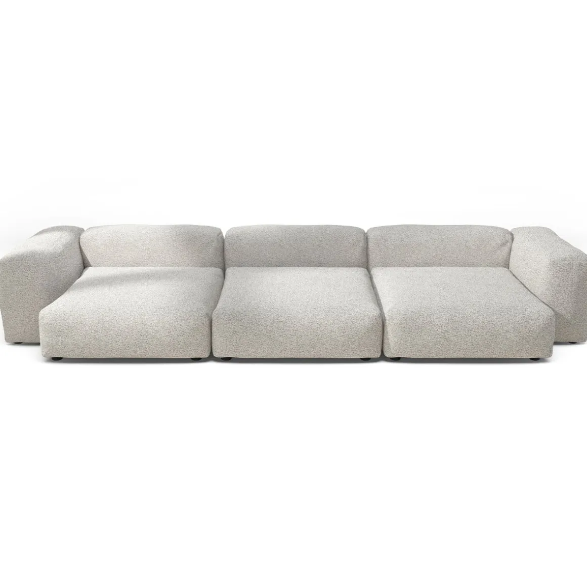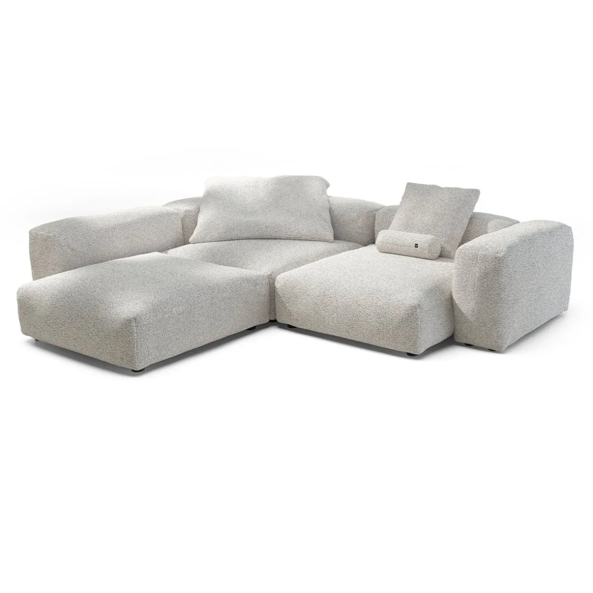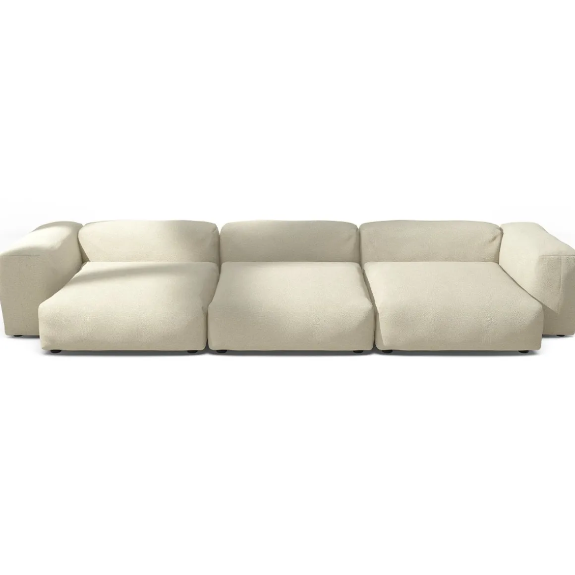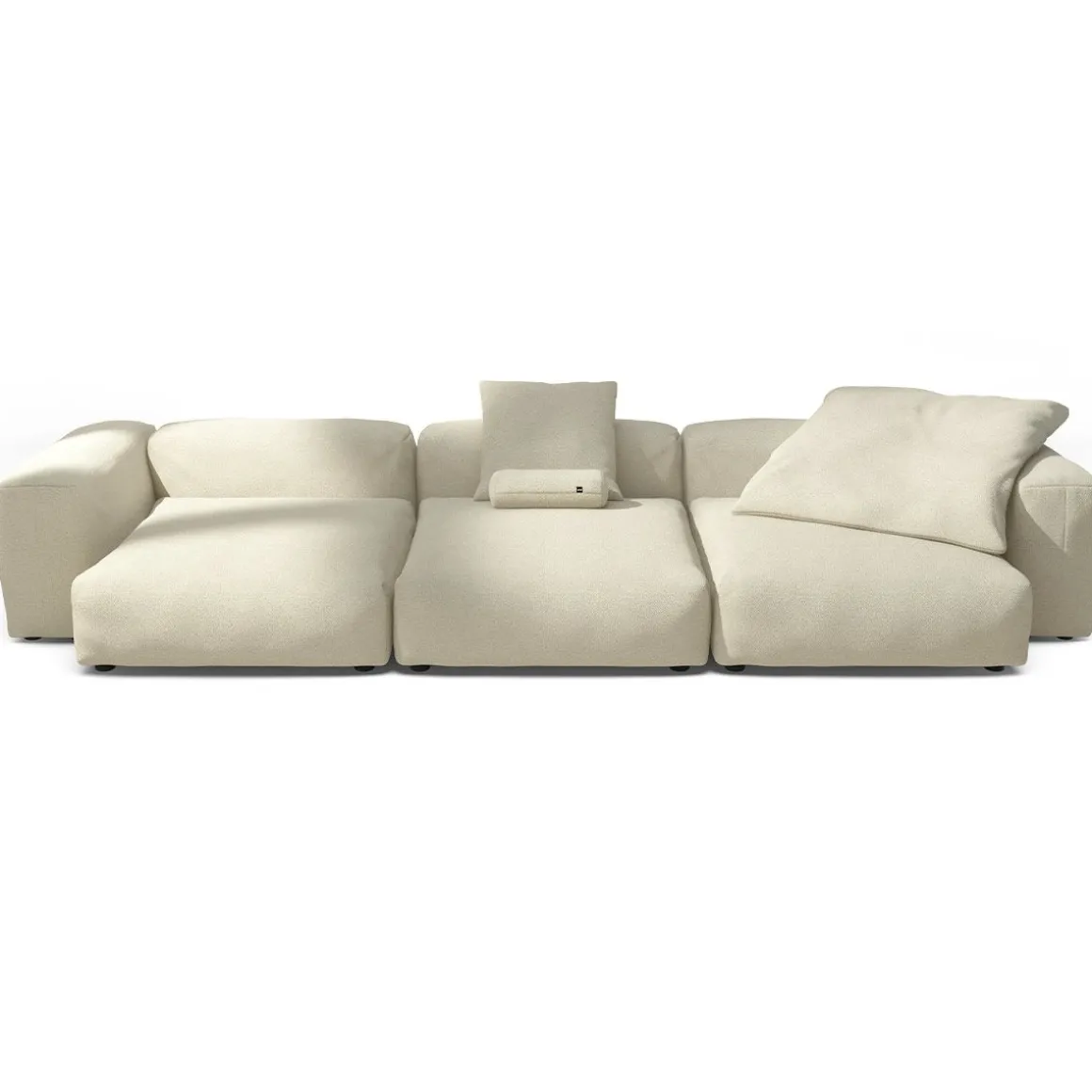 Canapé set 05 de Vetsak. Un espace pensé pour rassembler. Notre sofa modulaire Vetsak set 05 est une présence généreuse et ancrée – conçu pour cinq personnes, il allie confort et légèreté avec naturel. Allongez-le pour ouvrir l’espace, ou formez un angle pour créer un cocon intime – un coin pour se retrouver, se détendre ou simplement être ensemble. Quand l’envie change, les housses interchangeables permettent un nouveau souffle – une évolution douce, sans rien perdre du confort.