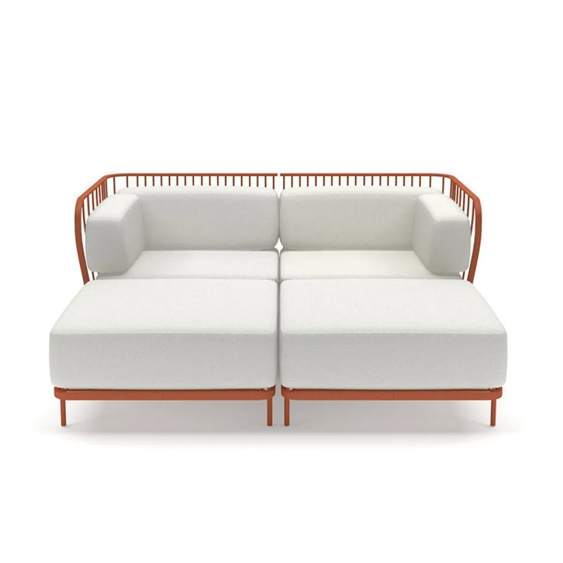 Le système d’assise Cannolè d’Anton Cristell et Emanuel Gargano a une structure entièrement soudée composée de tubes en acier galvanisés à l’intérieur et à l’extérieur. Siège composé d’une grille de tige galvanisée soudée sur un encadrement d’armature. Les pieds sont en acier tubulaire. Soudage MIG, pré-traitement de dégraissage et de cataphorèse et finition en poudre thermodurcissable polyester. La collection se compose de: canapé module d’angle, canapé module linéaire, pouf, fauteuil bas et table basse. Tous les coussins Cannolè sont faits de caoutchouc polyuréthane auquel est ajoutée une couche de résine de fibre de polyester, le tout emballé dans une taie d’oreiller interne en polyamide imperméable.