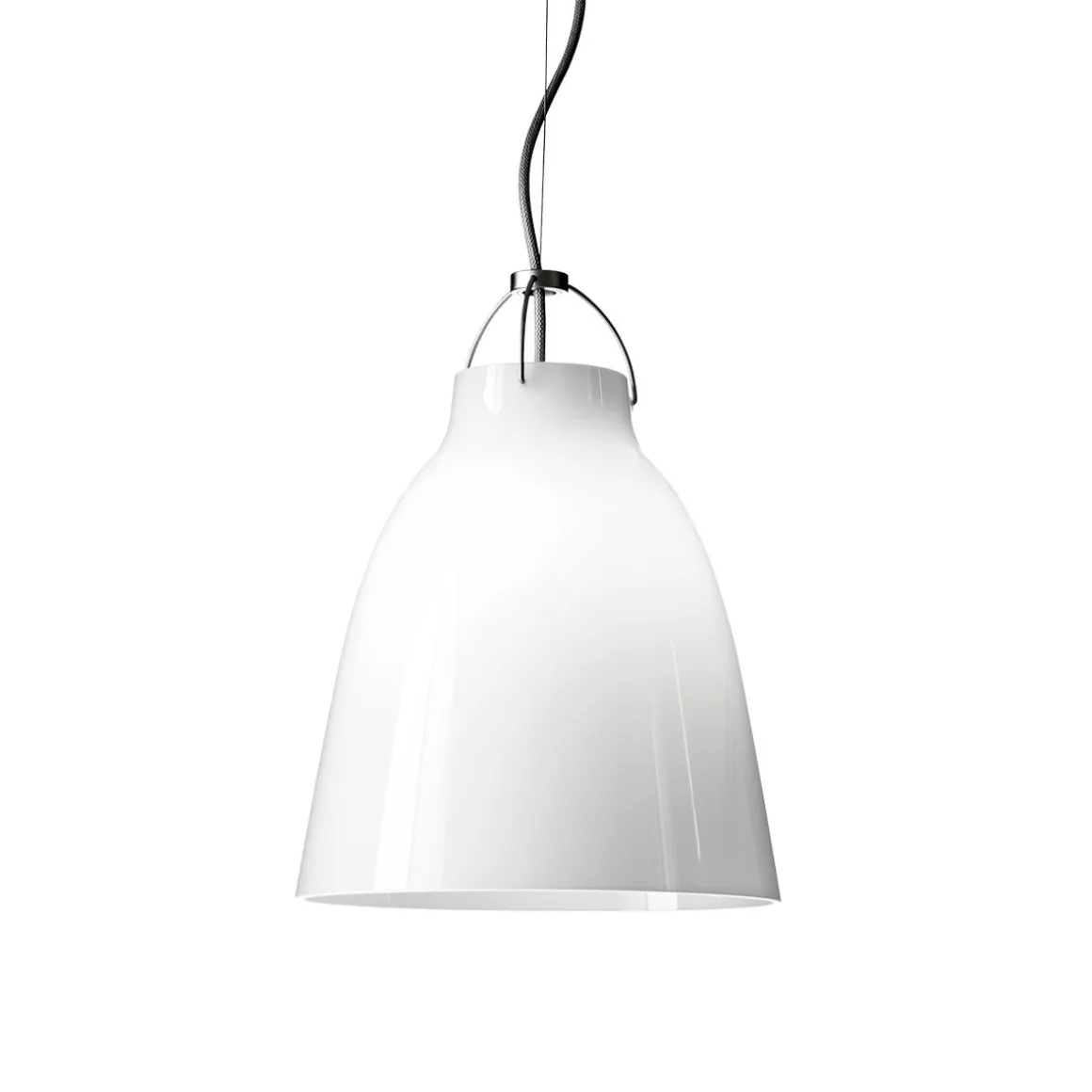 La suspension Caravaggio est désormais dans un nouveau matériau : le verre opalin. Caravaggio est connue dans sa version en métal laqué brillant avec une diffusion de la lumière concentré vers le bas. Désormais grâce à l’abat-jour en verre opale, la lumière rayonne dans toutes les directions. La profondeur du diffuseur empêche l’éblouissement, peu importe la hauteur à laquelle est fixée la suspension.