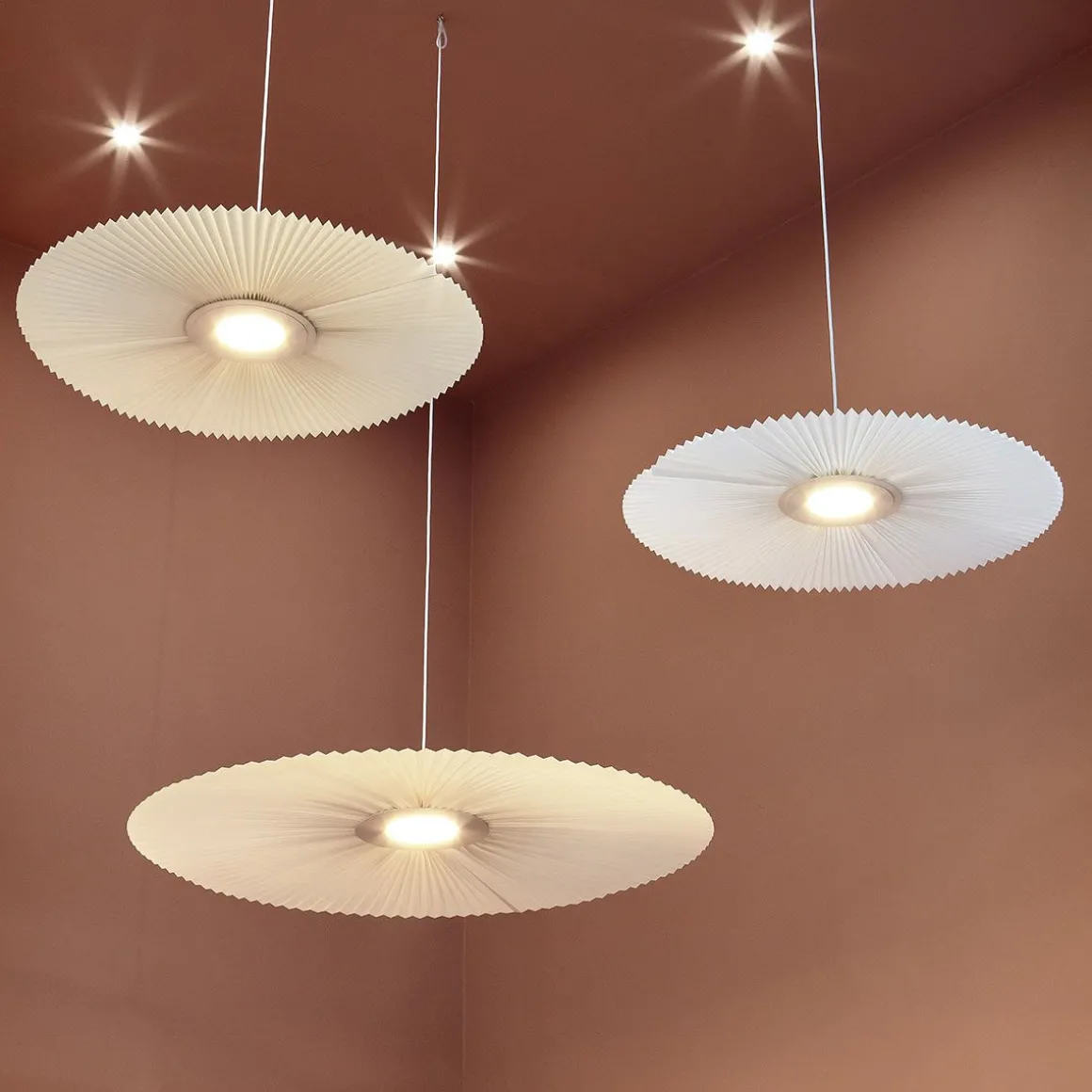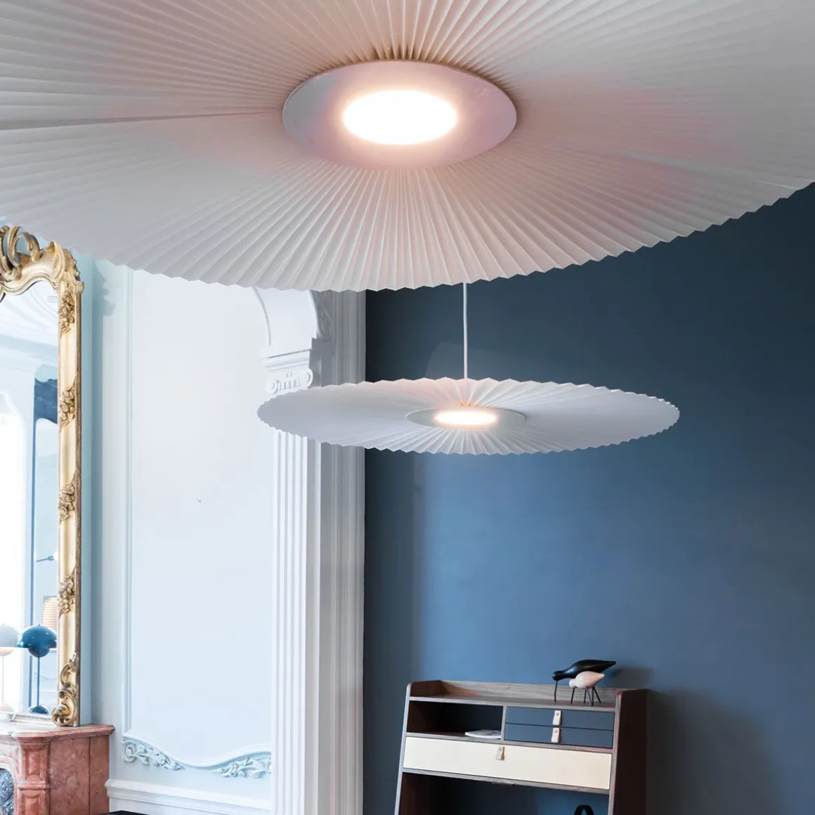 Matériaux : Métal laqué mat, tissu plissé en PES ou Trevira CS